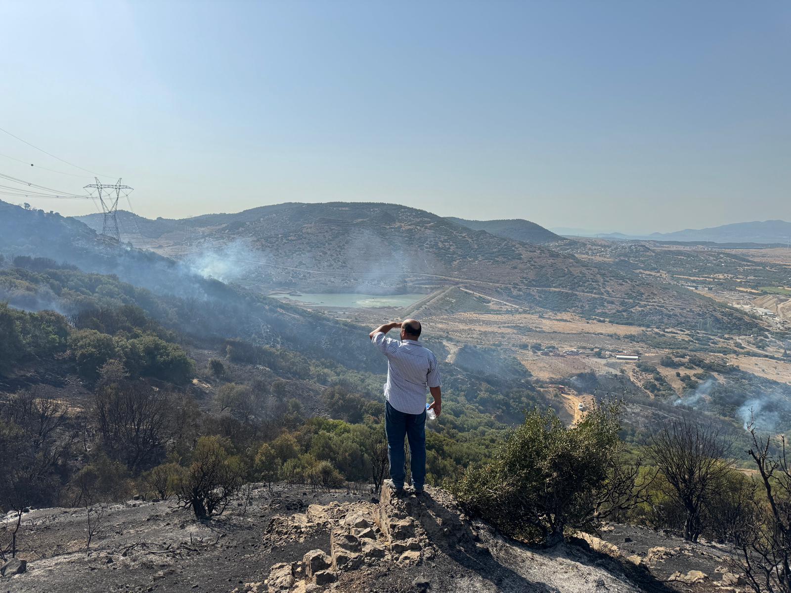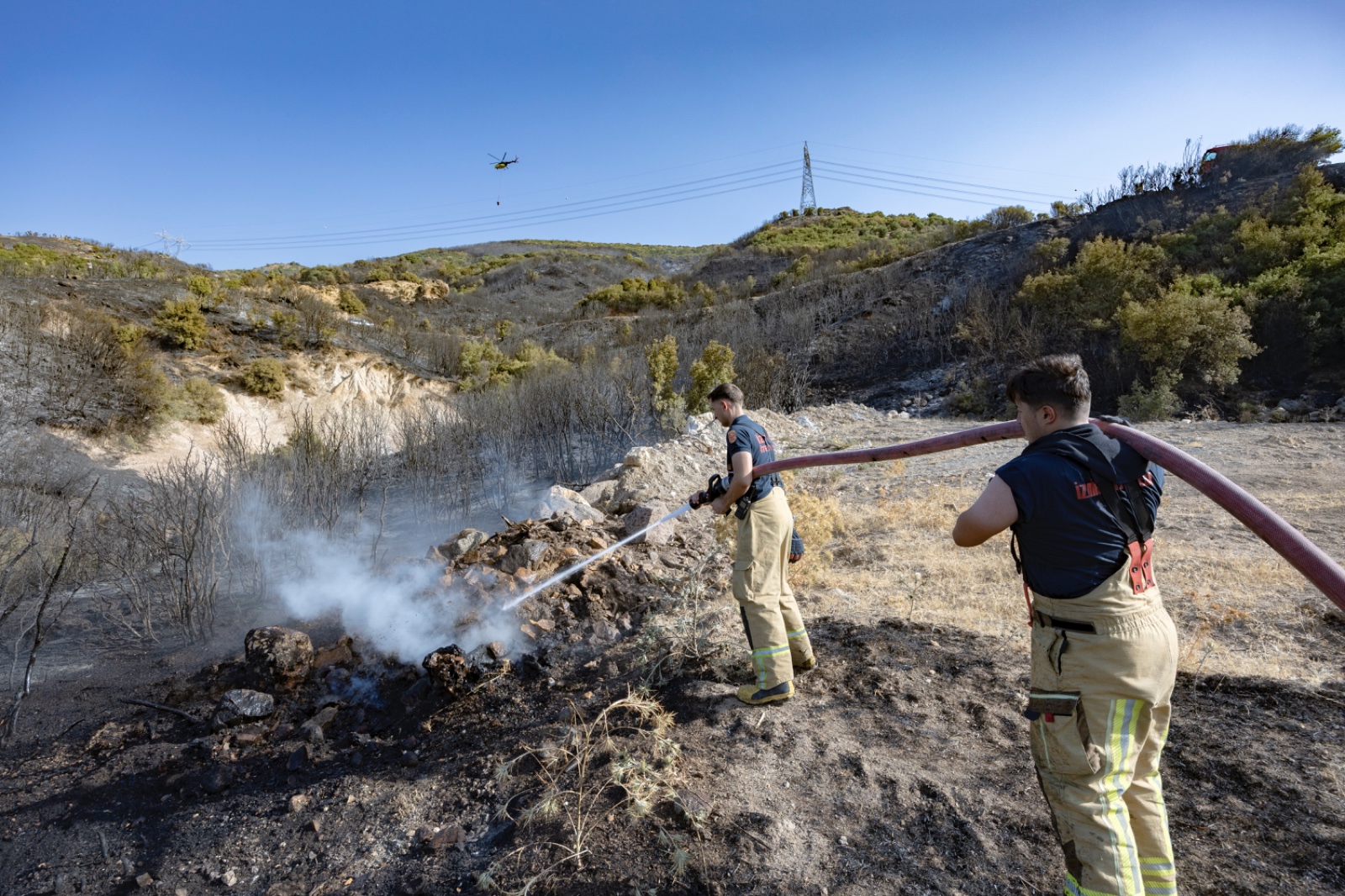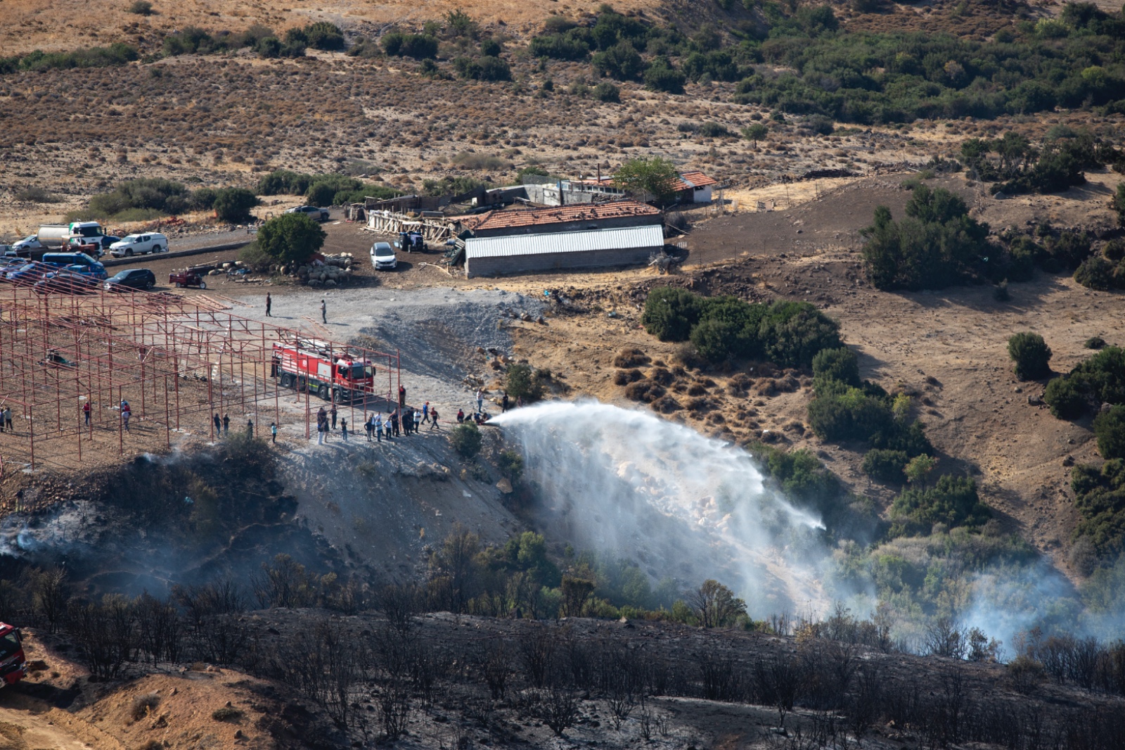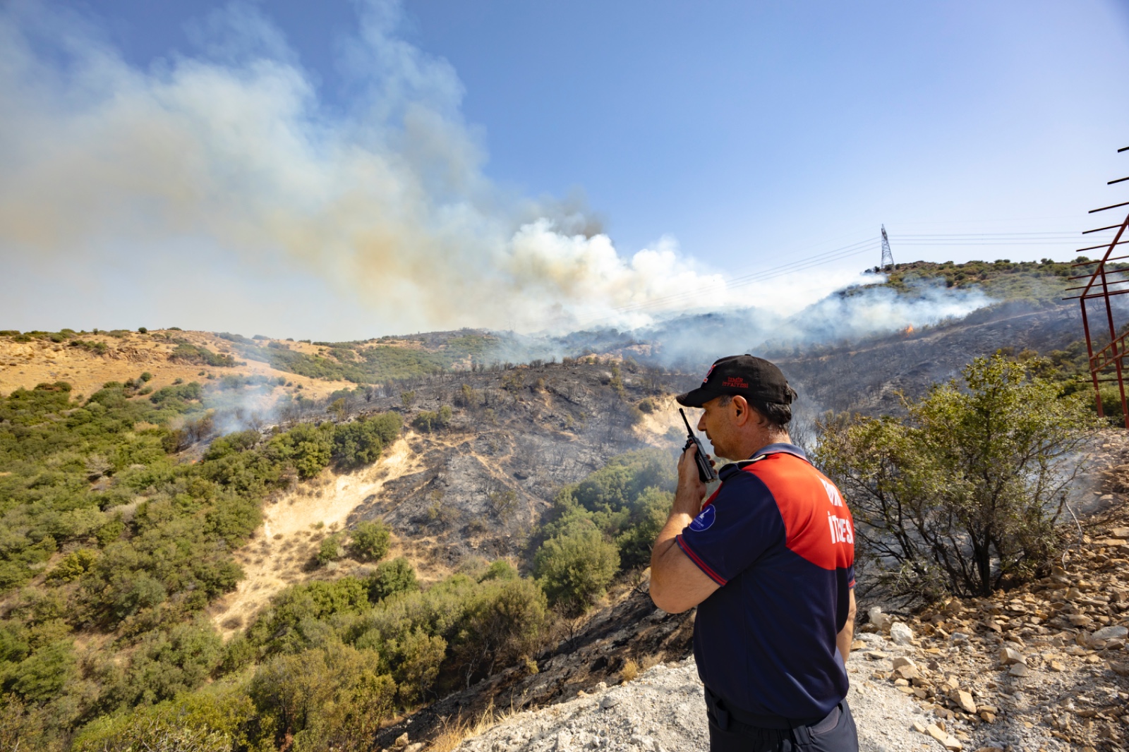 İzmir Aliağa’da çıkan orman yangını, İzmir Büyükşehir Belediyesi İtfaiye Dairesi Başkanlığı ve İzmir Orman Bölge Müdürlüğü ekiplerince havadan ve karadan yoğun müdahale ile kontrol altına alınmaya çalışılıyor. Ekipler, yangının yerleşim alanlarına sıçramaması için alevlerle mücadele ediyor.