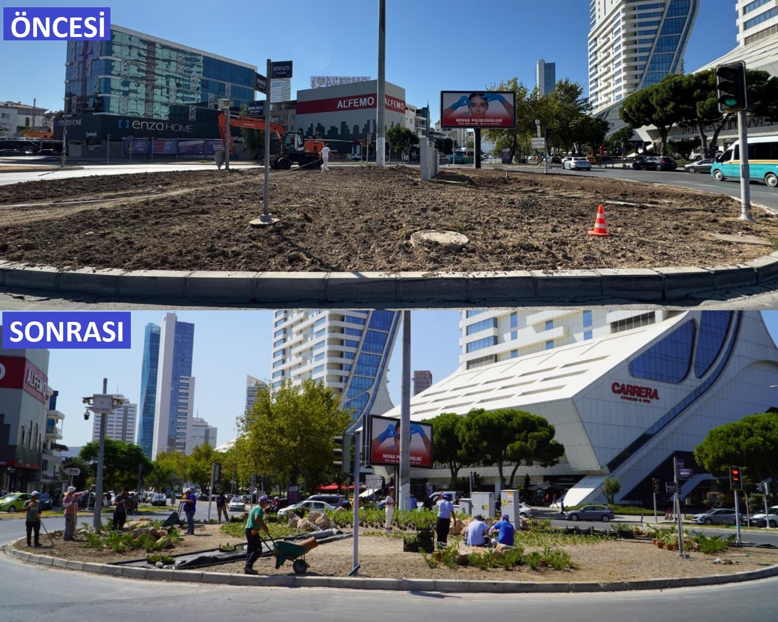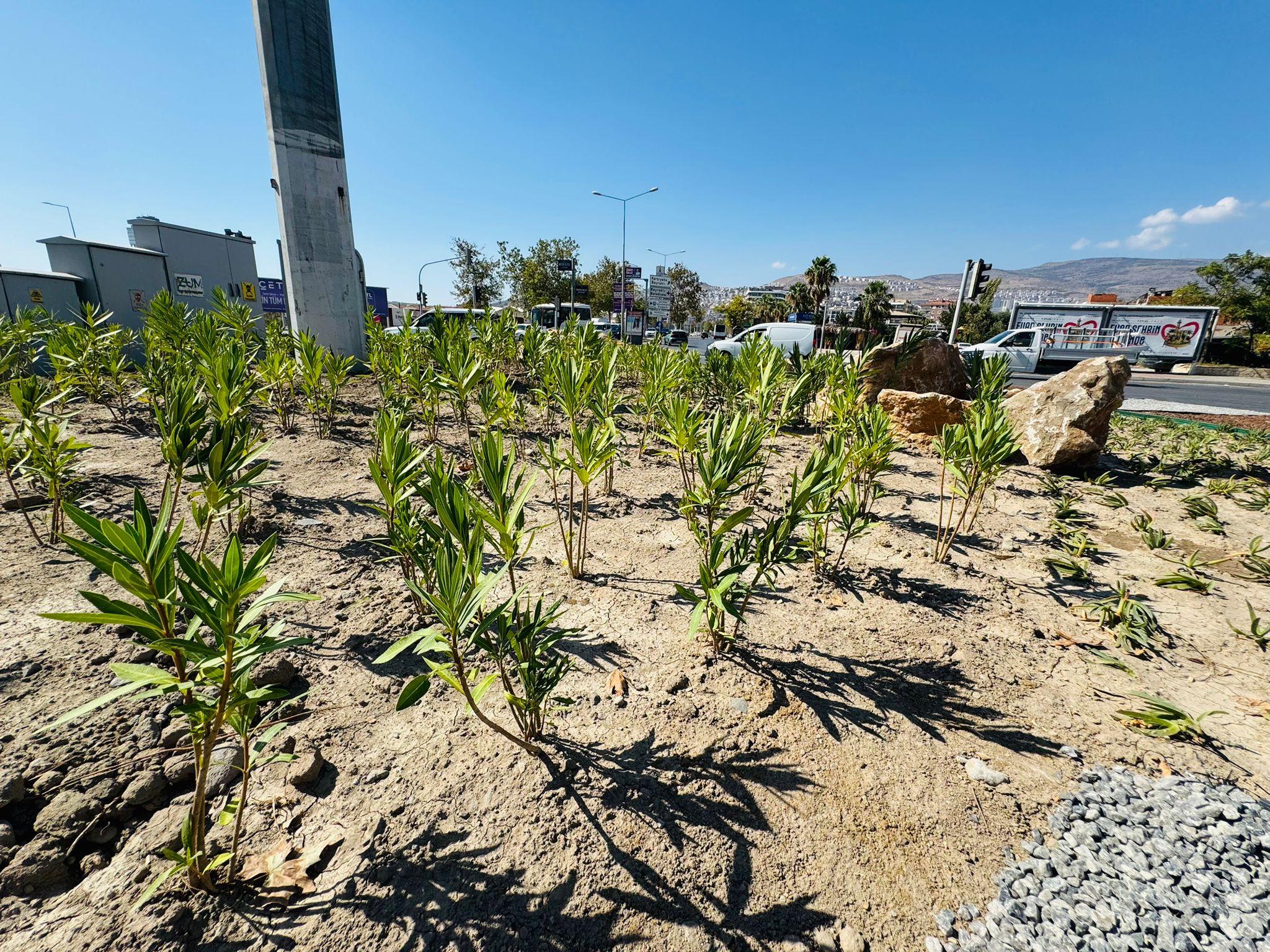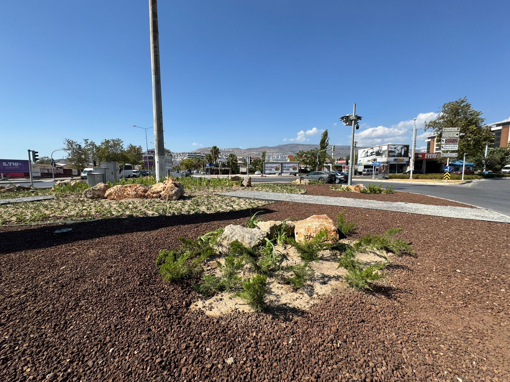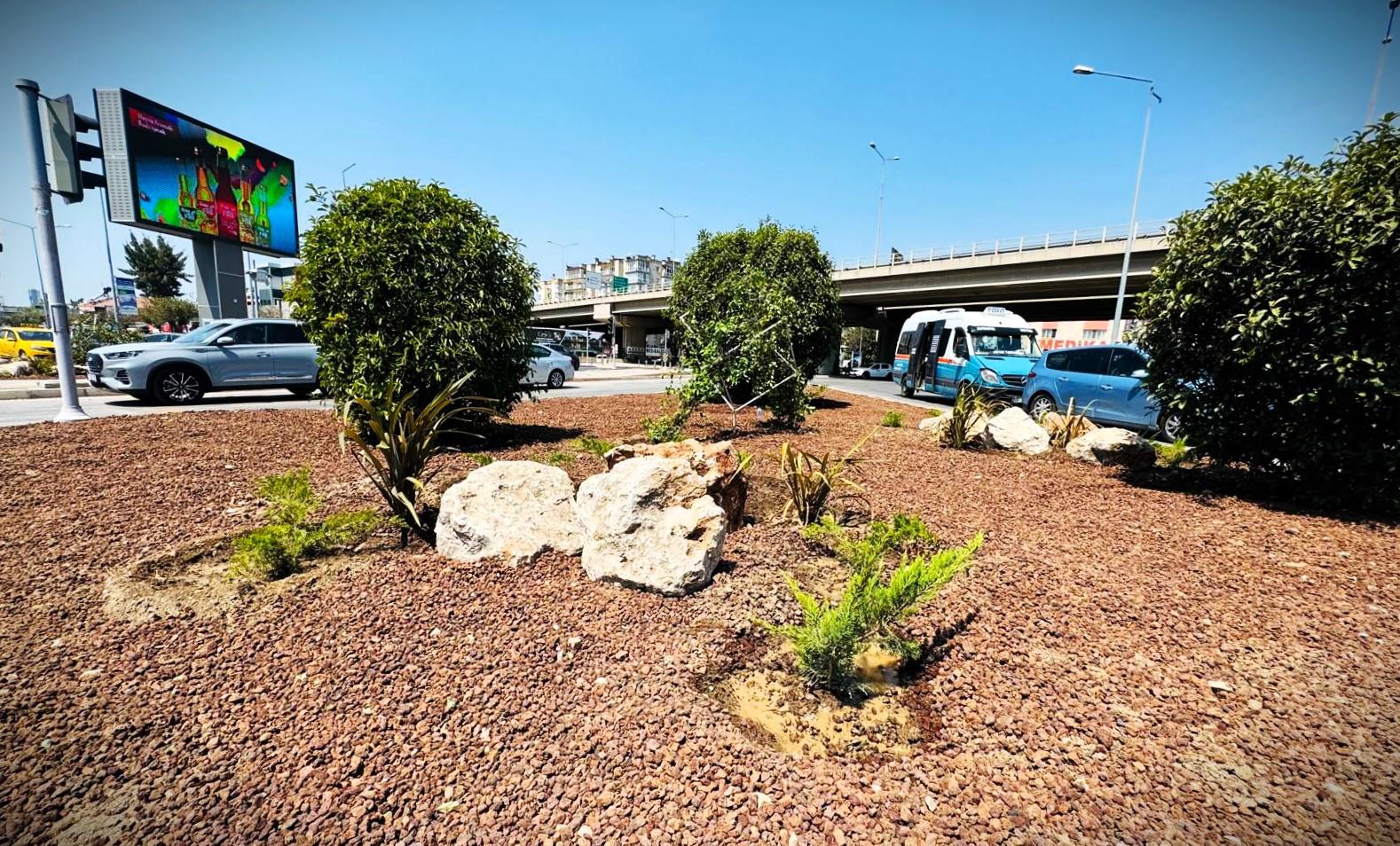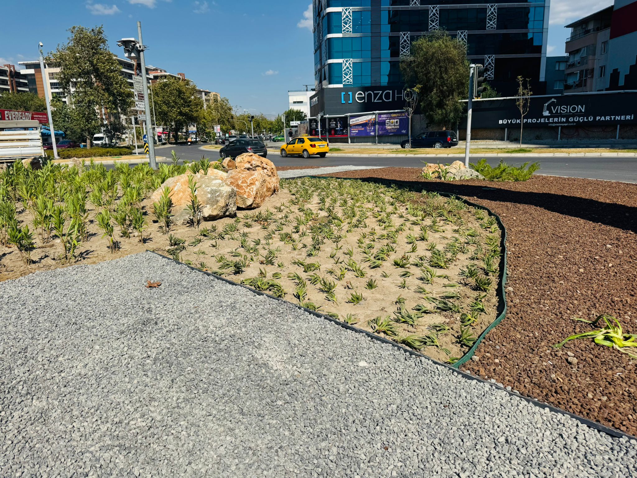 Peyzaj çalışmalarında sulama ihtiyacı yüksek türler yerine, doğal koşullara uyum sağlayabilen, su isteği düşük ve kuraklığa dayanıklı agapanthus, ılgın, zakkum, ateş dikeni, katırtırnağı, abelya, taflan gibi bitkiler tercih edildi. Aynı zamanda uygulama alanlarında cüruf ve bazalt kırma taş ve kaya parçaları ile şık bir görünüm elde edildi. Park ve Bahçeler Dairesi Başkanlığı ekipleri planlama doğrultusunda kamusal alanları yeşillendirmeye devam edecek.