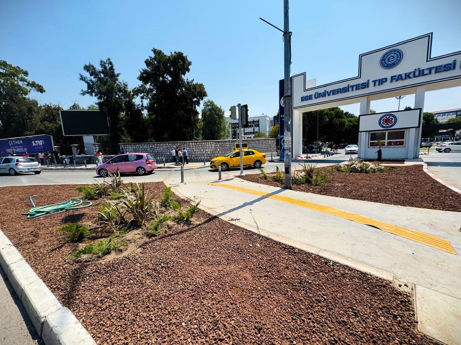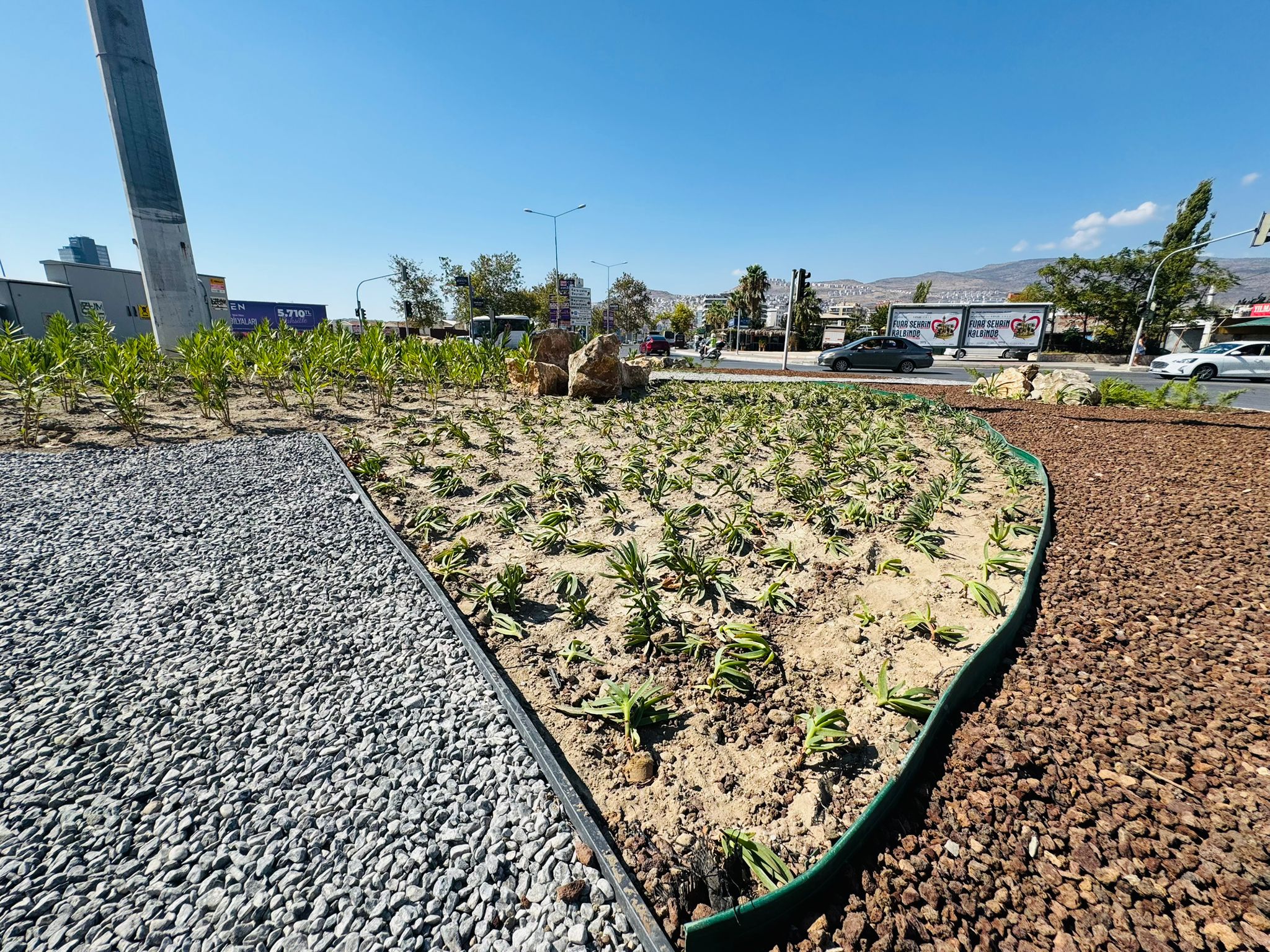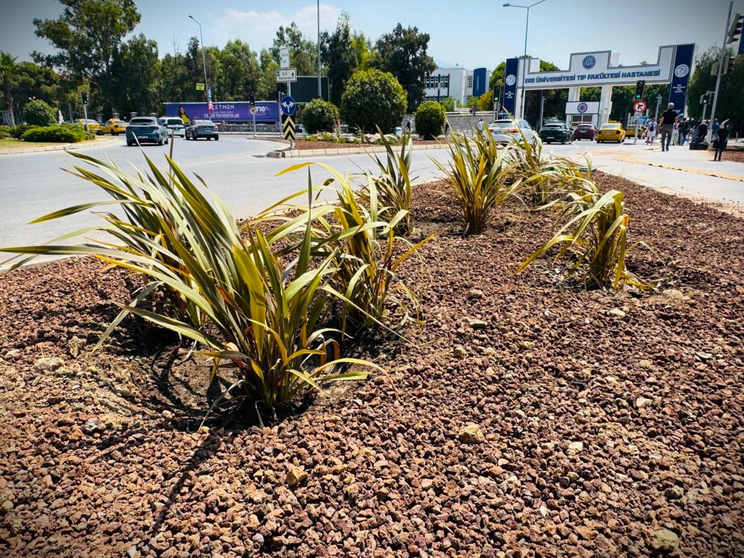 İzmir Büyükşehir Belediyesi kuraklıkla mücadele kapsamında peyzaj çalışmalarında susuzluğa dayanıklı bitkiler kullanıyor. Daha az suyla İzmir’in yeşil alanlarını artırmayı hedefleyen Büyükşehir, son olarak Ege Üniversitesi ve Haydar Aliyev Caddesi kavşaklarını düzenledi.