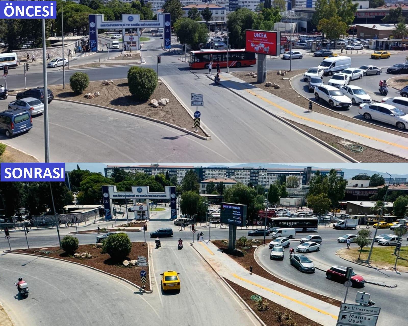 İzmir Büyükşehir Belediyesi, daha az suyla daha çok yeşil alan hedefiyle kente sürdürülebilir yeni yeşil alanlar kazandırmaya devam ediyor. İzmir Büyükşehir Belediye Başkanı Dr. Cemil Tugay’ın kuraklıkla mücadele eylem planı kapsamında yeşil alanlarda kullanılan su miktarını minimum seviyeye çeken Park ve Bahçeler Dairesi Başkanlığı, kurakçıl peyzaj çalışmalarıyla kamusal alanların dönüşümüne hız kattı. İzmir’in sembol kavşaklarını estetik bir görünüme kavuşturan ekipler, son olarak Bornova Ege Üniversitesi Kavşağı ile Bayraklı Haydar Aliyev Caddesi ile Manas Bulvarı kesişiminde yer alan kavşakta peyzaj çalışması yaptı.