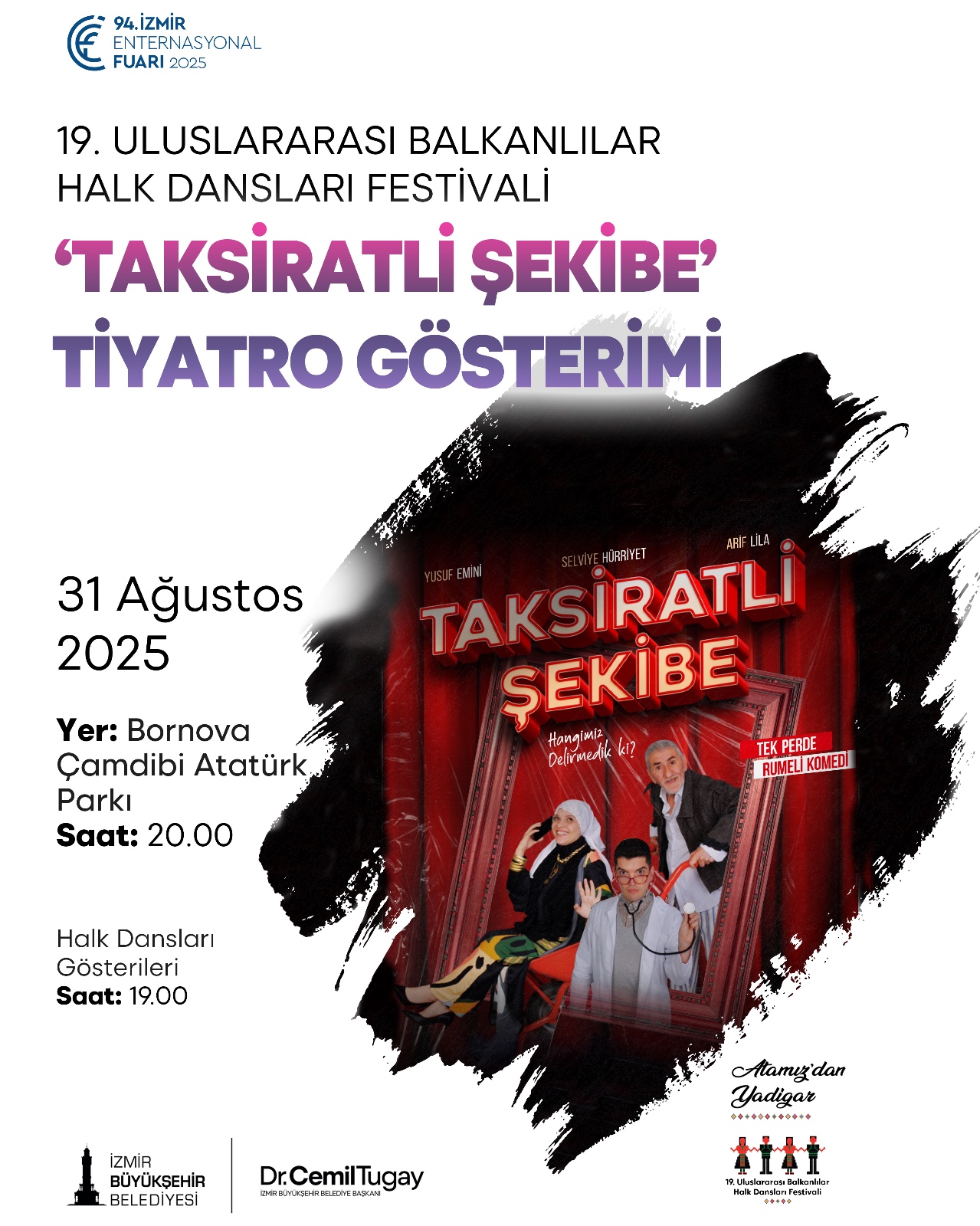 İzmir Büyükşehir Belediyesi ev sahipliğinde 94’üncü kez kapılarını açacak İzmir Enternasyonal Fuarı (İEF) ile eş zamanlı olarak başlayacak Uluslararası Balkanlılar Halk Dansları Festivali, Balkan coşkusunu İzmir’in dört bir yanına taşıyacak. 29-31 Ağustos tarihleri arasında düzenlenen festival kapsamında, İzmir’in farklı ilçelerinde konserler, halk dansları gösterileri ve kültürel etkinlikler gerçekleştirilecek.