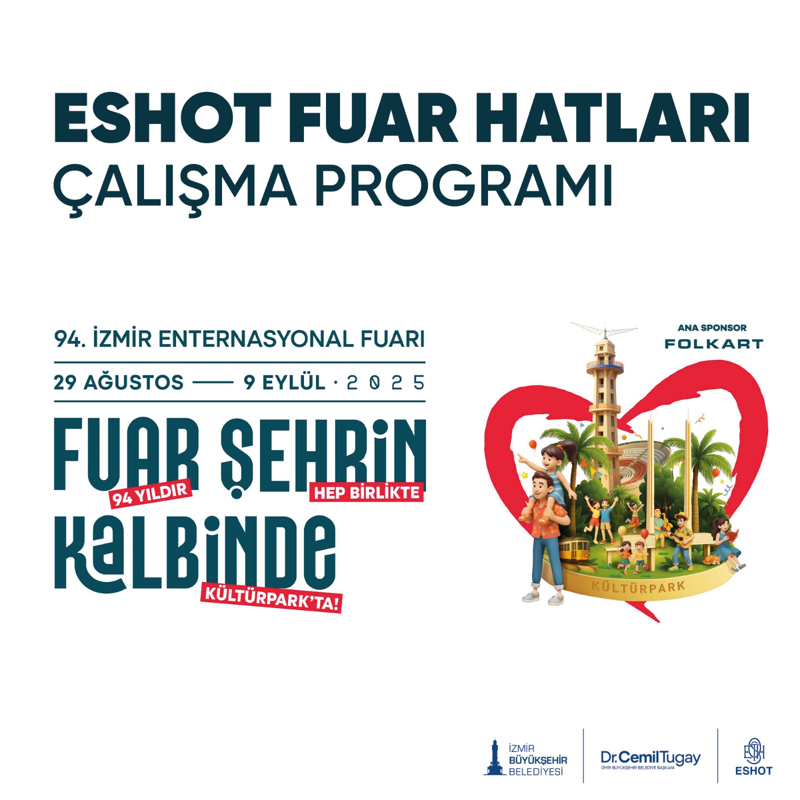 İzmir Büyükşehir Belediyesi, Kültürpark’ta 29 Ağustos-9 Eylül tarihleri arasında düzenlenecek 94’üncü İzmir Enternasyonal Fuarı için toplu ulaşımda sefer sıklığını artıracak. Tüm ulaşım modlarında son sefer saatleri uzatılırken, ESHOT fuar için yeni hatlar oluşturdu. 30 Ağustos Zafer Bayramı’nda ise toplu ulaşım yüzde 50 indirimli olacak.