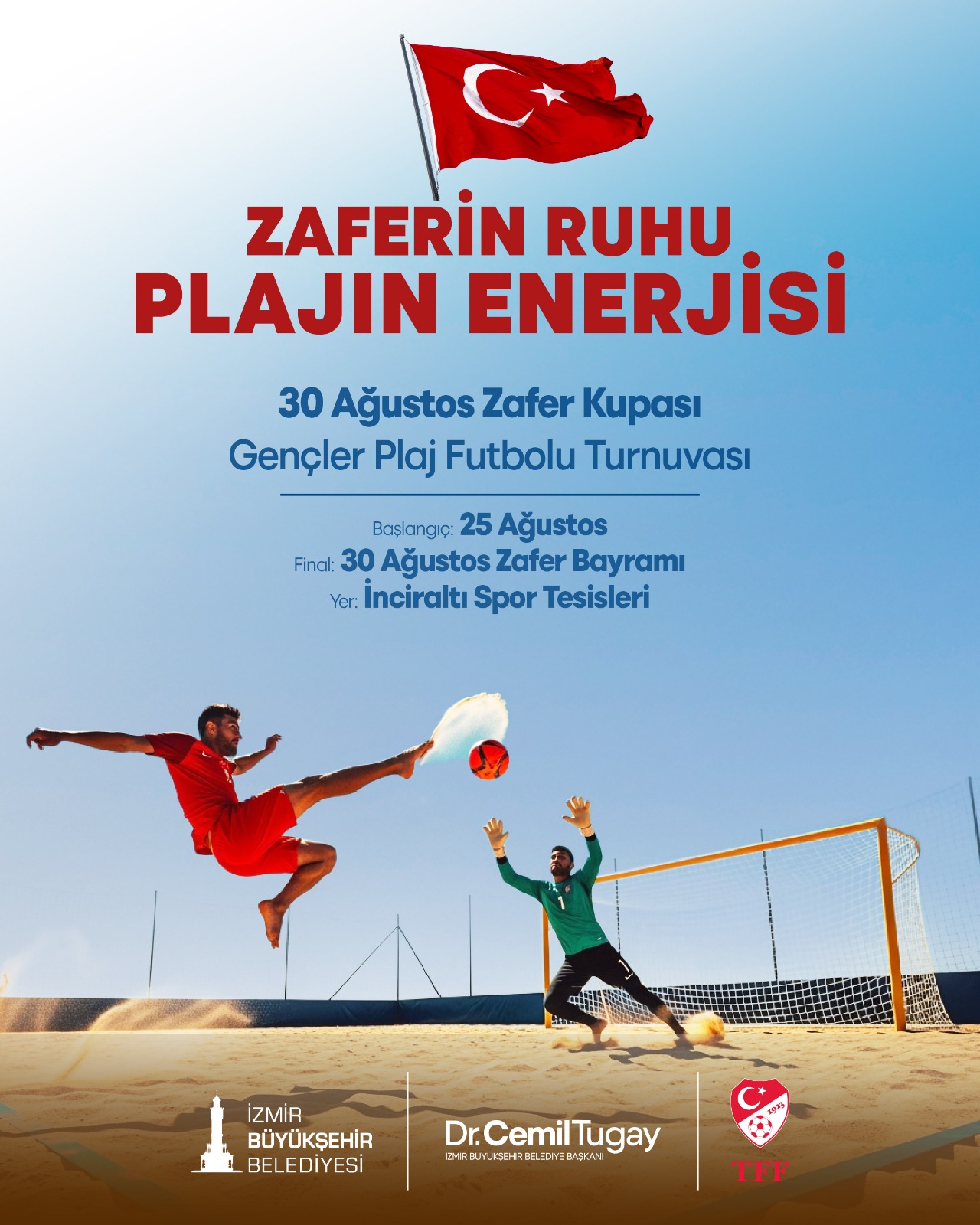 Zafer Bayramı için İnciraltı Spor Tesisleri'nde ''30 Ağustos Zafer Kupası Gençler Plaj Futbolu Turnuvası'' yapılacak. 28 Ağustos’ta başlayan toplam dokuz takımın katıldığı turnuva, 30 Ağustos’ta final müsabakalarıyla sona erecek.