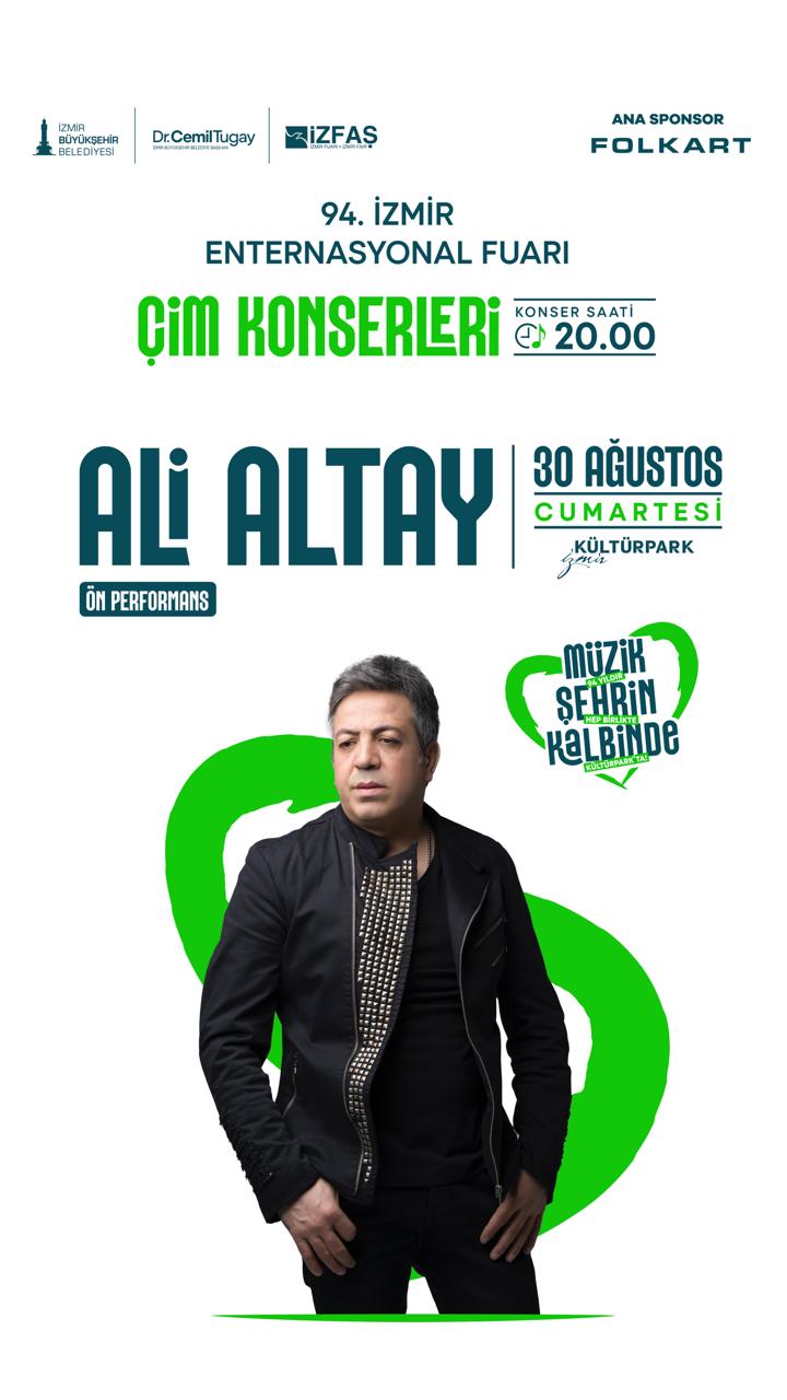 94. İzmir Enternasyonal Fuarı kapsamında yapılan Çim Konserleri de 30 Ağustos Zafer Bayramı’nda ünlü sanatçılara yer verecek. Ön performans olarak saat 20.00’de konser verecek Ali Altay, saat 21.15’te yerini Edis’e bırakacak. Ali Altay ve Edis, birbirinden güzel şarkılarını İzmirliler için seslendirerek 30 Ağustos coşkusunu doruğa çıkaracak.