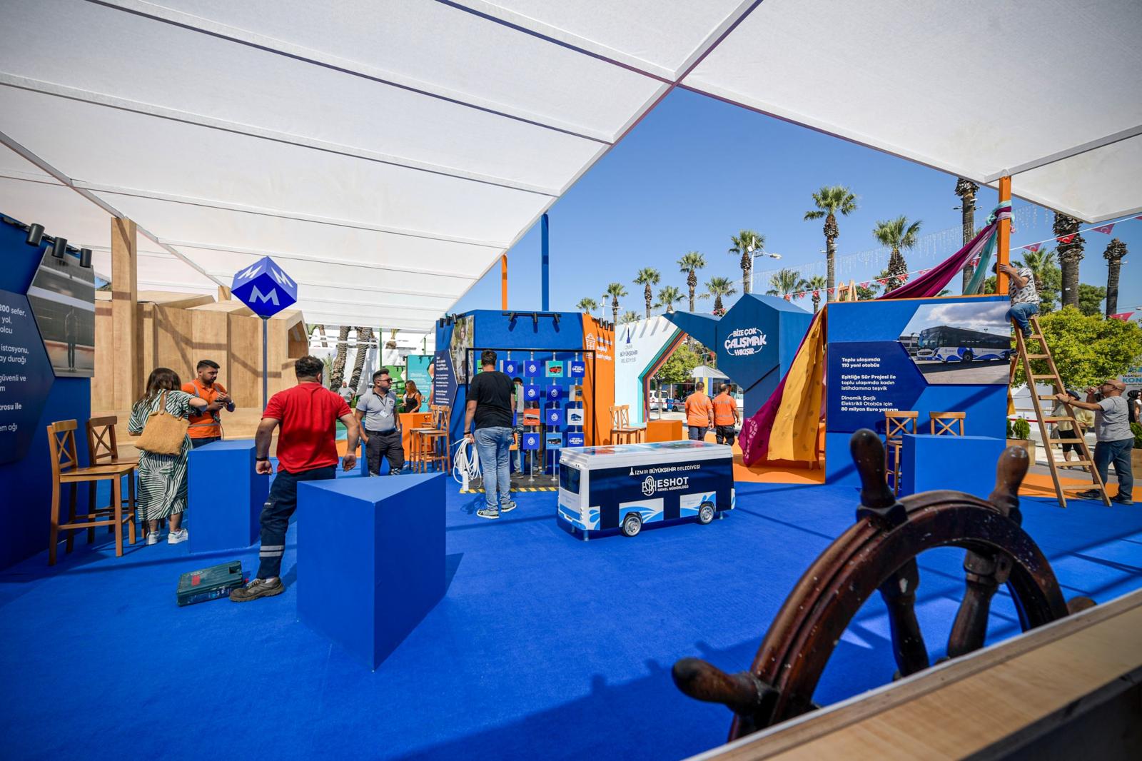 94. İzmir Enternasyonal Fuarı (İEF) kapsamında hazırlanan İzmir Büyükşehir Belediyesi Sokağı, dikkat çeken renkli tasarımı ve işlevsel tematik alanlarıyla ziyaretçilerini bekliyor. İzmir Büyükşehir Belediyesi’nin altı temel hizmet başlığı altında yürüttüğü çalışmaların aktarılacağı alanda, keyifli etkinlikler de yapılacak. Belediye Sokağı, fuarın en çok ilgi çeken duraklarından biri olacak.