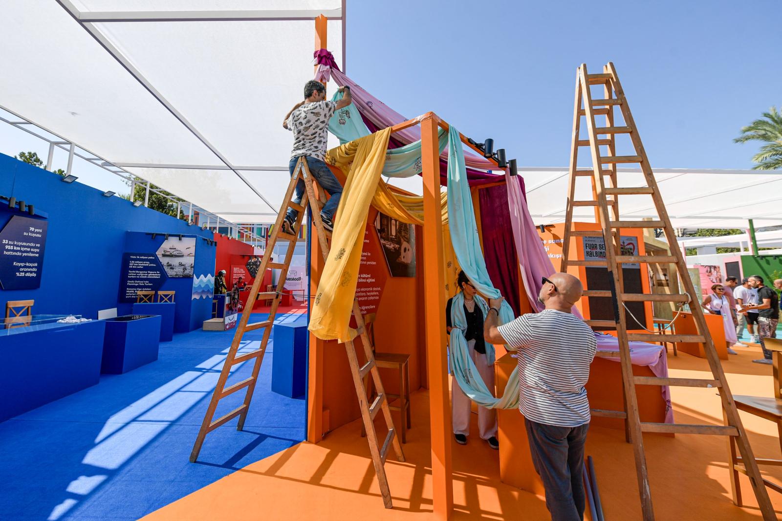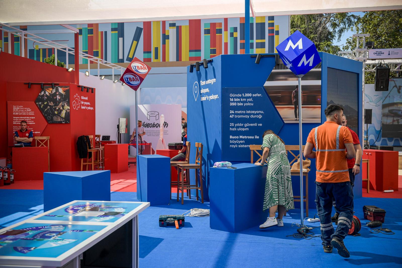 İzmir Büyükşehir Belediyesi Basın, Yayın ve Halkla İlişkiler Dairesi Başkanı Eylem Başar Yıldırım ve Basın, Yayın ve Tanıtım Şube Müdürü Cem Kaya da Belediye Sokağı’ndaki son hazırlıklara eşlik etti. Alanda sunulacak hizmetlere değinen Cem Kaya, “Her yıl olduğu gibi bu yıl da İzmir Büyükşehir Belediyesi Sokağı’nda hem belediye birimlerimizin faaliyetlerini tanıtacağız hem de misafirlerimize konser, tiyatro, bilgi yarışması gibi etkinlikler düzenleyeceğiz. Alanda çocuklarımız için eğitici ve öğretici etkinlikler de gerçekleştireceğiz. Bu yıl ilk kez ‘Ne kadar İzmirlisin’ başlıklı bilgi yarışması düzenliyoruz. Kazanan vatandaşlarımıza sürpriz hediyelerimiz olacak. Bütün vatandaşlarımızı hem belediye olarak faaliyetlerimizi tanımak hem de güzel vakit geçirmek için İzmir Büyükşehir Belediyesi Sokağı’na bekliyoruz” dedi.