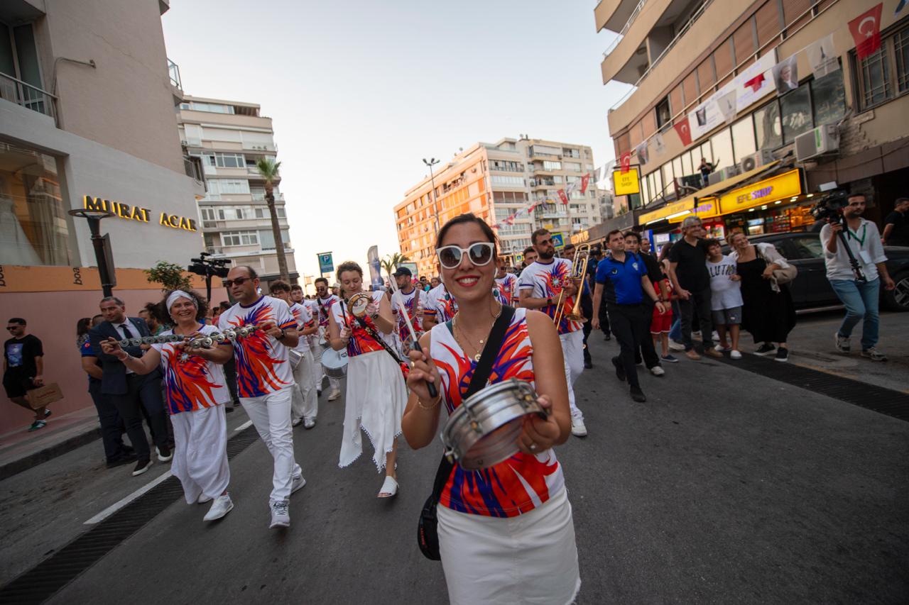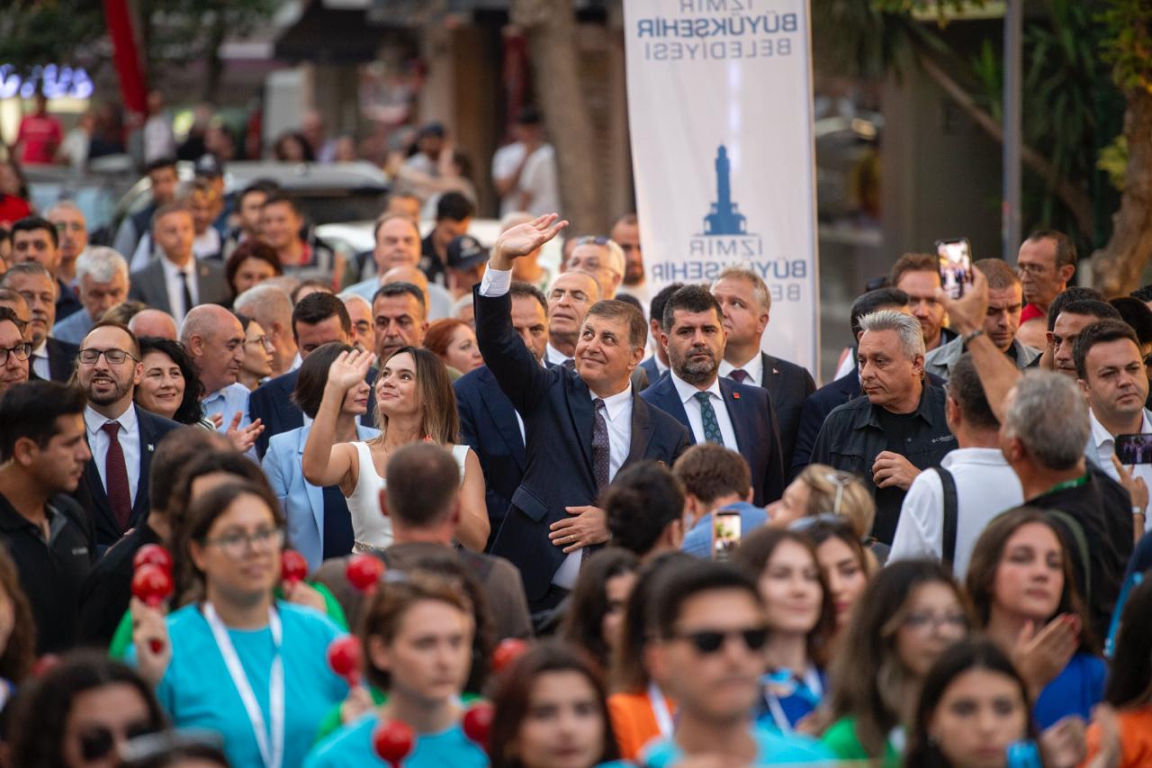 Kortej İzmir Büyükşehir Belediyesi Bandosu ve dans ekiplerinin gösterileri eşliğinde Gündoğdu Meydanı’ndan başladı. Marşlar ve şarkılar eşliğinde ilerleyen kortej, Plevne Bulvarı üzerinde coşkuyla devam etti. Korteje katılamayan İzmirliler, evlerinin camlarından ve balkonlarından alkışlarla, marşlarla coşkuya ortak oldu. Başkan Dr. Cemil Tugay, kortej boyunca İzmirlileri selamladı. Plevne Bulvarı’nın ardından Lozan Meydanı’ndan Kültürpark’a girildi. Kortej, Lozan Meydanı’nda konfeti şovlarıyla karşılandı. 94. İEF şerefine balonlar gökyüzüne yükseldi.