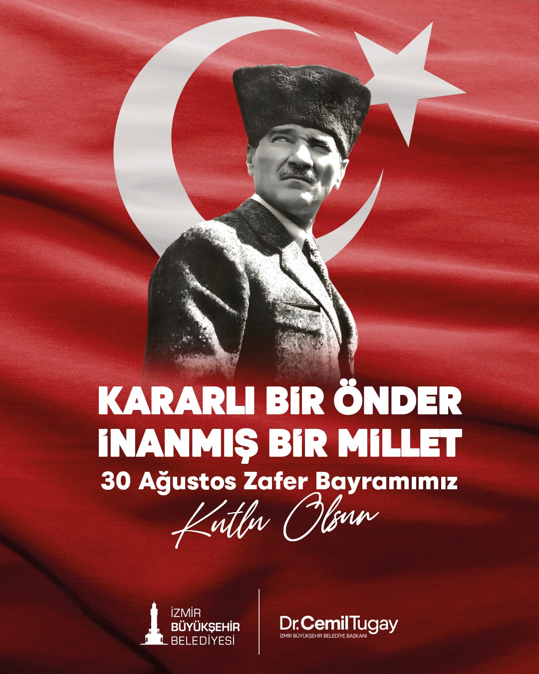 İzmir Büyükşehir Belediye Başkanı Dr. Cemil Tugay, 30 Ağustos Zafer Bayramı nedeniyle mesaj yayımladı. Tugay, “103 yıl önceki inançla, gururla ve kararlılıkla söylemek isterim ki; özgürlük ve bağımsızlık, bu milletin karakteridir. Tüm yurttaşlarımızın 30 Ağustos Zafer Bayramı’nı en içten dileklerimle kutluyor, başta Başkomutan Gazi Mustafa Kemal Atatürk olmak üzere, vatan uğruna canlarını feda eden kahramanlarımızı ve gazilerimizi rahmet, şükran ve minnetle anıyorum.”