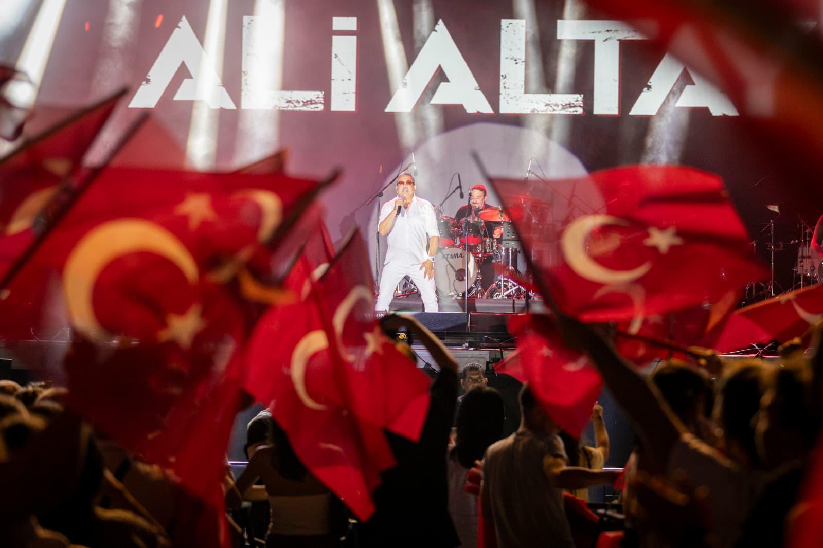 Konserde Ali Altay’ın söylediği şarkılara Başkan Tugay ve İzmirliler, Türk bayraklarını dalgalandırarak eşlik etti. Ali Altay’ın ricası üzerine cep telefonlarının ışıklarını yakan İzmirliler, konser alanını ışık şovuna dönüştürdü. Konser alanında görüntü alındığını söyleyen Ali Altay, çekilen görüntülerin 9 Eylül İzmir’in kurtuluşunun 103’üncü yılına özel bestelenen şarkının klibinde kullanılacağını söyledi. Altay, “9 Eylül’de bunu klip olarak göreceksiniz, çok güzel bir güne imza atıyorsunuz. 9 Eylül’e bomba gibi bir eser yaptık, nakaratını söylüyorum. ‘Yak ışıkları yak, gökyüzü aydınlansın. Kaldır bayrakları kaldır, ay yıldız dalgalansın” dedi.