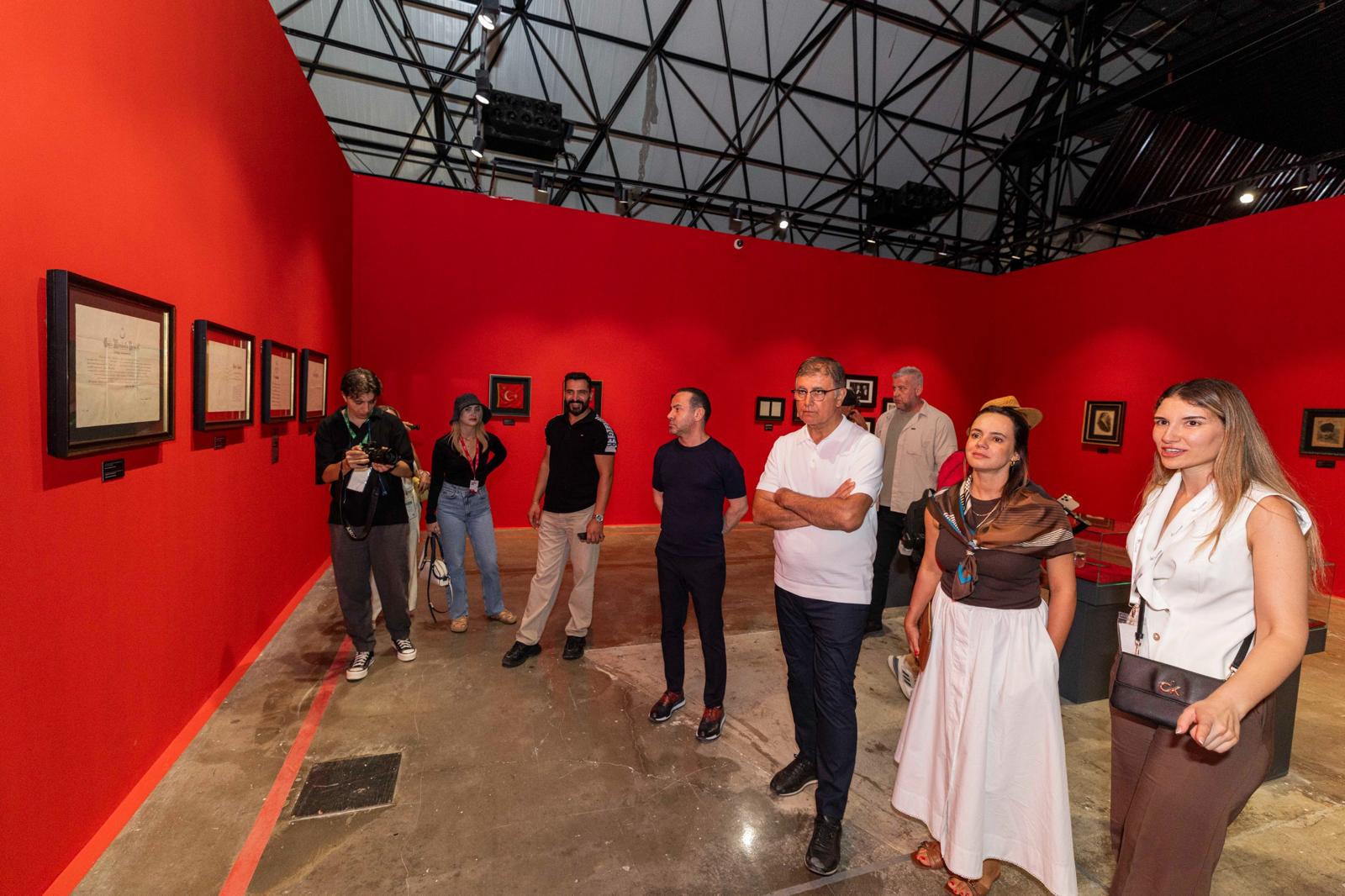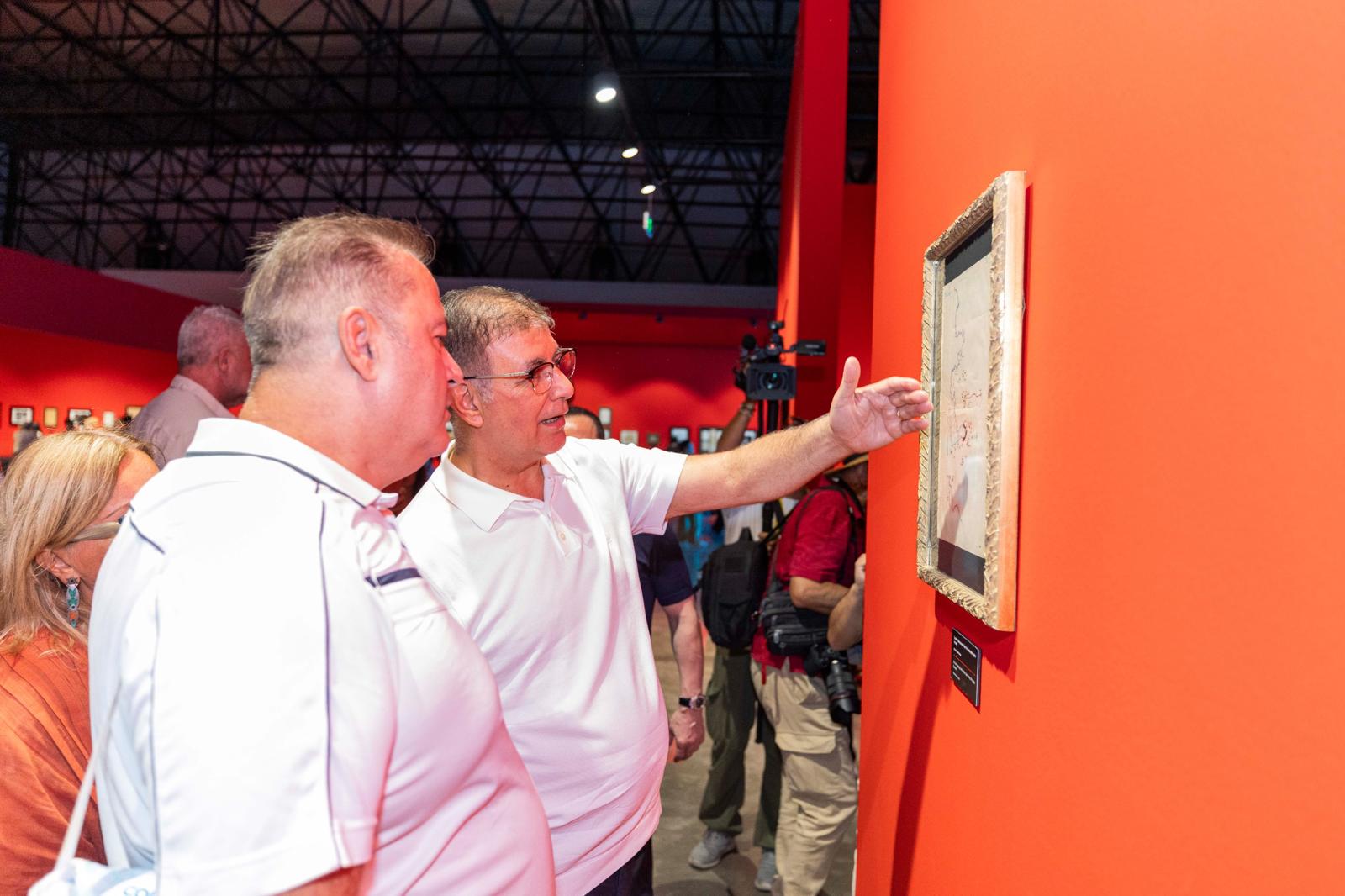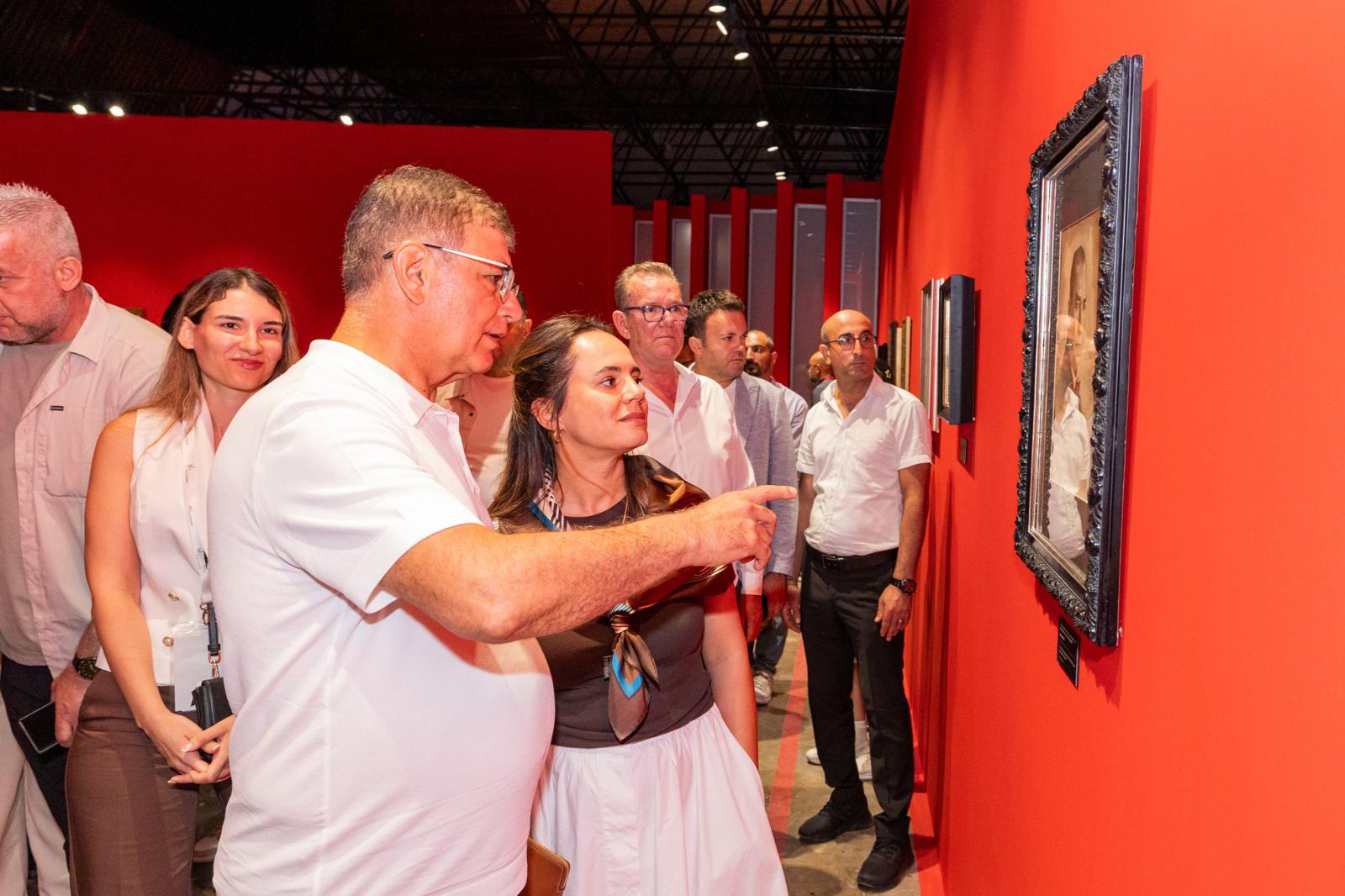 İzmir Büyükşehir Belediyesi, Folkart ve Folkart Gallery iş birliğiyle 94. İzmir Enternasyonal Fuarı’nda (İEF) kapılarını açan, Ulu Önder’in bugüne dek gün yüzüne çıkmamış 250 fotoğrafı, 226 kişisel eşyası ve yüzlerce belgesini kapsayan “Ve Mavi Gözleri Çakmak Çakmaktı” Mustafa Kemal Atatürk sergisi ile dünyaca ünlü medya sanatçısı Refik Anadol’un veri bilimi ve yapay zekayı sanatsal bir dile dönüştürdüğü “Şifanın Algısı” ve dünyada ilk kez İzmir’de sergilenen “Makine Rüyaları: Ege” sergileri, açıldığı günden beri İzmirlilerin kapısında kuyruklar oluşturdu. İzmir Büyükşehir Belediye Başkanı Dr. Cemil Tugay ve eşi Öznur Tugay ile Folkart Yönetim Kurulu Başkanı Mesut Sancak göz kamaştıran sergiyi İzmirlilerle birlikte gezmek için Kültürpark Atlas Pavyonu’na geldi. Eserleri teker teker inceleyen Başkan Dr. Cemil Tugay, ziyaretçilerle eserler üzerine sohbet de etti.