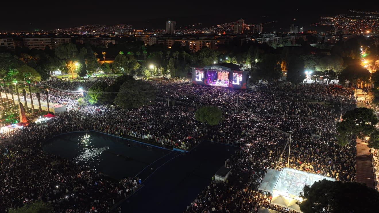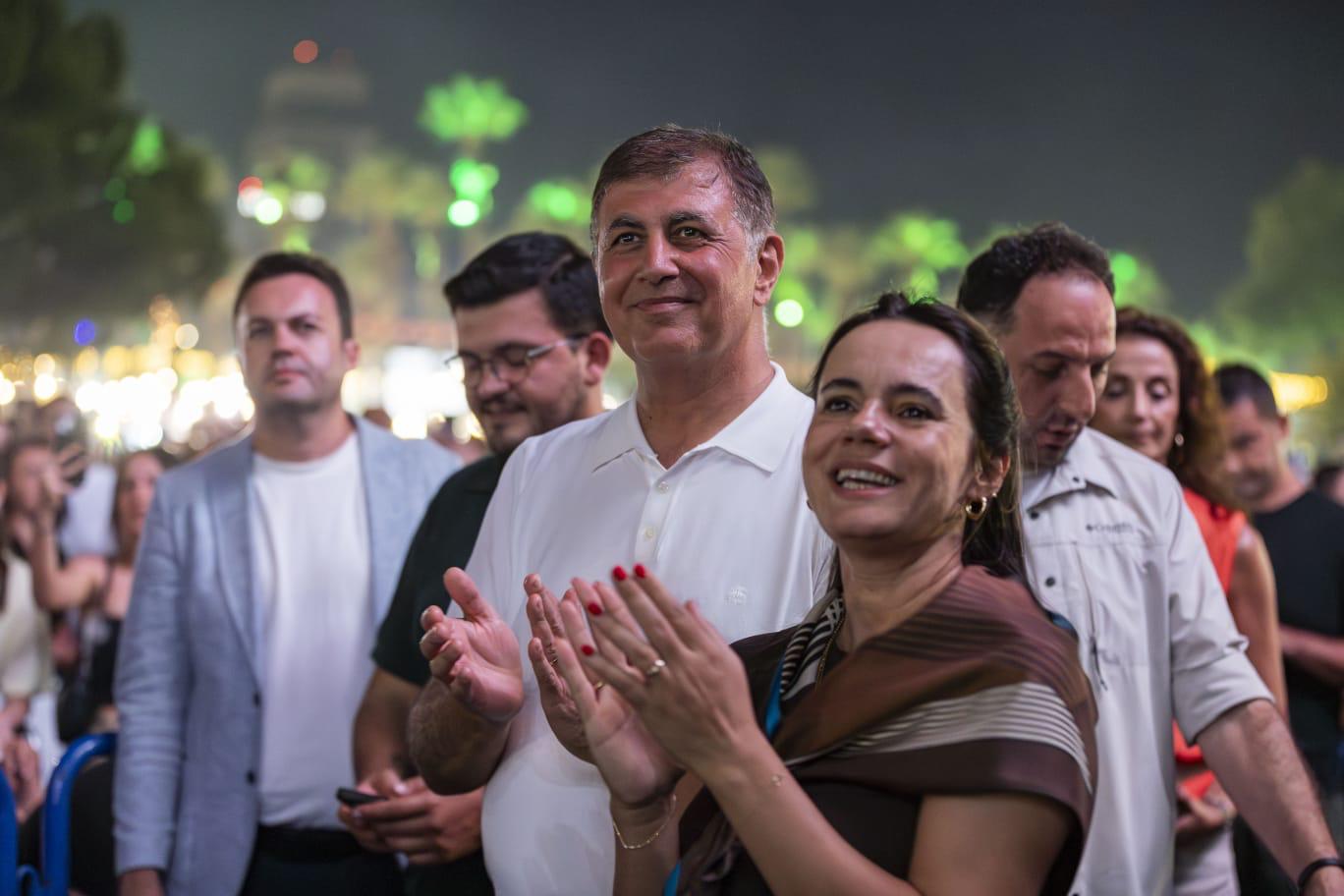 İzmir Büyükşehir Belediye Başkanı Dr. Cemil Tugay, eşi Öznur Tugay ile 94’üncü İEF kapsamında, çim konserlerinde sahne alan ünlü sanatçı Yıldız Tilbe’yi dinledi. Binlerce İzmirlinin akın ettiği fuarda konsere de büyük ilgi vardı. Tugay çifti Yıldız Tilbe’nin sevilen şarkılarına eşlik etti. Konsere katılanlar da cep telefonları ile çekim yaparak o anları ölümsüzleştirdi. Yıldız Tilbe hayranları, dansıyla göz dolduran sanatçıya hep bir ağızdan eşik etti.