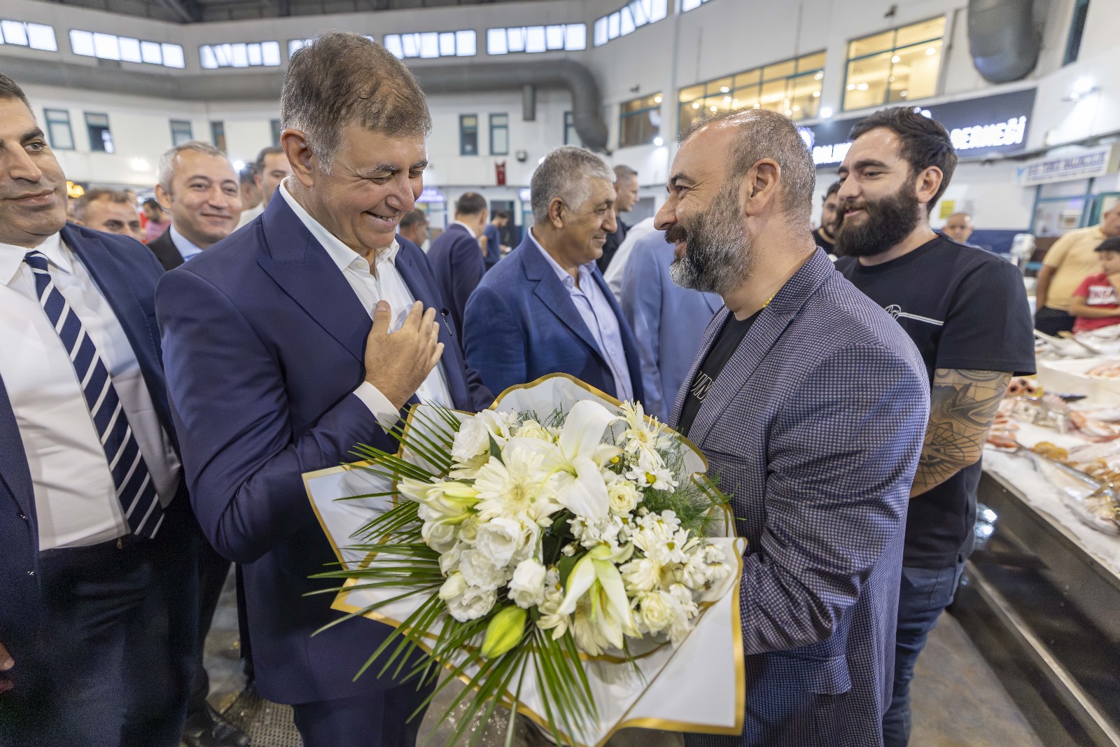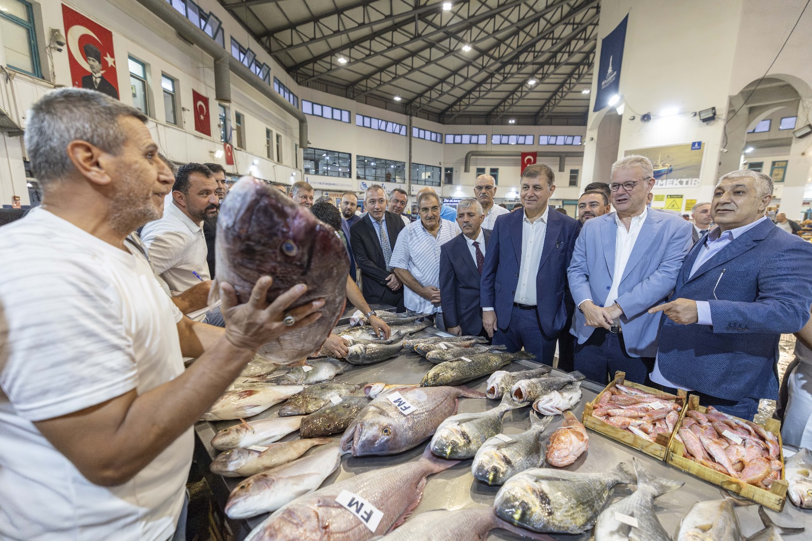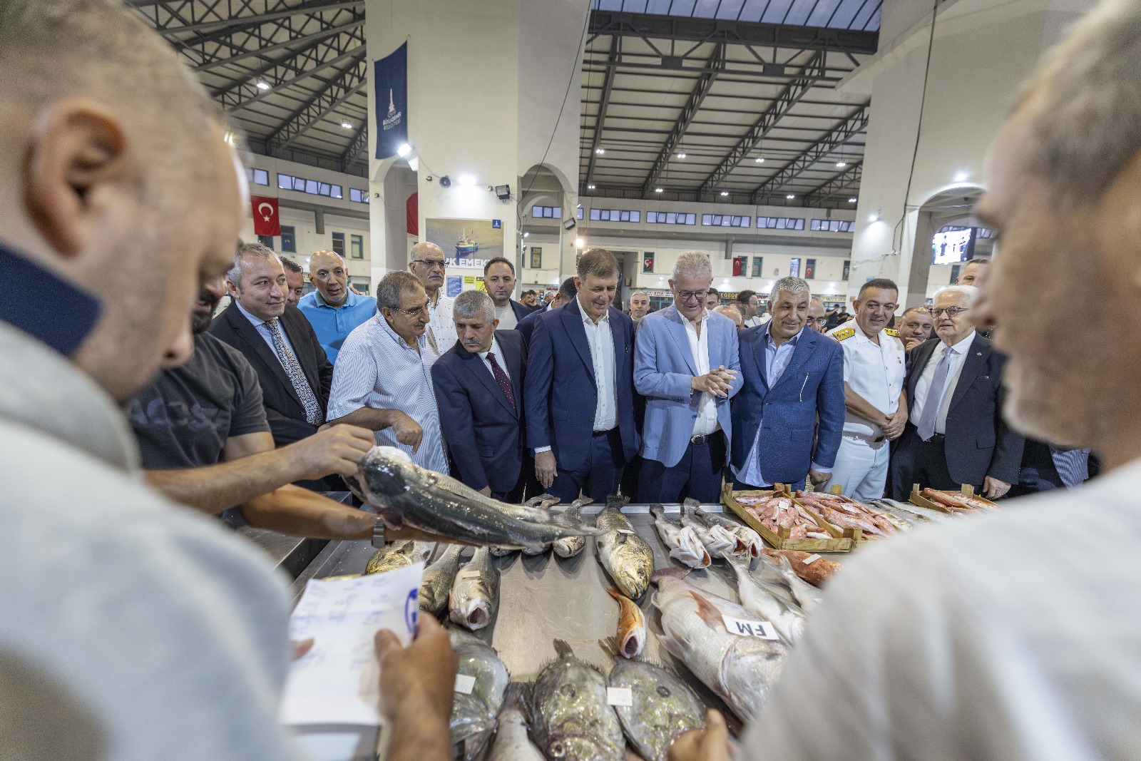 Başkan Dr. Cemil Tugay, tezgahları ziyaret ederek balıkçılara bol kazançlı, bereketli bir sezon diledi. Av yasağının bitmesiyle denizden çıkarılan ilk balıklar açık artırma usulüyle satıldı. Başkan Tugay, sezonun ilk balığını mezattan alarak siftah yaptı. Mezatın ardından Başkan Tugay, halde yeni bir işletmenin de açılışını yaptı. Sezonun ilk satılan balıkları ise kalkan, lahos, mercan, levrek, trança ve barbun oldu.