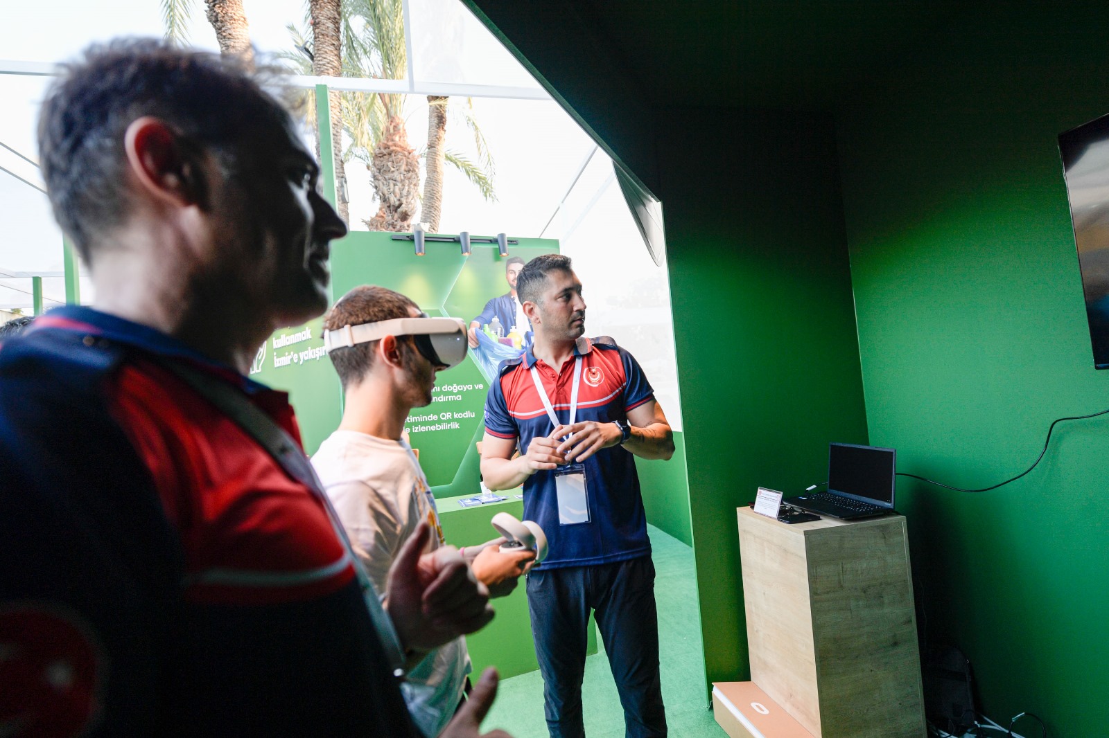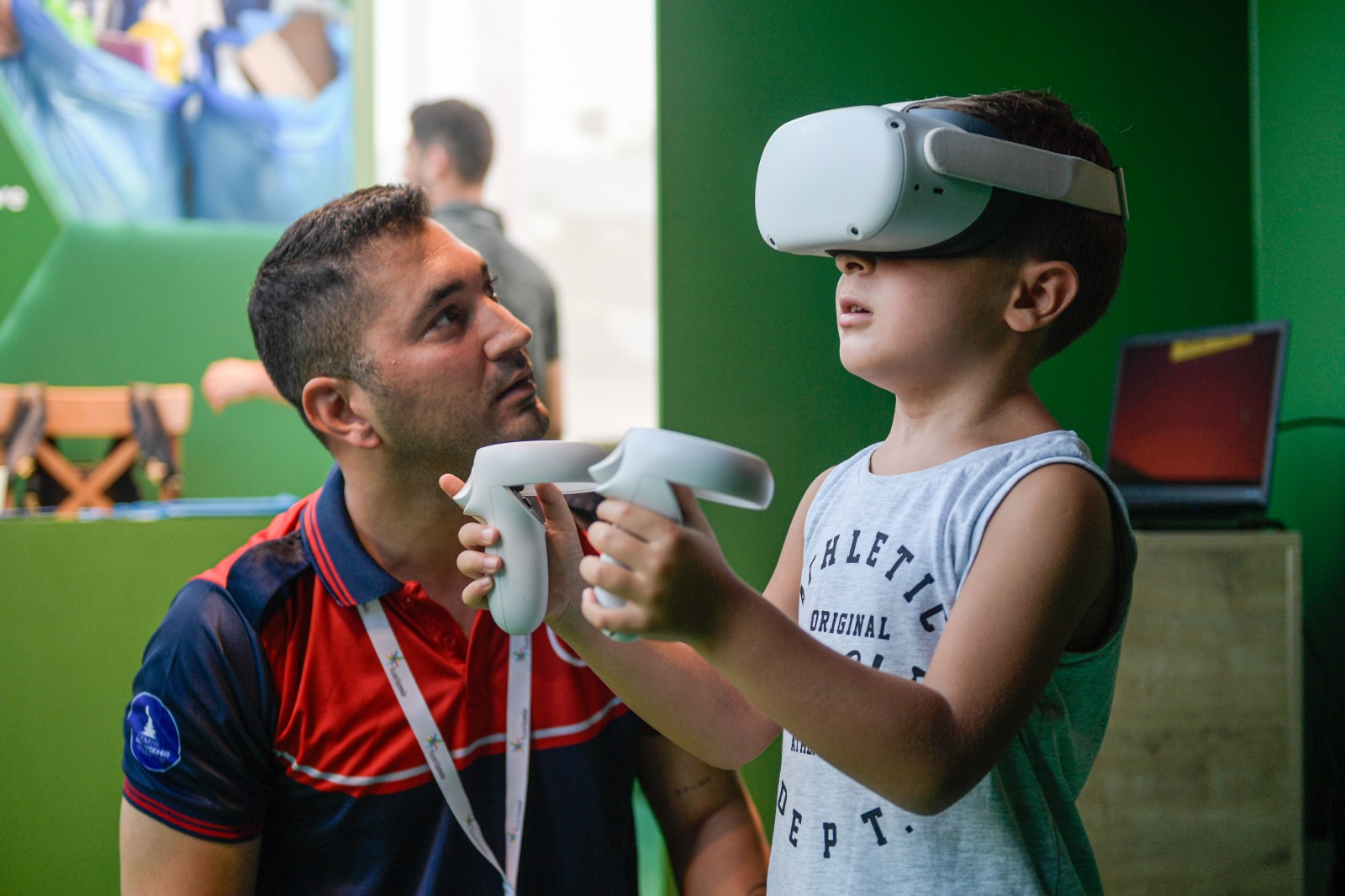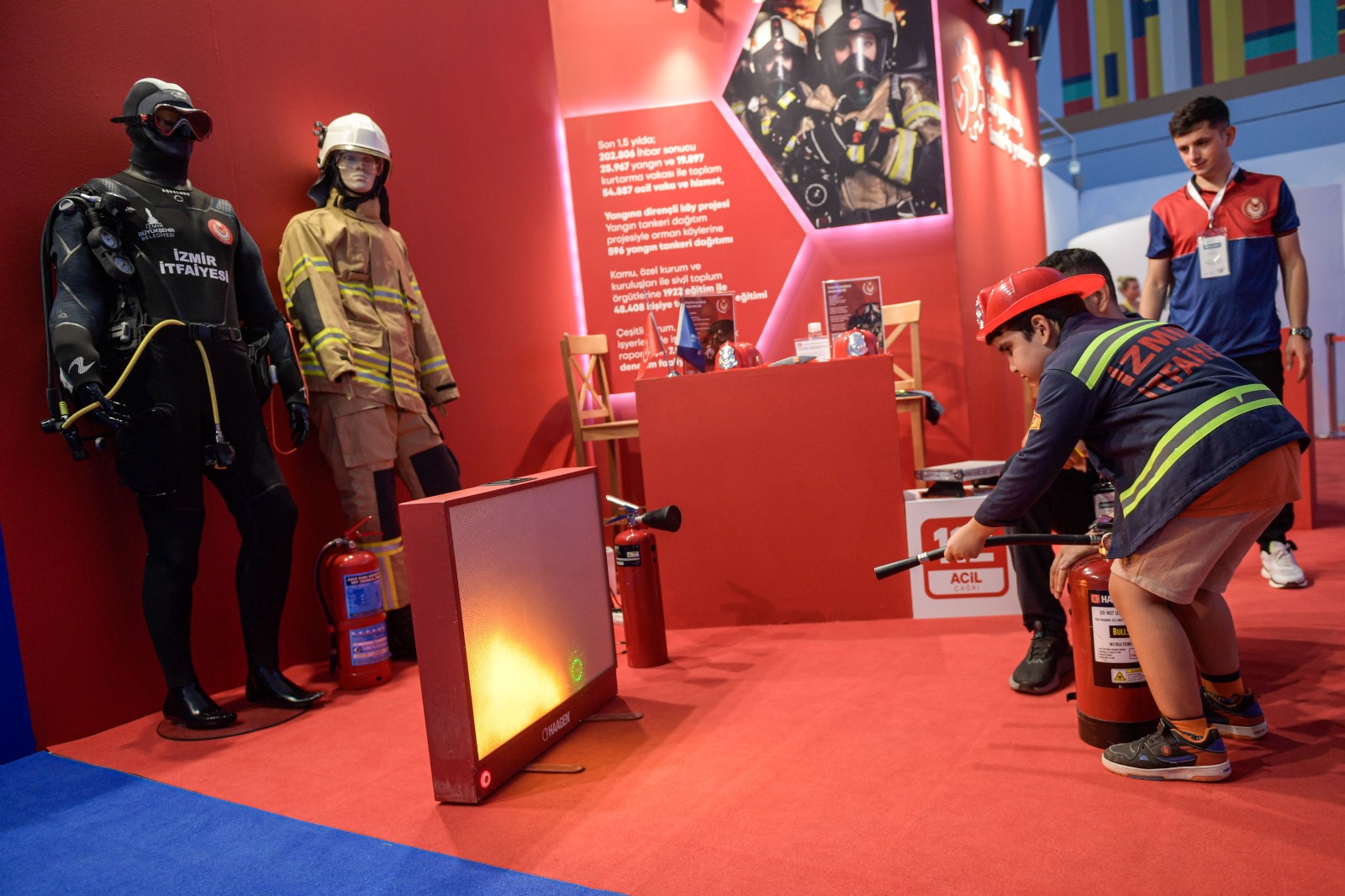 İEF’nin her yaştan konuğu, kuru kimyevi ve karbondioksitli yangın tüpleri ile doğru müdahale tekniklerini öğretmek üzere özel olarak hazırlanan senaryolarla, önemli bir deneyim yaşadı. Sanal gerçeklik gözlüğünü kullanan Kayra Çavuş, “Gözlüğü taktım, elime yangın tüpünü alarak yangın söndürdüm. Gerçeğe çok yakındı. Hatta bu eğitimi verenleri görmedim. Endişelendim. Dışarda daha önce böyle bir yangın görmedim. Burada görünce etkilendim” dedi.