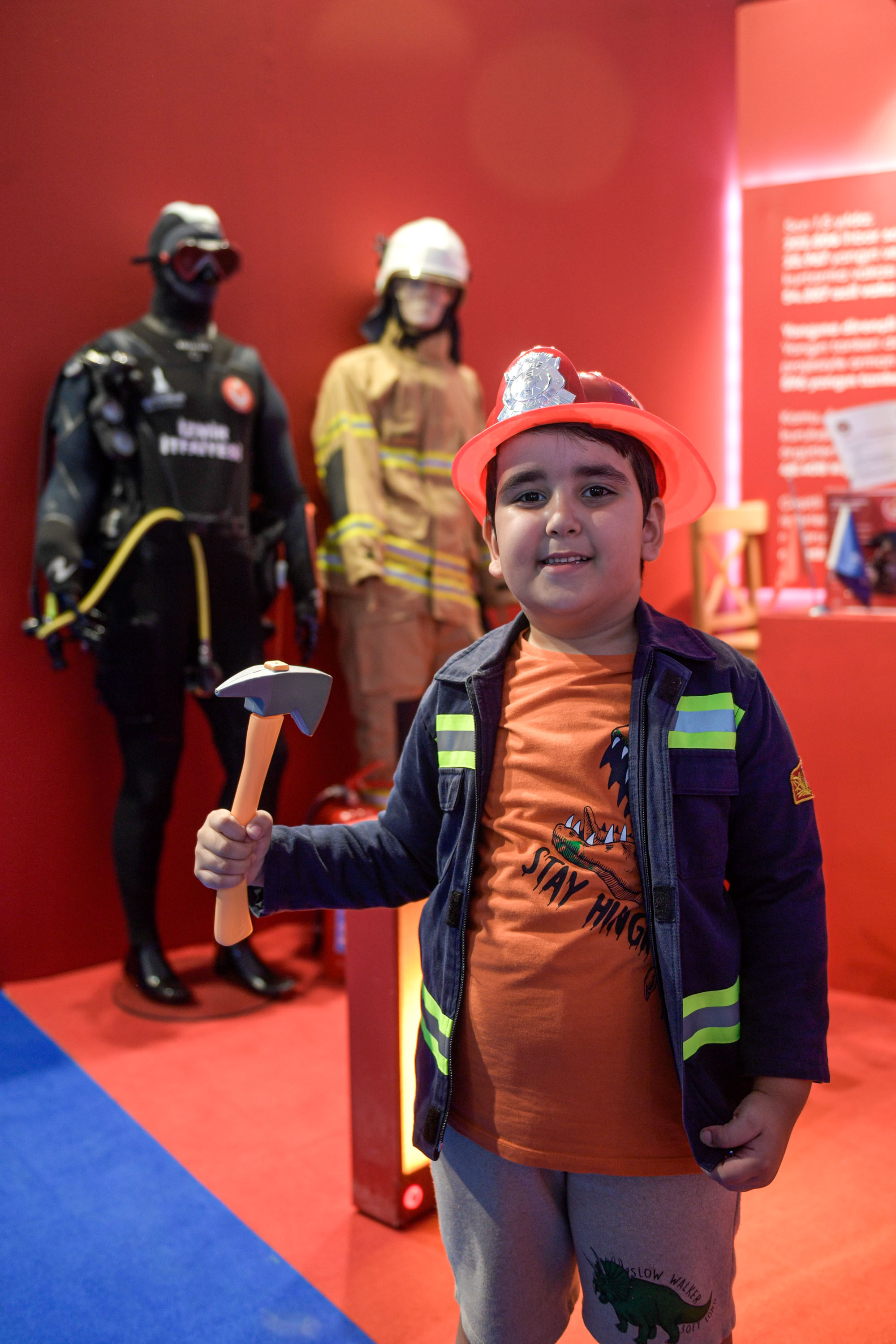 6 yaşındaki Eymen Sarı ise lazerli yangın söndürme cihazı ile yangına müdahale etmeyi öğrendi. Çocuklar için tasarlanan itfaiyeci kıyafetini giyen, kask takan Sarı, “Ateşi söndürdüm ve itfaiyeci oldum. Yangın başladığı zaman onu nasıl söndüreceğimi öğrendim. Çok güzeldi” dedi.