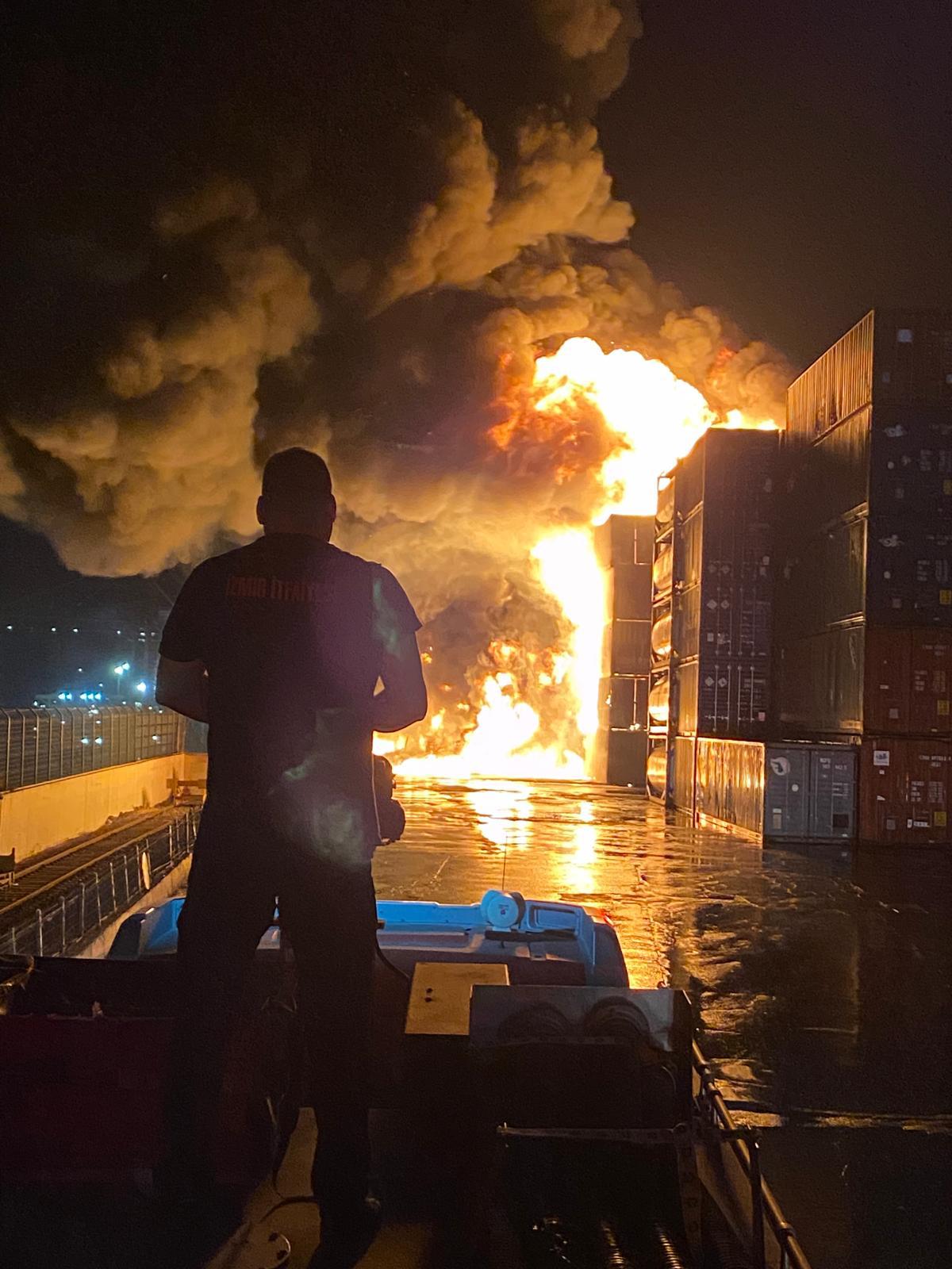 İzmir’in Aliağa ilçesinde bulunan Nemport Limanı’nda sabaha karşı yangın çıktı. İhbar üzerine İzmir Büyükşehir Belediyesi İtfaiyesi, çok sayıda araç ve personel ile bölgeye sevk edildi. İçerisinde balık yağı olduğu belirlenen konteynerlerde başlayan yangın, ekiplerin yoğun müdahalesi sonucu tehlikeli kimyasal içeren konteynerlere ulaşmadan kontrol altına alındı.