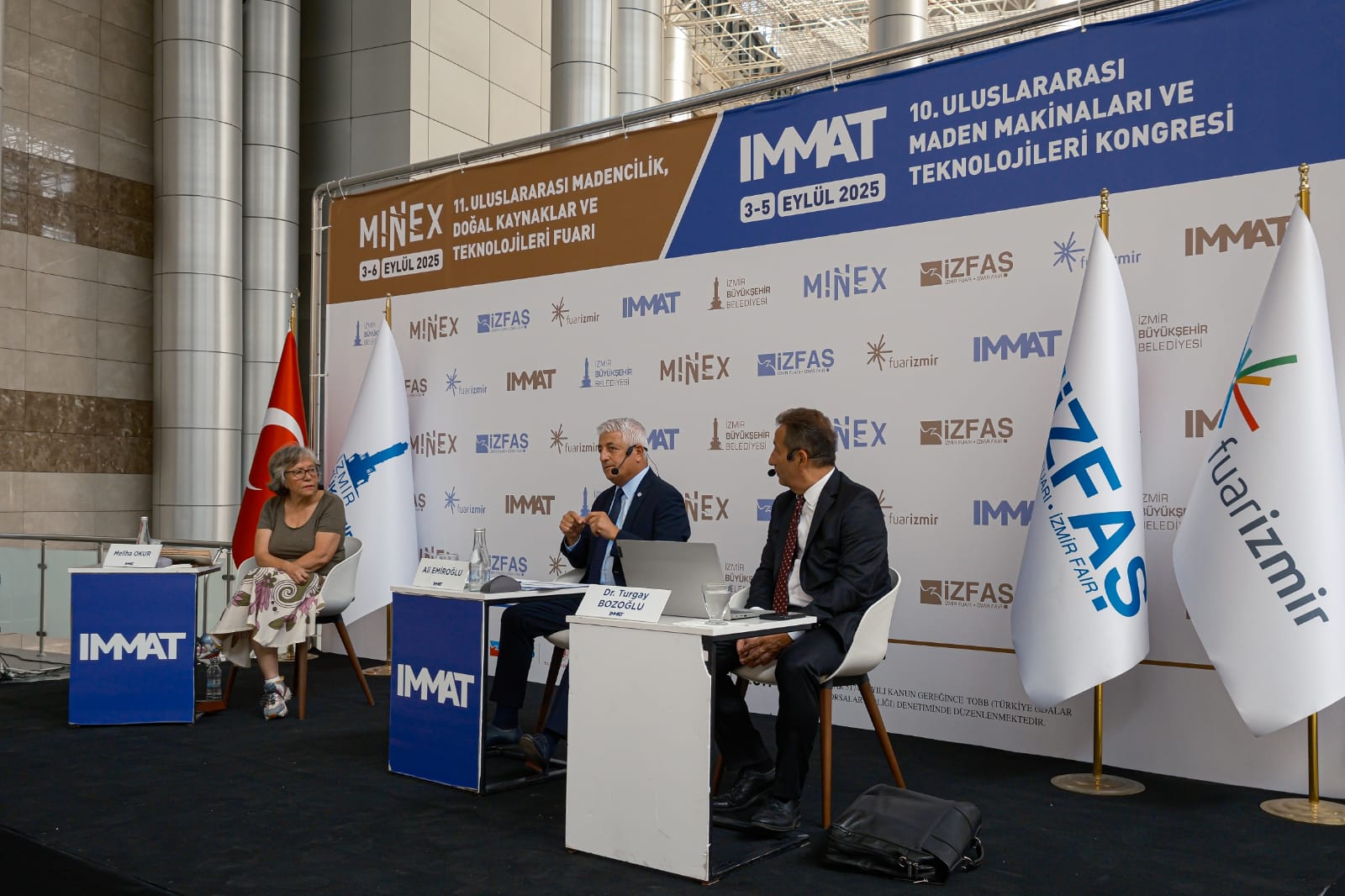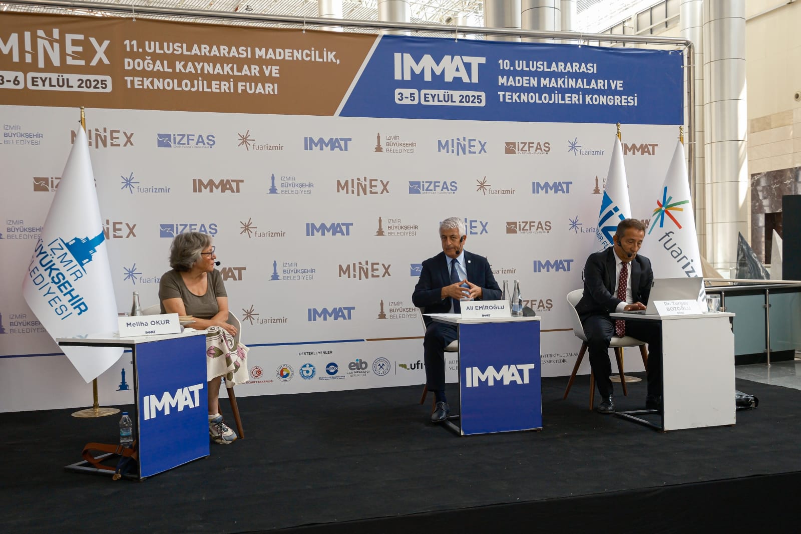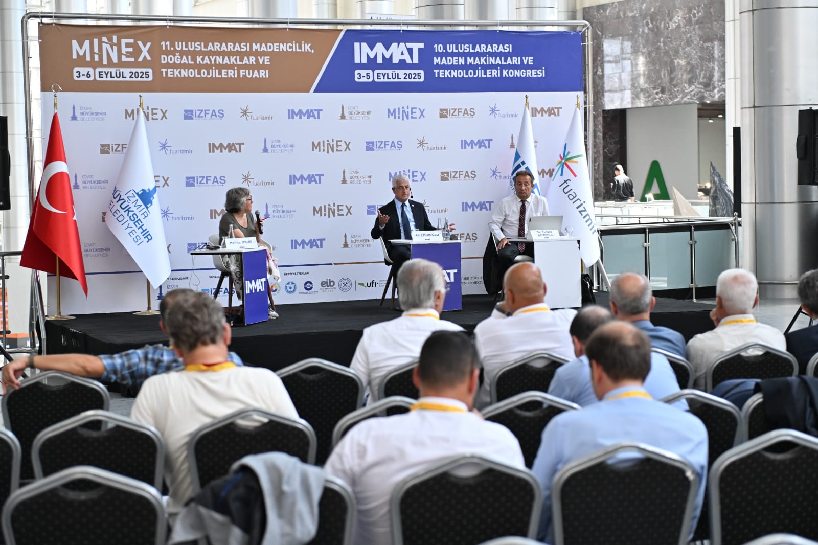 İzmir Büyükşehir Belediyesi’nin ev sahipliğinde İZFAŞ tarafından düzenlenen MINEX – 11. Uluslararası Madencilik, Doğal Kaynaklar ve Teknolojileri Fuarı, Fuar İzmir’de düzenleniyor. Fuar ile eş zamanlı olarak TMMOB Maden Mühendisleri Odası İzmir Şubesi tarafından organize edilen 10. Uluslararası Maden Makinaları ve Teknolojileri Kongresi (IMMAT-2025) de gerçekleştiriliyor. Akademi ve sektör temsilcilerini bir araya getirerek, madencilik alanında teknik ve bilimsel gelişime katkı sunan kongrenin, Meliha Okur, Turgay Bozoğlu ve Ali Emiroğlu konuşmacı olduğu açılış oturumu, “Madencilik ve Ekonomi” başlığı altında gerçekleştirildi.