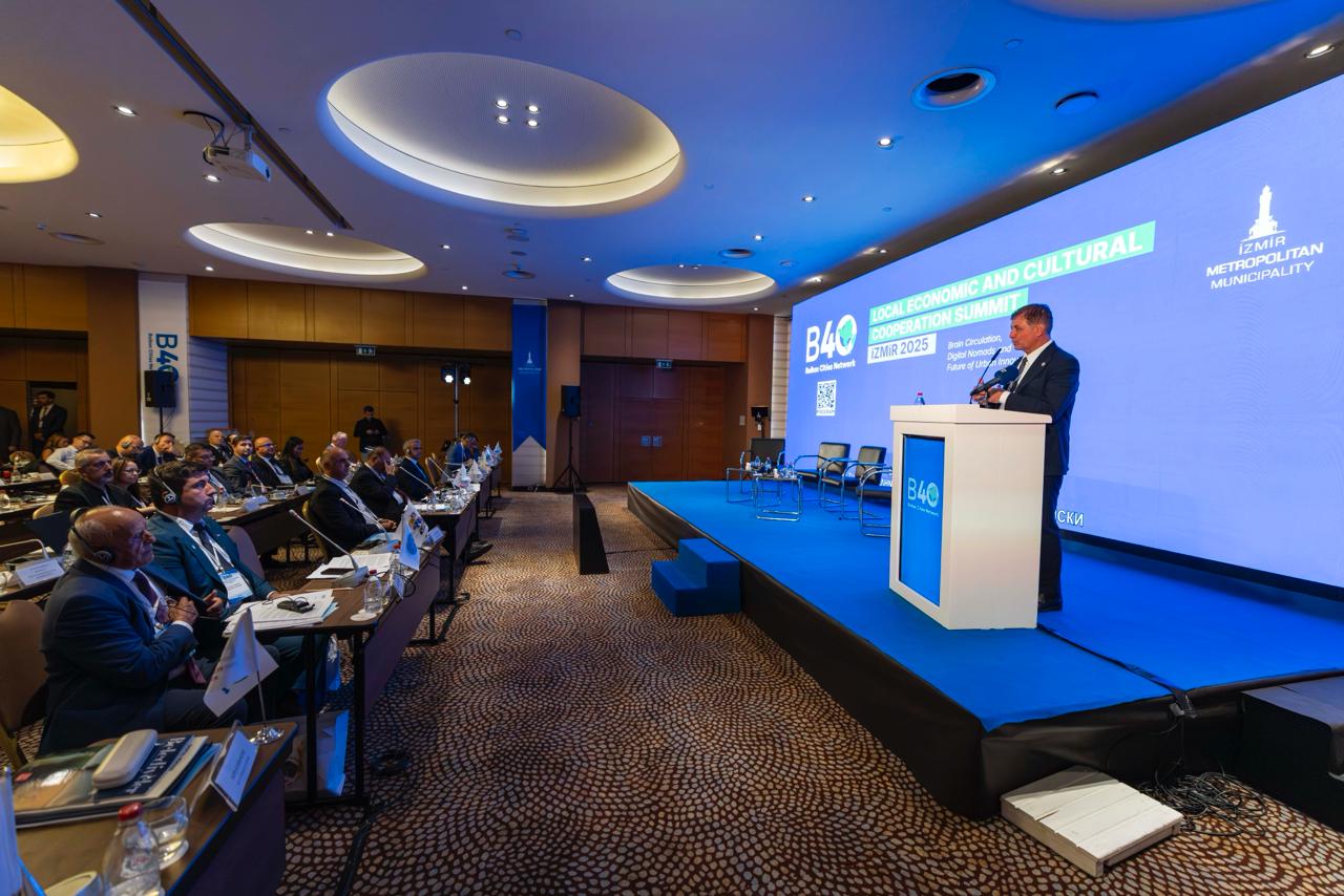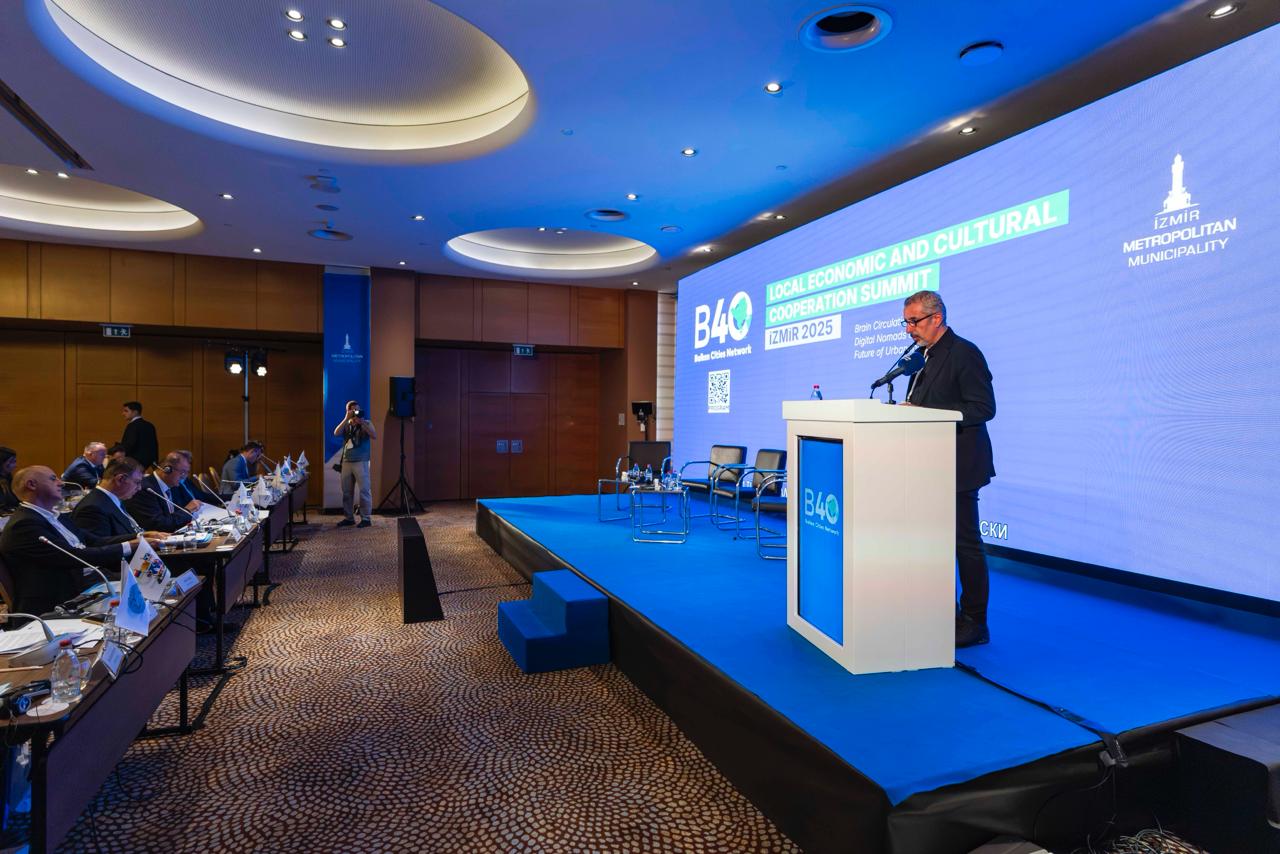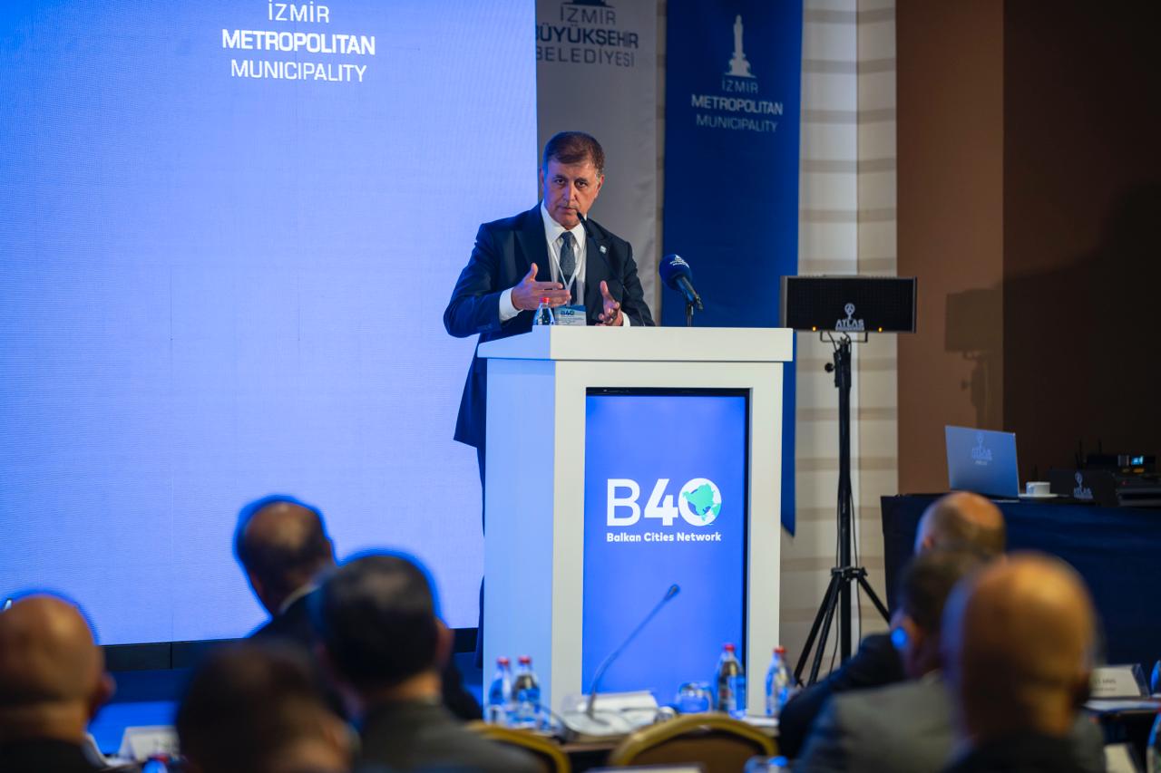 İzmir Büyükşehir Belediyesi'nin ev sahipliğinde gerçekleştirilen B40 Balkan Şehirleri Ağı'nın B40 Kültürel ve Ekonomik İş Birliği Zirvesi’nin kapanış töreninde konuşan İzmir Büyükşehir Belediye Başkanı Dr. Cemil Tugay, demokrasi vurgusu yaptı. Başkan Tugay, “Demokrasi ve özgürlükler olmadan insanların mutlu olmayacağını, refah içinde yaşayamayacağını ve iklim krizi gibi sorunların da düzelmeyeceğini biliyoruz. Sorunların çözümü için dost ellerle el sıkışmayı, ortak çalışmayı, beraber mücadele etmeyi öğrenmeliyiz ” dedi. Zirvenin sonunda B40 İzmir Kültür ve Ekonomi Ortak Bildirgesi yayımlandı.