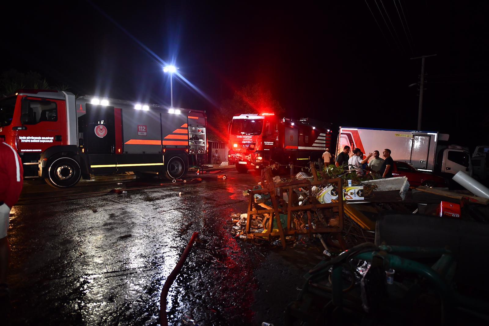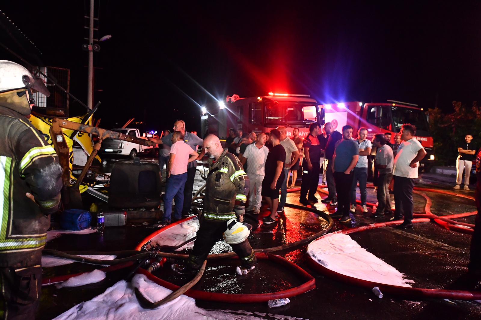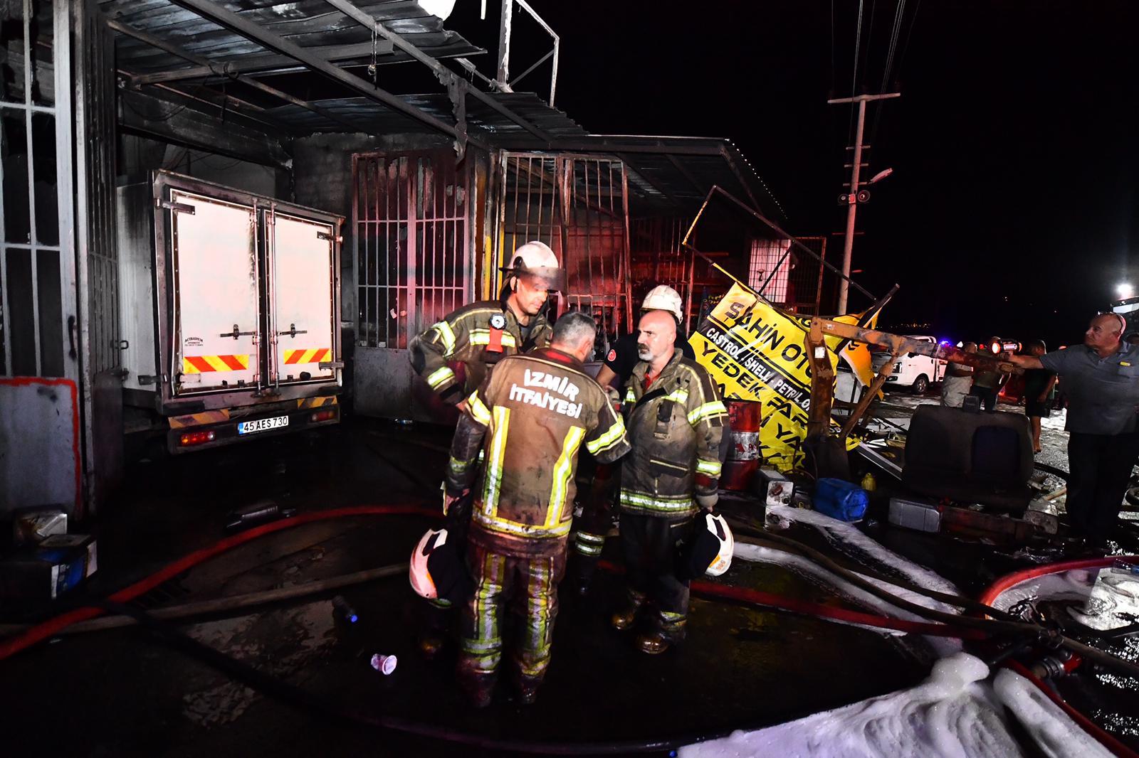 İzmir’in Kemalpaşa ilçesine bağlı Bağyurdu Sanayi Sitesi’nde bulunan bir oto tamircide dün akşam 22.30 sıralarında yangın çıktı. Hızla büyüyen alevler yayılarak, civarda bulunan işyeri ve araçlara sıçradı. İhbar üzerine 8 araç 25 personel ile olay yerine sevk edilen İzmir Büyükşehir Belediyesi İtfaiye Dairesi Başkanlığı ekipleri, yangını yaklaşık bir buçuk saat süren çalışmalar sonucu kontrol altına aldı. Olayda can kaybı ya da yaralanma yaşanmaazken sanayi sitesindeki 7 işyeri ve 3 araç yangından etkilendi.
