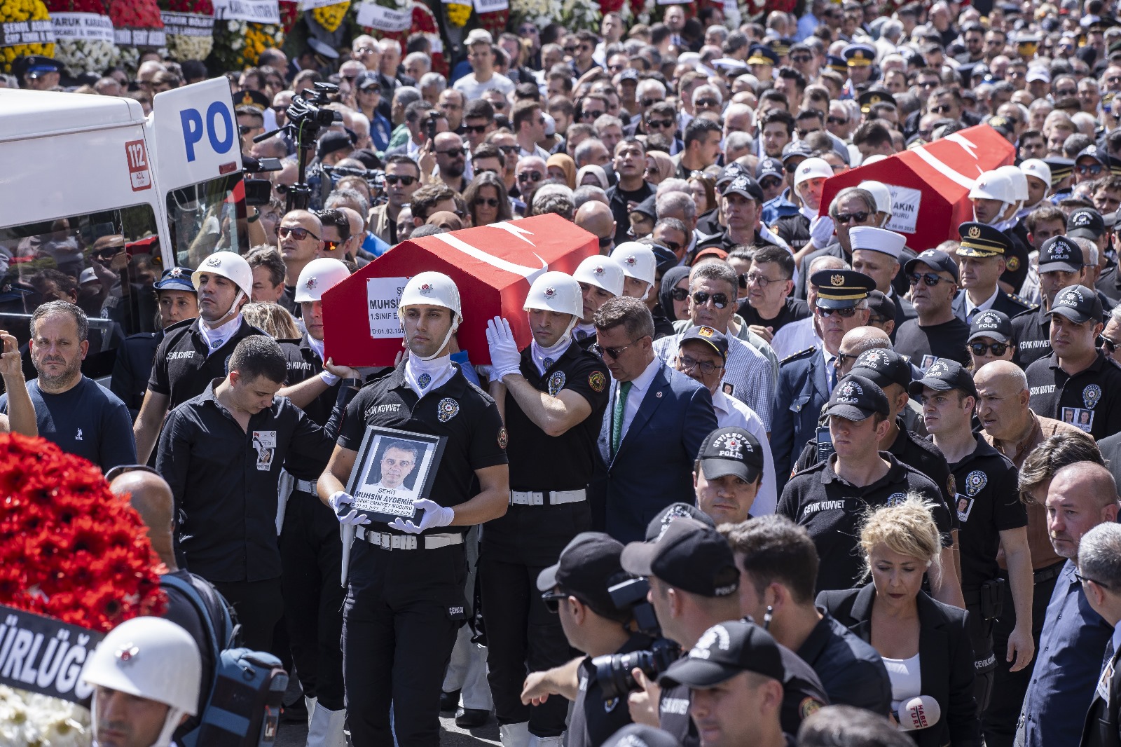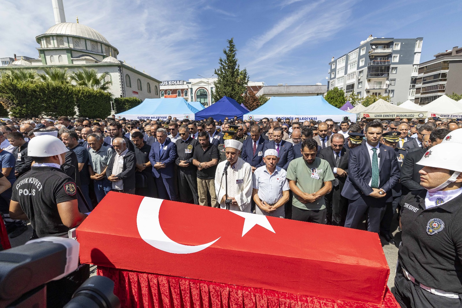 İzmir Büyükşehir Belediye Başkanı Dr. Cemil Tugay, Balçova Salih İşgören Polis Merkezi’ne düzenlenen saldırıda şehit olan Birinci Sınıf Emniyet Müdürü Polis Başmüfettişi Muhsin Aydemir ile Polis Memuru Hasan Akın’ı son yolculuğuna uğurladı. Şehitlerin cenaze namazı, Gaziemir 15 Temmuz Şehitler Camii’nde öğle namazını müteakip kılındı. Cenaze törenine Başkan Dr. Cemil Tugay’ın yanı sıra İçişleri Bakanı Ali Yerlikaya, İzmir Valisi Dr. Süleyman Elban, Ege Ordusu ve Garnizon Komutanı Orgeneral İrfan Özsert ve ordu mensupları, Cumhuriyet Halk Partisi Genel Başkan Yardımcısı Murat Bakan, İzmir İl Emniyet Müdürü Celal Sel ve emniyet mensupları, İzmir Cumhuriyet Başsavcısı Ali Yeldan, İzmir milletvekilleri, ilçe belediye başkanları, siyasi partilerin il ve ilçe başkanları, şehitlerin yakınları, çalışma arkadaşları, sivil toplum kuruluşlarının temsilcileri ve çok sayıda İzmirli katıldı.