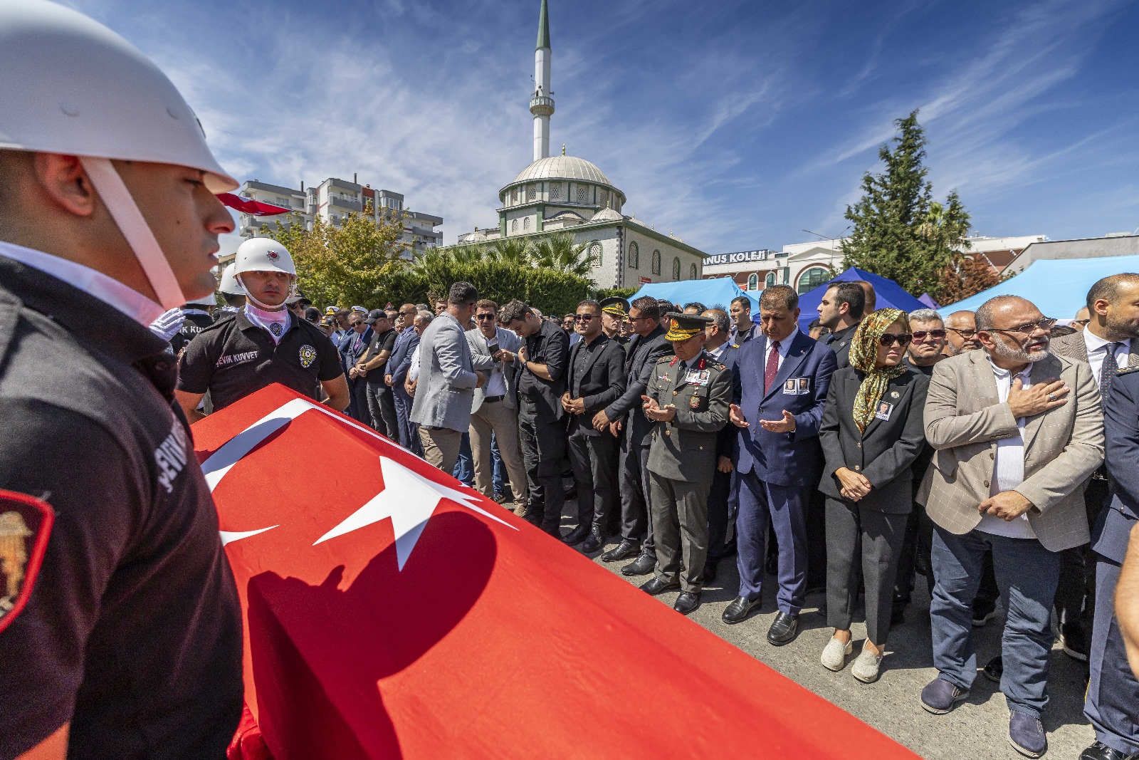 Şehitlerin ay yıldızlı bayrağa sarılı naaşı çalışma arkadaşları tarafından sirenler eşliğinde 15 Temmuz Şehitler Camii'ne getirildi. Birinci Sınıf Emniyet Müdürü ve Polis Başmüfettişi Muhsin Aydemir’in cenaze namazını İzmir İl Müftüsü Sinan Kazancı, Polis memuru Hasan Akın’ın cenaze namazını ise şehidin babası emekli din görevlisi Ferhat Akın kıldırdı. Cenaze namazının ardından Şehit Emniyet Müdürü Muhsin Aydemir’in cenazesi Bornova Işıkkent Polis Şehitliği’ne, Şehit Polis Memuru Hasan Akın’ın cenazesi ise Urla Kuşçular Mahallesi Ova Mezarlığı’na defnedilmek üzere uğurlandı.
