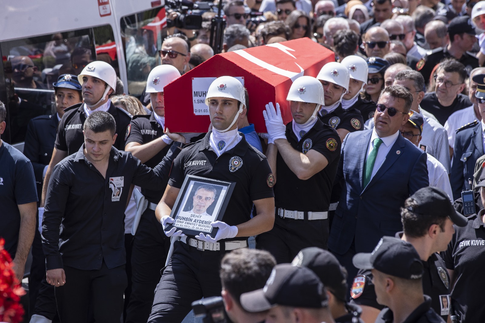 İzmir, kurtuluşunun 103’üncü yıldönümünde şehitlerini sonsuzluğa uğurladı. Balçova Salih İşgören Polis Merkezi’ne düzenlenen saldırıda şehit olan Birinci Sınıf Emniyet Müdürü Polis Başmüfettişi Muhsin Aydemir ile Polis Memuru Hasan Akın son yolculuğuna uğurlandı.