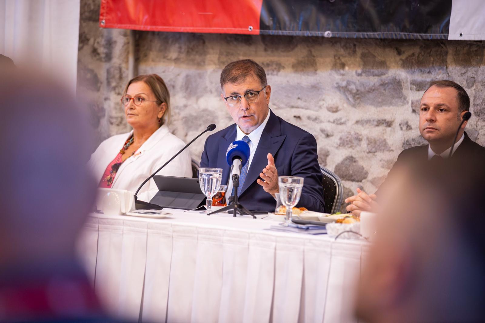 Toplantının açılışını yapan Başkan Tugay, “Sizlerle beraber olduğumuz için mutluyuz. Sporu çok önemsiyoruz. Bunun için hem sizlerin faaliyetlerine desteklerimizi artırıyoruz, hem de şehrin spor altyapısını güçlendirmek için elimizden geleni yapıyoruz. Bu bizim için gerçekten önemli” dedi.