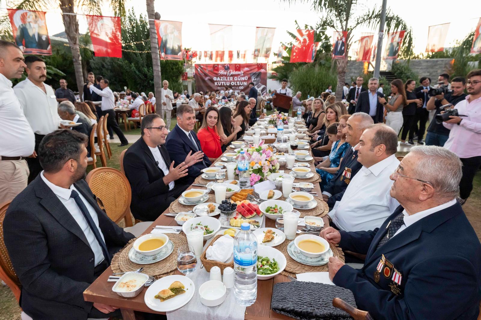 Büyükşehir Belediye Başkanı Dr. Cemil Tugay, “19 Eylül benim için çok özel bir gün. 5 yıl önce gazi babamı kaybedince bambaşka özel bir güne dönüştü. Babam Kıbrıs gazisiydi. Tarif edilemeyecek anlamı, değeri var. Bir vatan var, vatanın içinde kardeşim dediğiniz, vatandaşım dediğiniz milyonlarca insan var. Hep beraber inandığımız, savunduğumuz değerler var. Onları savunmak, bazen onlar için canınızı ortaya koymak gerekiyor. O mücadeleden zaferle çıkan, onurla çıkan insanlar var. Gazi Mustafa Kemal Atatürk’ün sözüyle ‘Yaşayan Anıtlar’, sizler yani gazilerimiz, her gün el üstünde tutulmayı hak ediyorsunuz. Ben gazilerimizin büyük bir aile olduğunu, birbirlerine sevgi ve saygıyla bağlı olduğunu biliyorum” diye konuştu.