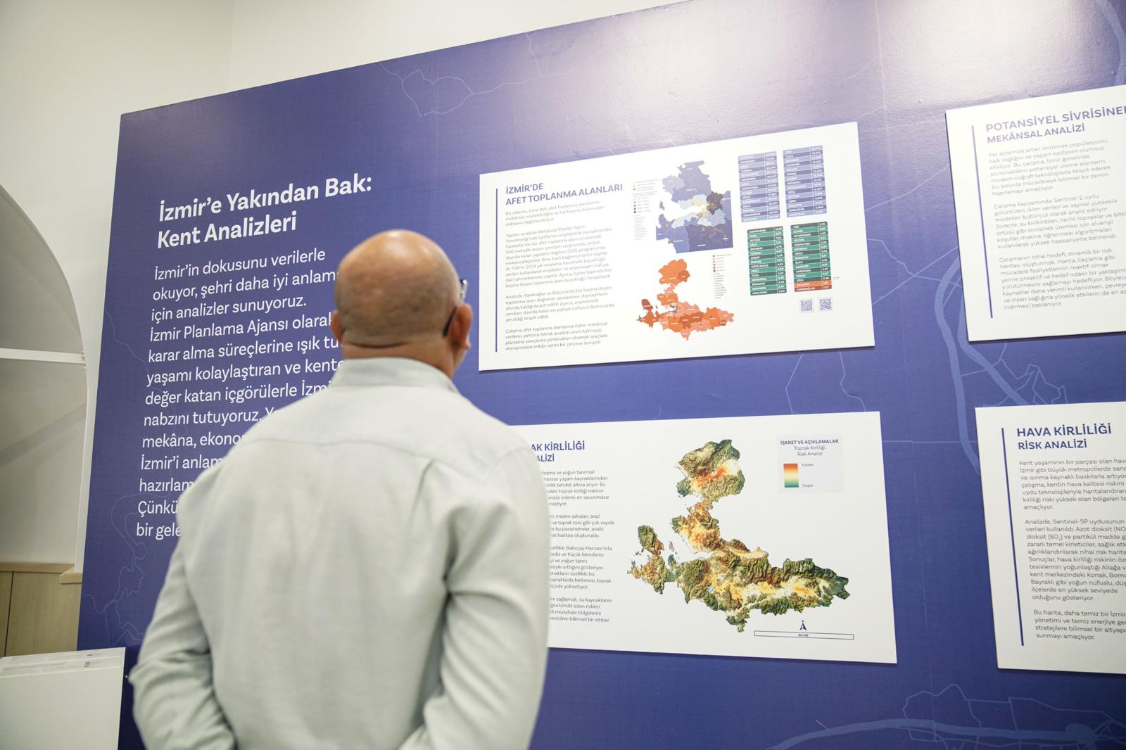 Dört ana bölümden oluşan sergide, hem ajansın çalışma yöntemlerine hem de İzmir’in bugününü ve geleceğini nasıl düşündüğüne dair bir çerçeve sunuluyor. Serginin ilk bölümünde, kentle ilgili güncel çevresel ve mekânsal riskleri anlamaya yönelik analiz çalışmaları yer alırken, ikinci bölüm bu analizlerden beslenen eylem planları ve İZPA tarafından hazırlanan yayınlardan oluşuyor. Ajansın gerçekleştirdiği İzmir’i birlikte düşünme ve birlikte şekillendirmeyi amaçlayan katılımcılık odaklı çalışmalar ise serginin üçüncü bölümünde kendisine yer buluyor. Serginin dördüncü ve son bölümünde ise ajansın, 2030 yılından 2054’e ve oradan 2074’e uzanan zaman diliminde İzmir’e dair planları, vizyonu, kısa, orta ve uzun vadeli hedefleri paylaşılıyor.