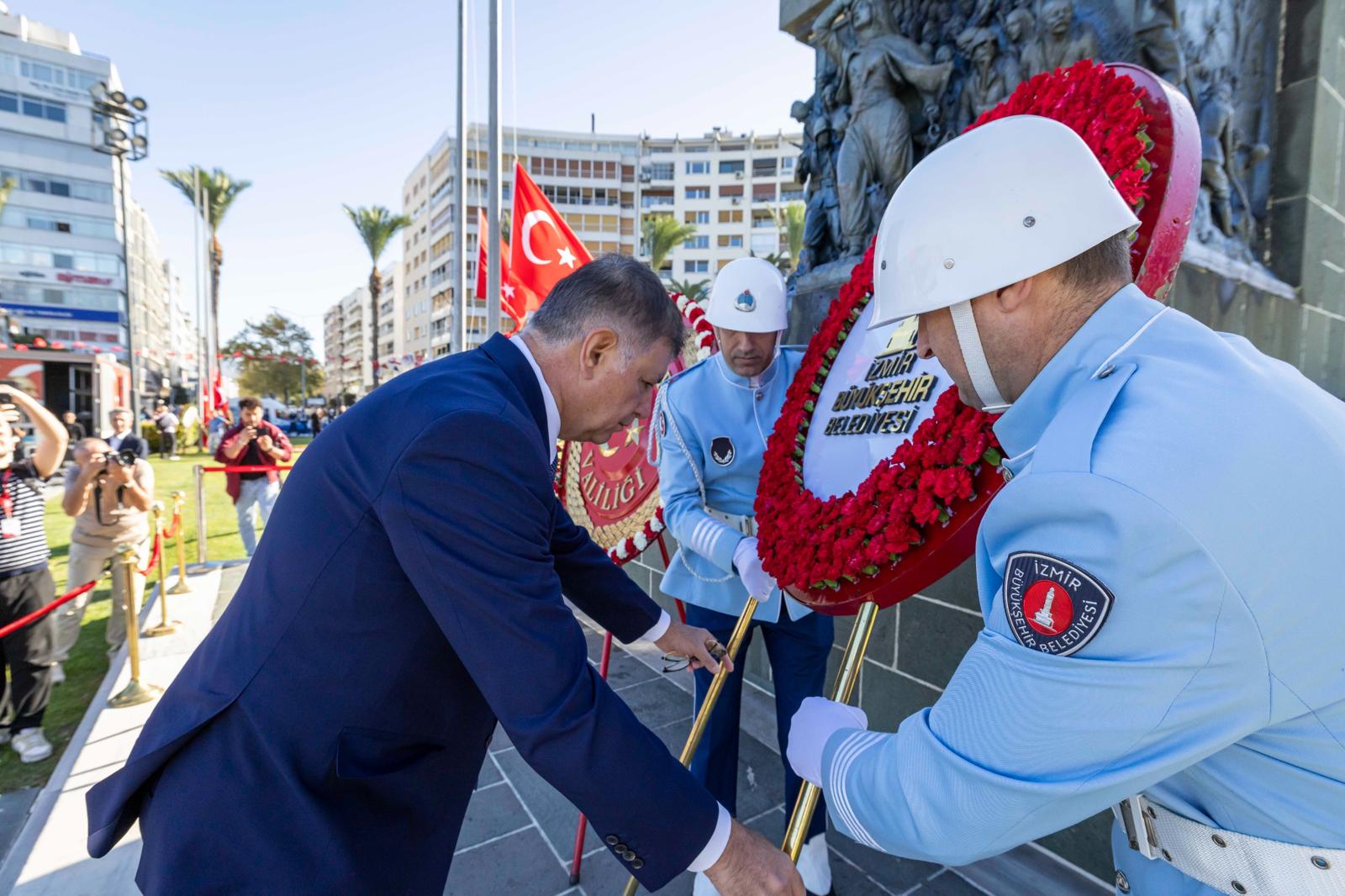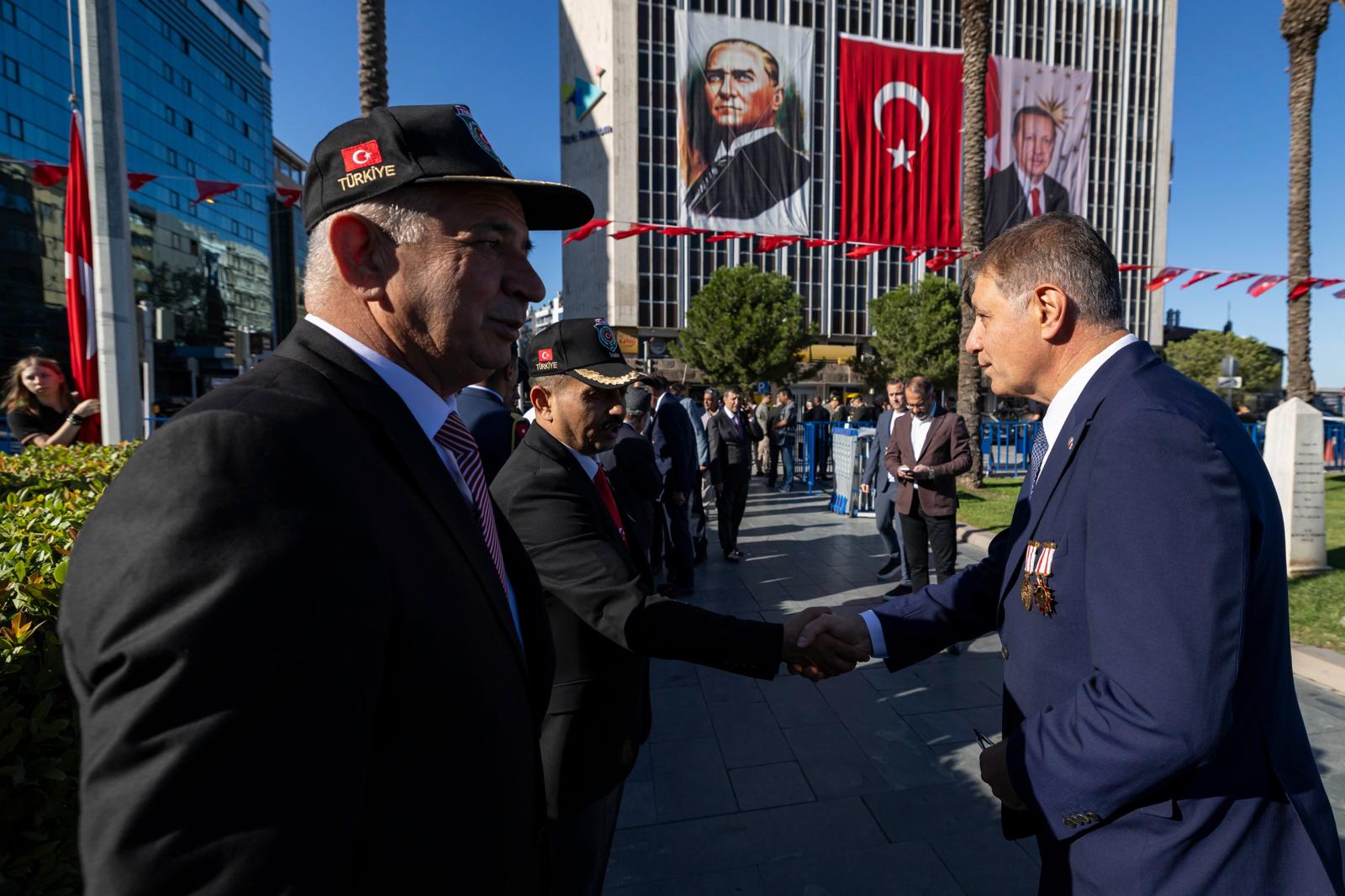 İzmir Büyükşehir Belediye Başkanı Dr. Cemil Tugay, 19 Eylül Gaziler Günü nedeniyle Cumhuriyet Meydanı’nda düzenlenen resmi törene katıldı. Başkan Tugay’ın Kıbrıs gazisi babası Cemal Tugay’ın madalyaları ile katıldığı kutlama programı saygı duruşu ve İstiklal Marşı ile başladı. Törende İzmir Valisi Dr. Süleyman Elban, Ege Ordusu ve Garnizon Komutanı Orgeneral İrfan Özsert, siyasi partilerin, sivil toplum kuruluşlarının, gazi derneklerinin temsilcileri ve öğrenciler yer aldı. Tören çelenk sunumu ile devam etti. Türkiye Muharip Gaziler Derneği İzmir Şubesi, Şehit Polis Aileleri Dayanışma Derneği, Türkiye Harp Malulü Gaziler, Şehit Dul ve Yetimler Derneği, Tüm Emniyet Teşkilatı Vazife Malulü ve Şehit Aileleri Yardımlaşma ve Dayanışma Derneği, Şehit Aileleri ve Gaziler Derneği de Atatürk Anıtı’na çelenk sundu.
