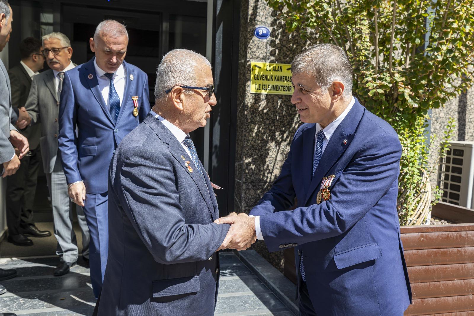 İzmir Büyükşehir Belediye Başkanı Dr. Cemil Tugay, 19 Eylül Gaziler Günü için Cumhuriyet Meydanı’nda düzenlenen törene babası Kıbrıs gazisi Cemal Tugay’ın madalyaları ile katıldı. Resmi program sonrası gazi derneklerinin başkanlarını ağırlayan Başkan Tugay, “Kahraman gazilerimizi ailem gibi görüyor, kendimi onlara karşı borçlu hissediyorum. Bu dönem sizlerin huzuru ve mutluluğu için belediye olarak elimizden ne geliyorsa yapmaya hazırız” dedi.