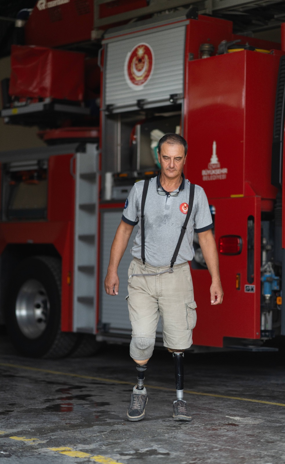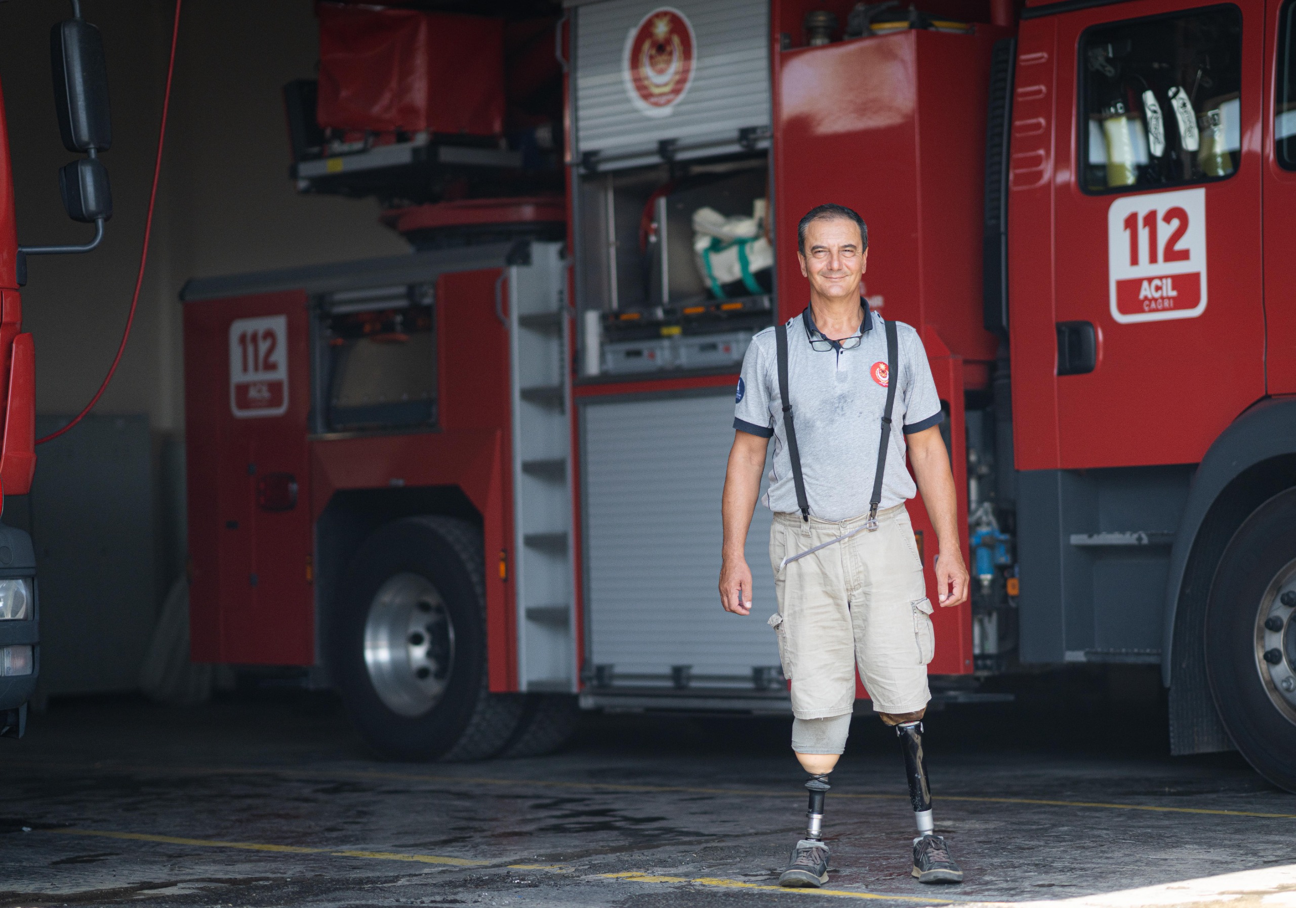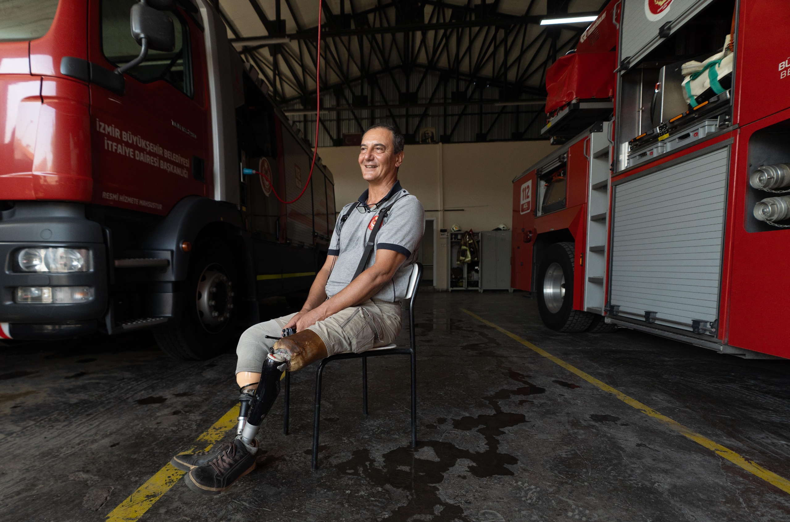 Engelli itfaiyeci çok sevdiği mesleğinden hiç kopmadı