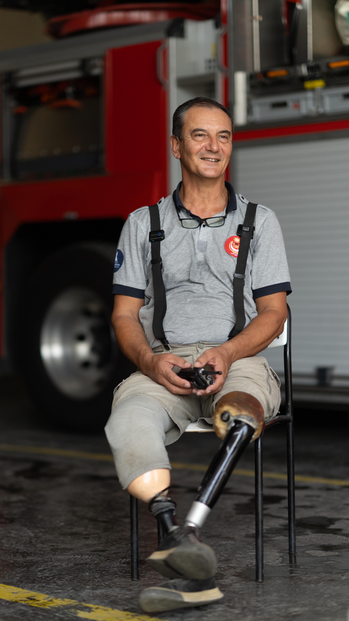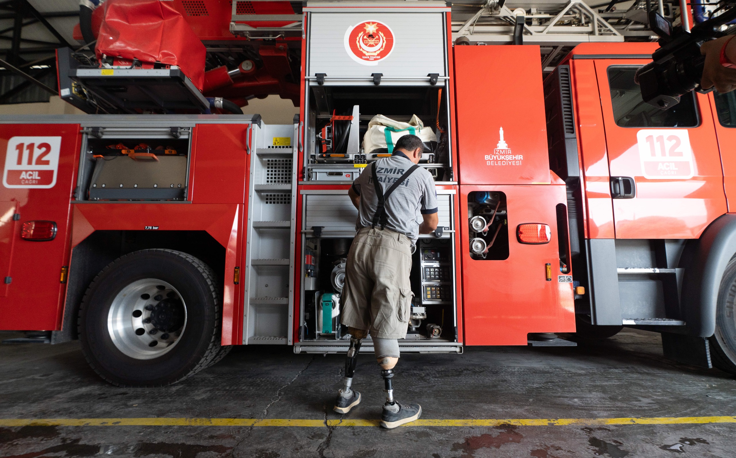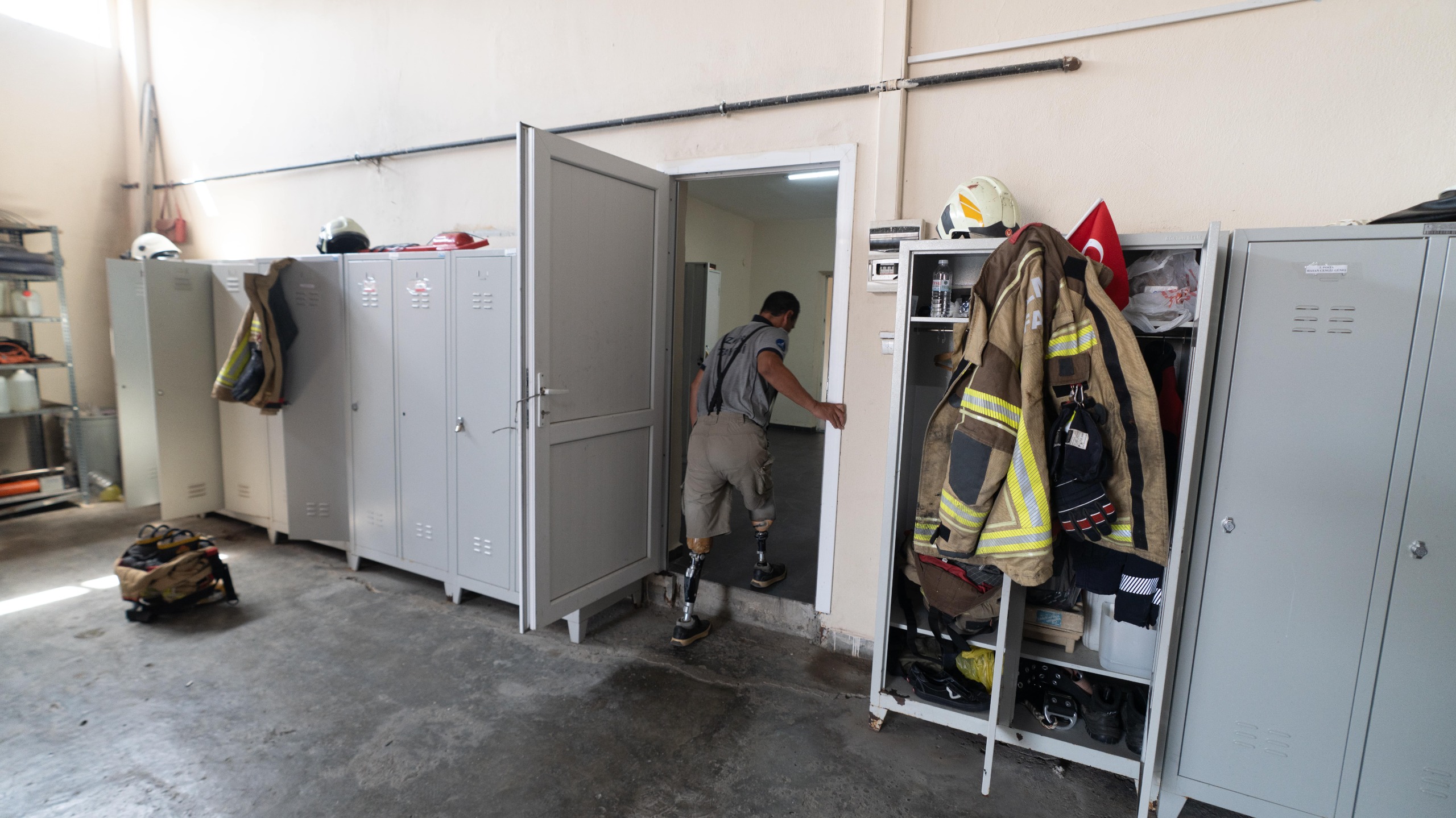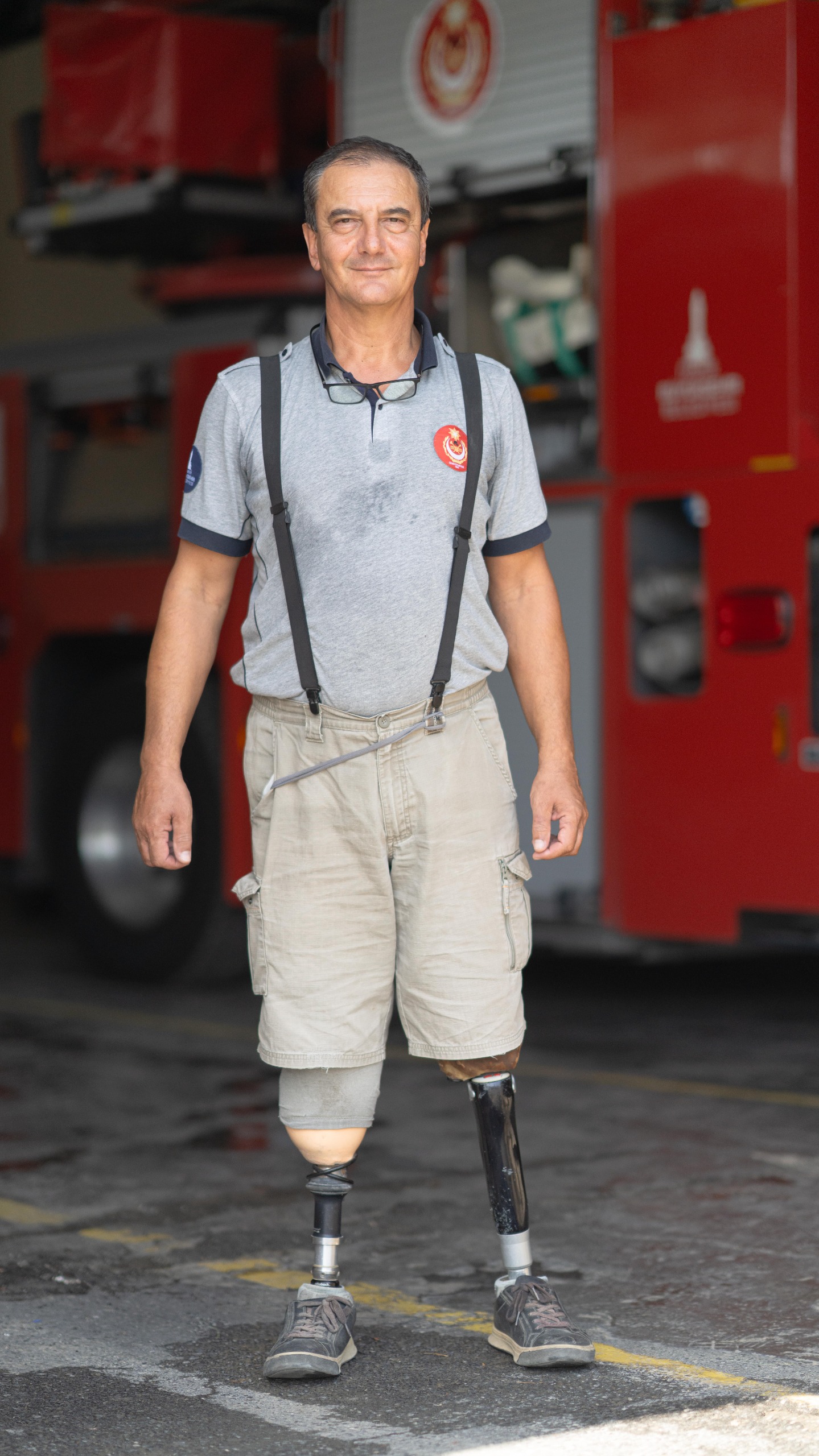 Engelli itfaiyeci çok sevdiği mesleğinden hiç kopmadı