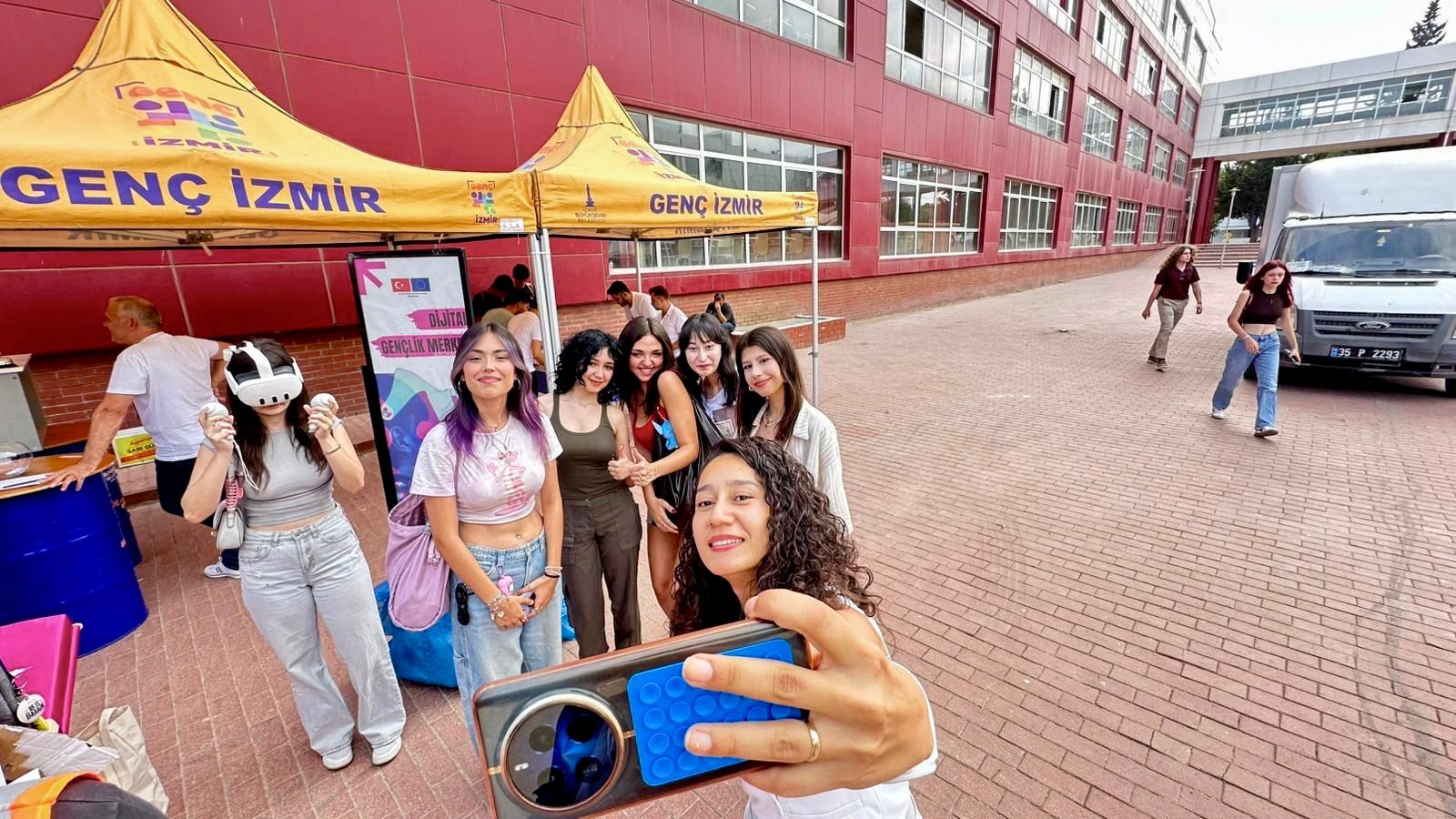 İzmir Büyükşehir Belediyesi bünyesinde faaliyet gösteren Genç İzmir ekipleri “Kampüsteyiz” sloganıyla üniversiteli öğrencilerle bir araya geliyor. Öğrenciler açılan stantlardan yeni dönemdeki kurslar, atölyeler ve gençlere yönelik projeler hakkında bilgi alıyor.