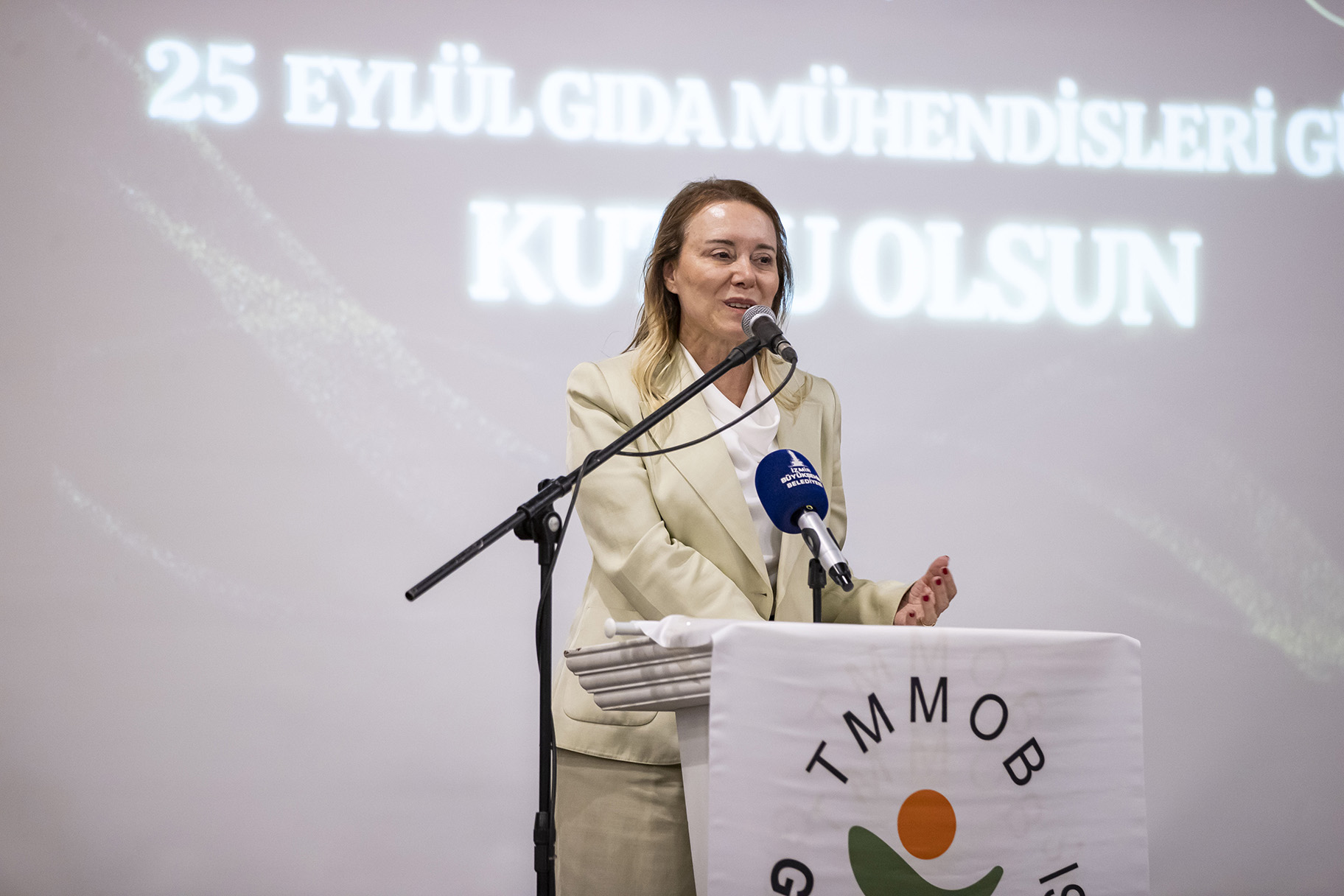 İzmir Büyükşehir Belediye Başkanı Dr. Cemil Tugay, Gıda Mühendisleri Odası tarafından düzenlenen Meslekte Onur Yılı Ödül Töreni’ne katıldı. Tugay, gıda mühendislerine seslenerek, “İzmir’in, Türkiye’nin, belediyelerin, halkın sizlere ihtiyacı var” dedi. Başkan Tugay, “Gıda krizine doğru gidiyoruz, bununla ilgili hazırlık yapan yok. Gerçekten doğru olduğuna, bilgi sahibi olduğuna inandığımız insanlarla, yani sizinle dayanışma içinde olursak güç kazanabiliriz” diye konuştu.