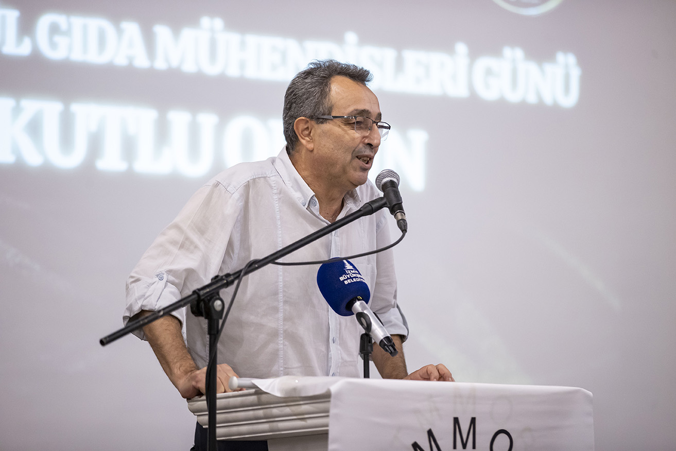 Gıdaların üretimi ve tüketiciye ulaşmasında gıda mühendislerinin büyük emek verdiğini vurgulayan Gıda Mühendisleri Odası İzmir Şubesi Yönetim Kurulu Başkanı Ulaş Kırım, yerel yönetimlerle çalışmalar yürütüldüğünü ifade etti. Başkan Kırım ayrıca, “Üniversitelerimiz, fabrikalarımız, laboratuvarlarımız ve sayamadığımız emekçilerimizin tuğlaları var. Ne yok sayılacak ne de azımsanacak bir yerdeyiz. Her vatandaşımız için çalışıyoruz. Çocuklarımızın karnı tok, sadece eğitimlerini ve çocukluğunu yaşamayı düşünürken, kadınlarımız sokaklarda yeniden özgürce gezecek. Biz bu ülkeyi hep beraber inşa edeceğiz” dedi.