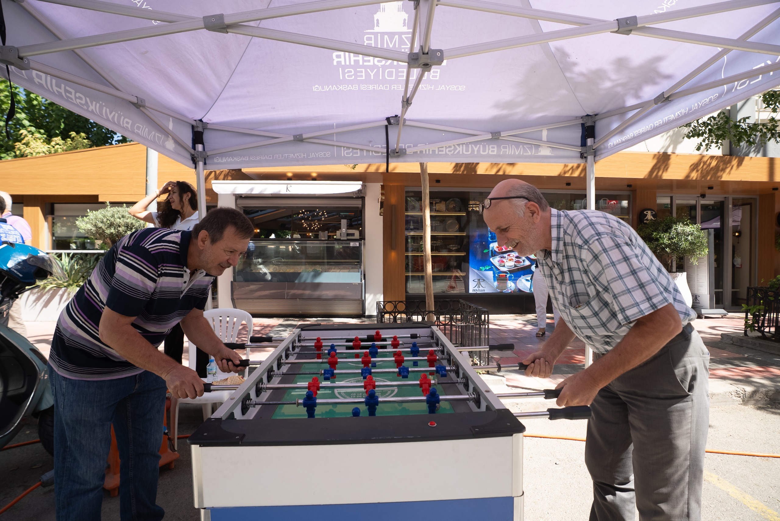 Plevne Bulvarı’ndaki en yavaş bisiklet yarışması, ayak tenisi, masa tenisi, basketbol, voleybol, langırt gibi spor aktivitelerine katılanlar keyifli bir gün yaşadı. Mini konserler ve DJ performansı ile renklenen günde bisiklet kullanımını özendirmek için “velespitten bisiklete” sergisi, bisiklet taksi, kargo bisiklet ve yenilenen BİSİM filosunun deneyimlenmesi, bisiklet tamir atölyesi programları dikkat çekti. Çocuklar palyaço, jonglör eşliğinde eğlendi. Yüz boyama, sanal gerçeklik gözlüğü deneyimi, karbon ayak izi ölçümü de ilgi gören atölyeler arasında yer aldı. ESHOT Genel Müdürlüğü de Gezici Sergi ve çeşitli oyunlarla Otomobilsiz Kent Günü’nde yer aldı.