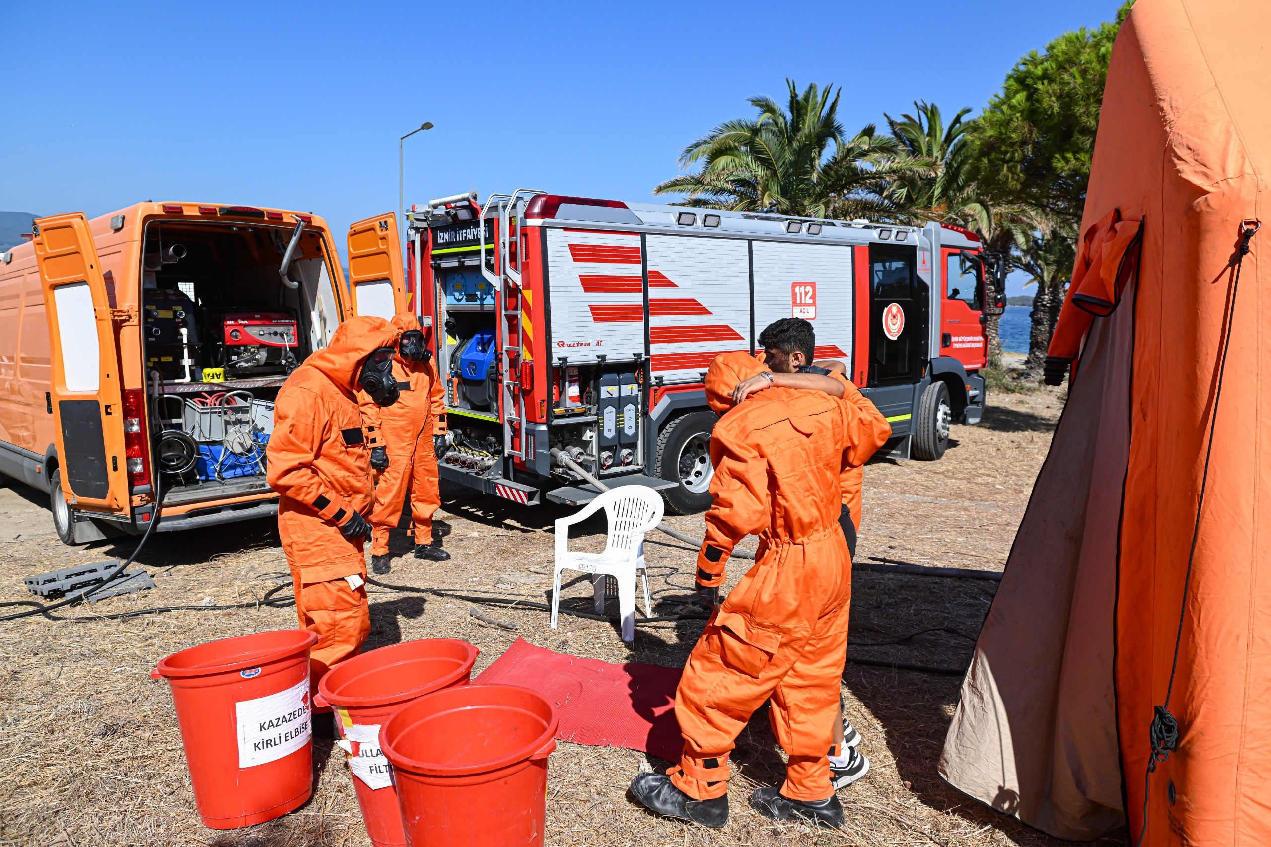İzmir Büyükşehir Belediyesi İtfaiye Dairesi Başkanlığı İtfaiye Arama Kurtarma Şube Müdürlüğü Koordinatör Amiri Servet Yıldız, su üstü ve su altı kurtarma ekibinin yanı sıra itfaiye ekiplerinin otobanda kimyasal yüklü bir tanker yangınına müdahale ettiklerini söyledi. Servet Yıldız, “Ekiplerimiz su üstünde ve su altında iki yaralıya müdahale ederek denizden çıkardı. Arazöz ile de otoban üzerinde kimyasal yangına maruz kalan araca müdahale ettik. Bu tür tatbikatlar çok önemli. Özellikle afet durumunda, alandaki diğer birimlerle koordinasyonu çok kıymetli ve değerli. Hem birbirimizi tanımamız hem de yapacağımız çalışmalarda daha koordineli olmamız için bu tatbikat çok faydalı oldu” dedi.