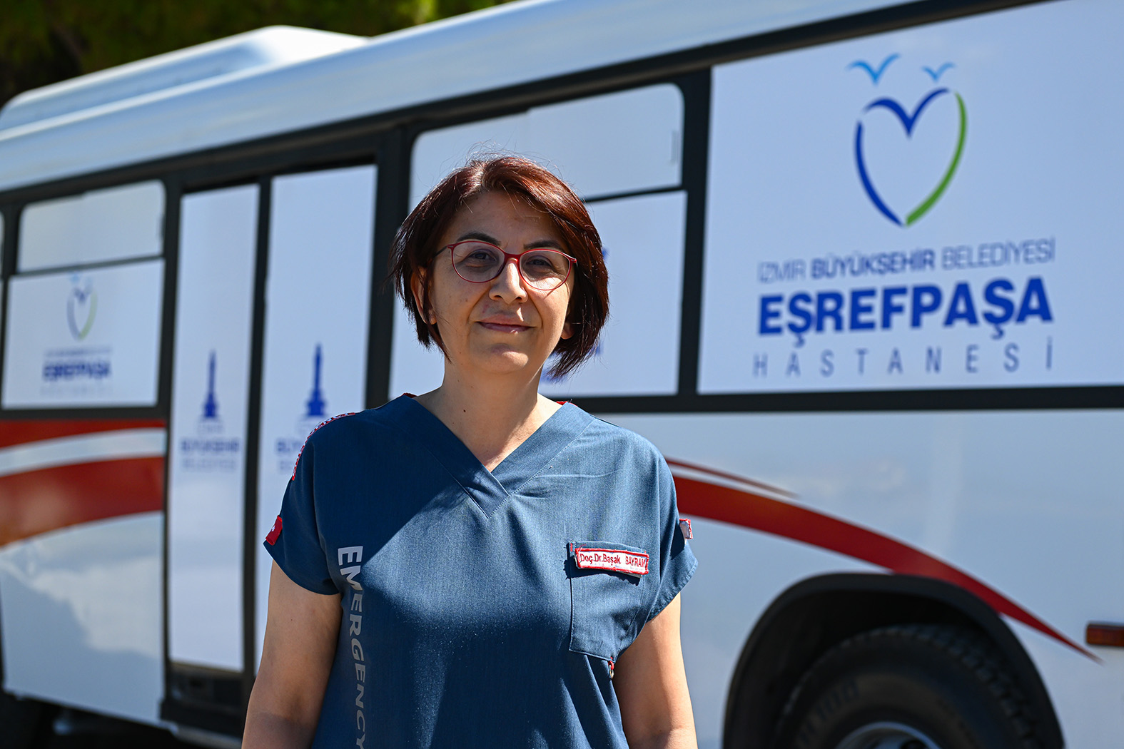 Eşrefpaşa Hastanesi de ESHOT Genel Müdürlüğü tarafından 7 yatak kapasiteli mobil hastaneye dönüştürülen araçla tatbikatta yer aldı. Tatbikatın çok başarılı geçtiğini belirten Eşrefpaşa Hastanesi Başhekimi Doç. Dr. Başak Bayram, “Bu tür afet anlarında kullanabileceğimiz bir mobil ameliyathanemiz var. Bugünkü tatbikat çerçevesindeki yaralıların bir grubunu bu araca aldık. Bir çok yaralıyı aynı anda taşıyabilme imkanımız var. Acil tıp uzmanı, paramedik ve hemşirelerden oluşan ekibimiz, yaralılara müdahale etti” dedi.
