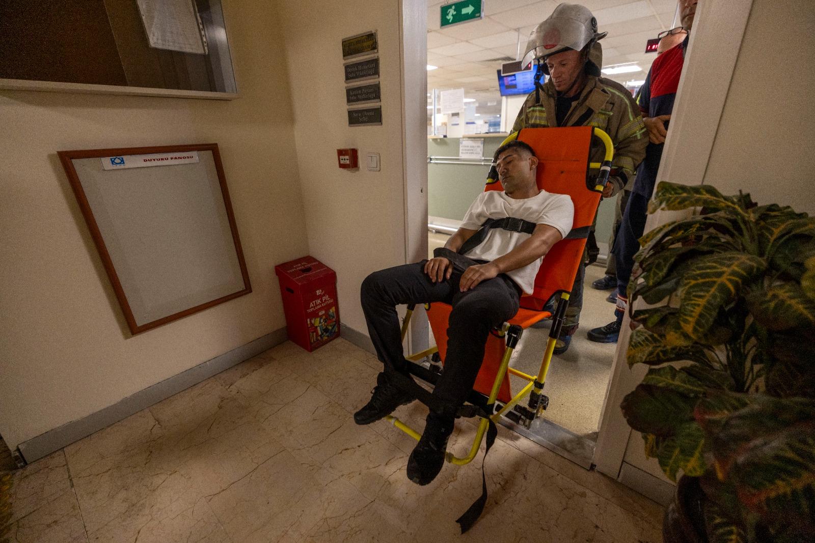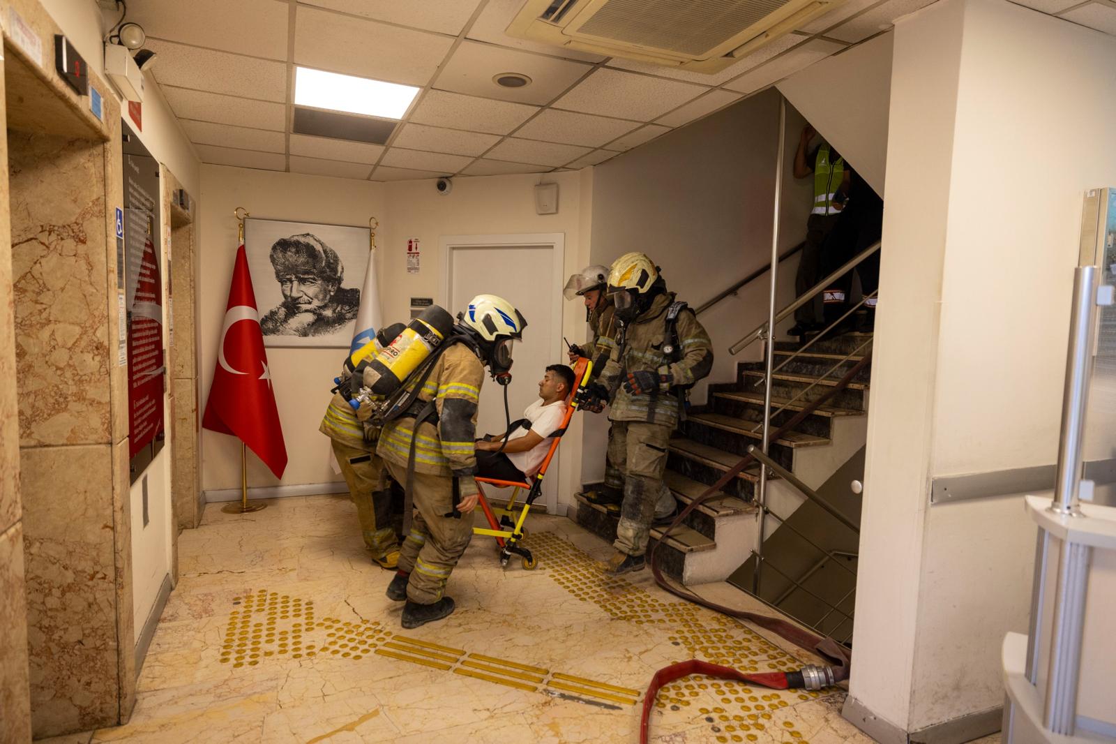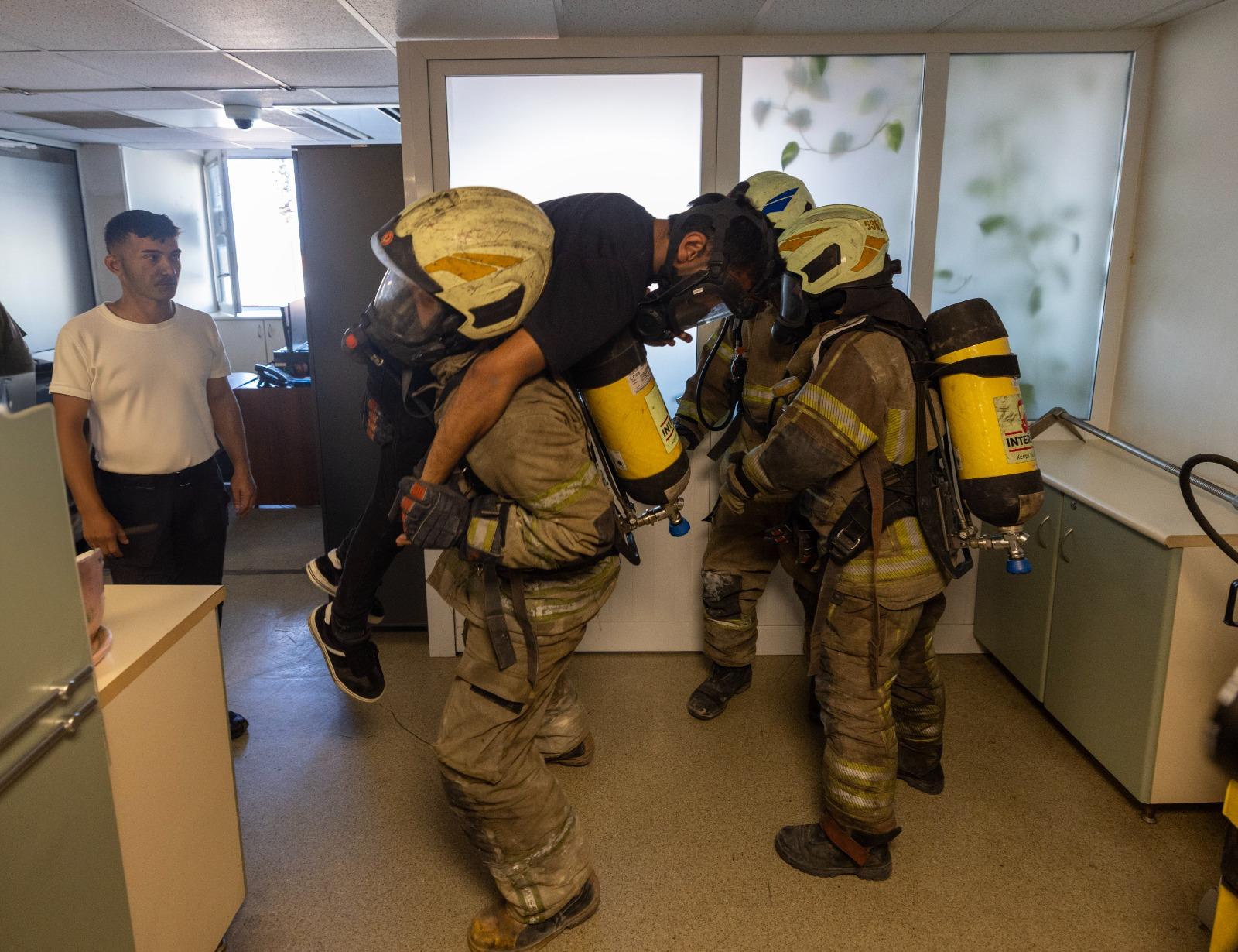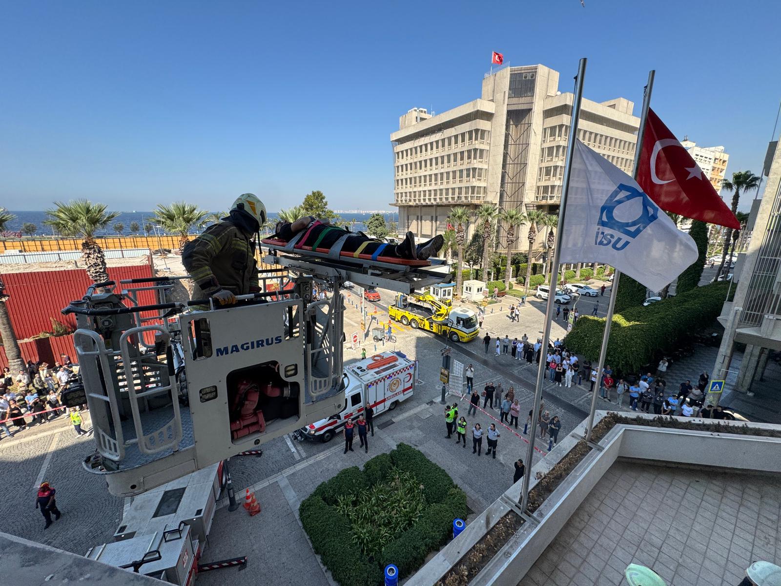 İtfaiye Haftası etkinlikleri kapsamında İzmir İtfaiyesi’nce İZSU Genel Müdürlüğü Afet ve Acil Durum Yönetimi Birimi iş birliği ile düzenlenen yangın söndürme, tahliye ve kurtarma tatbikatında nefes kesen anlar yaşandı. Konak’taki İZSU Genel Müdürlüğü binasında senaryo gereği çıkan yangını kısa sürede söndürerek binada mahsur kalan biri engelli dört yurttaşı başarıyla kurtaran ekipler, İzmirlilere bir kez daha güven verdi.