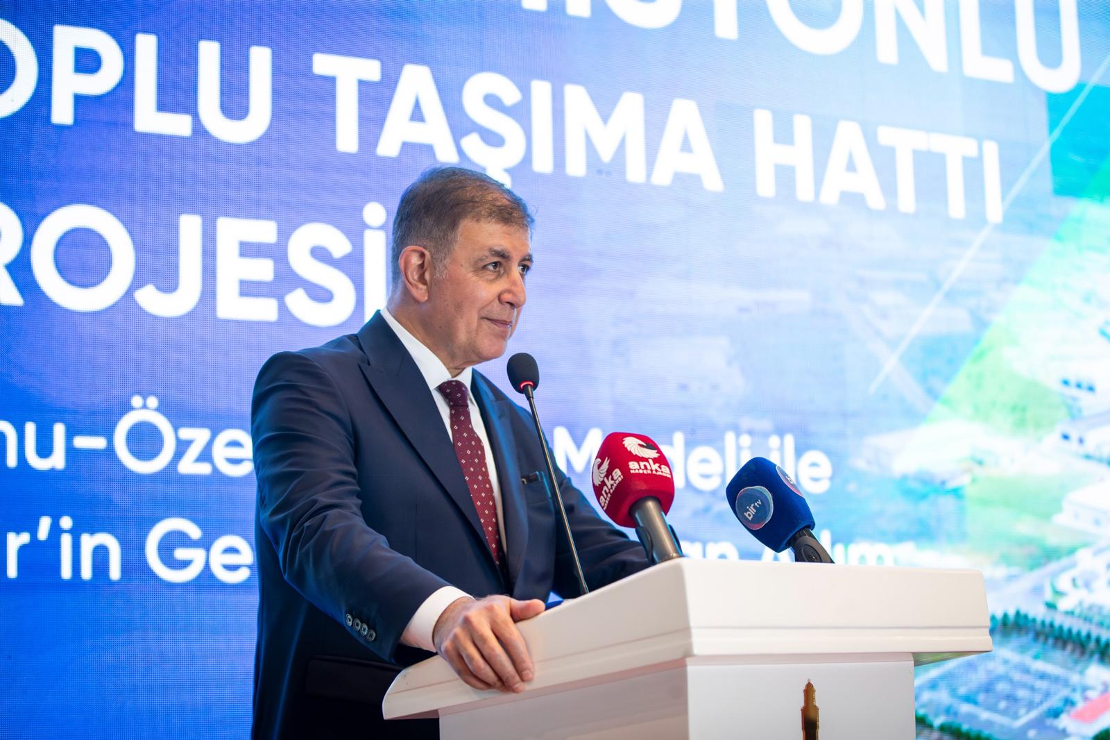 Tanıtım töreninde konuşan İzmir Büyükşehir Belediye Başkanı Dr. Cemil Tugay, İzmir’in karbon nötr ulaşım hedefleri doğrultusunda çalıştıklarını belirterek, “Bu proje Türkiye’de bir organize sanayi bölgesinin kent merkeziyle bağlantısını tamamen elektrikli ve sıfır emisyonlu araçlarla sağlayan ilk ve tek projedir. Bu hat, şehir içi emisyonu azaltacak, hava kalitesini yükseltecek ve çocuklarımıza daha sağlıklı bir gelecek bırakmamıza katkı sağlayacaktır. Bu projenin en gurur verici yönlerinden biri de kullandığı enerjinin tamamının rüzgârdan sağlanıyor olmasıdır. Otobüslerimiz tamamen temiz, yüzde yüz yenilenebilir enerjiyle hareket etmektedir. İzmir’in rüzgârını güce dönüştüren bu sistem çevre dostu olmanın ötesinde, kentimizin yenilenebilir enerji vizyonunu güçlü biçimde yansıtmaktadır” dedi.
