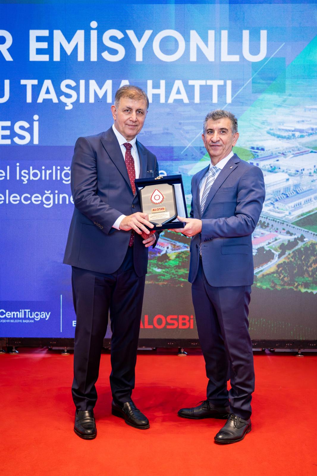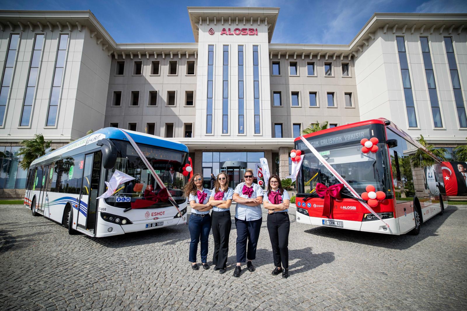 İzmir Büyükşehir Belediyesi, çevreci ve sürdürülebilir ulaşım vizyonu doğrultusunda Türkiye’de bir ilki daha hayata geçirdi. Aliağa Organize Sanayi Bölgesi (ALOSBİ) ile Aliağa ilçe merkezi arasında hizmet verecek Sıfır Emisyonlu Toplu Taşıma Hattı, ALOSBİ’de düzenlenen törenle tanıtıldı. Törene İzmir Büyükşehir Belediye Başkanı Dr. Cemil Tugay, ALOSBİ Yönetim Kurulu Başkanı Haluk Tezcan, İzmir Büyükşehir Belediyesi Genel Sekreter Yardımcısı ve ESHOT Genel Müdürü Övünç Özgen, İzmir Büyükşehir Belediyesi Genel Sekreter Yardımcıları Çağatay Güç, Dr. Hakan Uzun, belediye bürokratları, ALOSBİ yönetim kurulu üyeleri, sanayiciler, çalışanlar ve yurttaşlar katıldı. Deneme sürüşünün yapıldığı törende, 935 numaralı 4 otobüsten oluşan hattın 29 Eylül Pazartesi gününden itibaren hizmet vereceği bildirildi.
