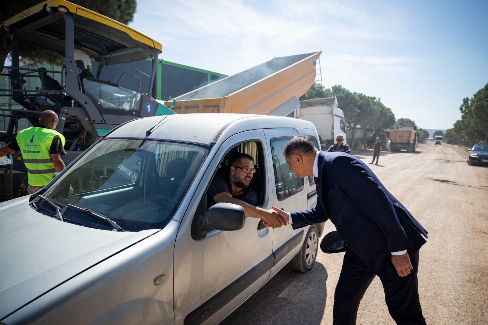 İzmir Büyükşehir Belediyesi’nin 30 ilçede başlattığı asfalt seferberliği hız kesmeden devam ediyor. Fen İşleri Dairesi Başkanlığı koordinesinde çalışmalarını sürdüren İZBETON ekipleri Aliağa Organize Sanayi Bölgesi yolunda asfalt serimi yaptı. İzmir Büyükşehir Belediye Başkanı Dr. Cemil Tugay da çalışmaları yerinde inceleyerek bilgi aldı.
