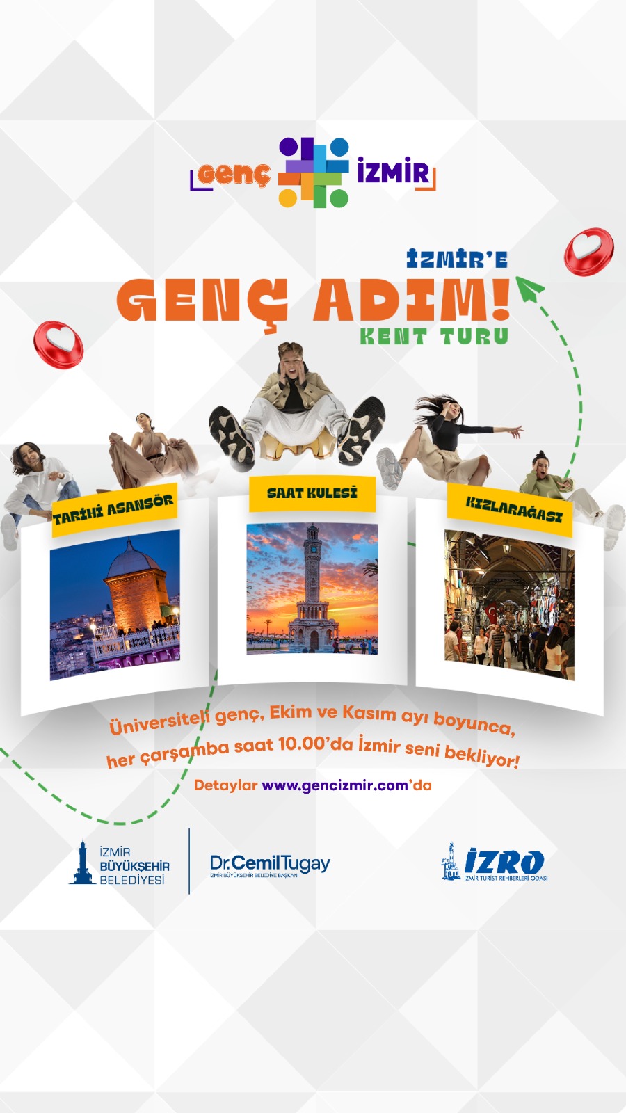 “Genç Adım Kent Turu”, öğrencilerin İzmir’in tarihi dokusunu keşfederken aynı zamanda şehre aidiyet duygularını güçlendirmelerine katkı sağlayacak. Etkinlik hakkında detaylı bilgiye https://www.gencizmir.com/ adresinden ulaşılabiliyor. Ayrıca gençlere yönelik tüm etkinliklerden haberdar olmak için "@izbbgencizmir" kullanıcı adlı instagram hesabı takip edilebiliyor.