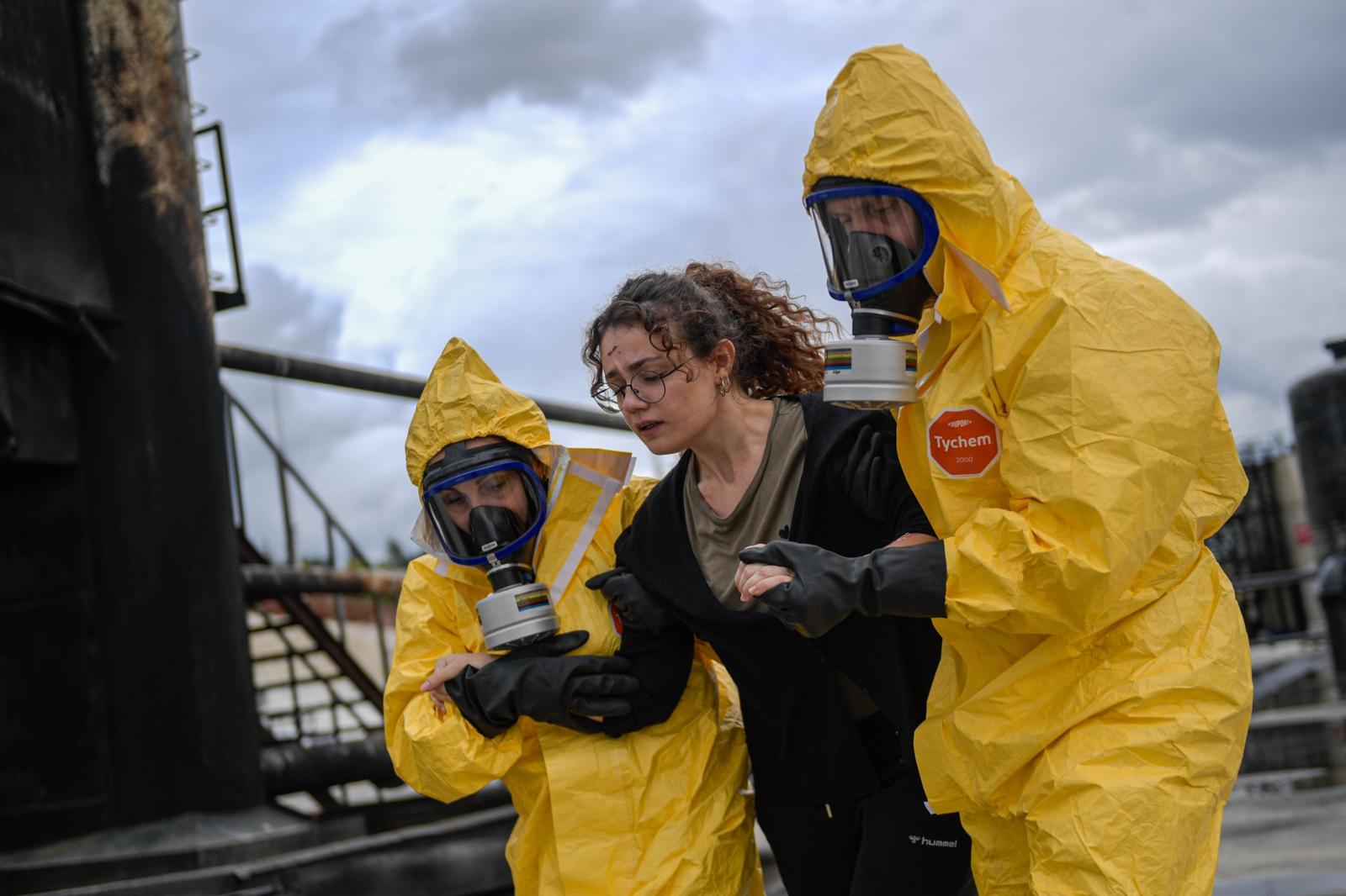Tatbikata İzmir İl Afet ve Acil Durum Müdürlüğü (AFAD) ekipleri de katıldı. Senaryo gereği itfaiye ekipleri endüstriyel yangın eğitim simülasyonunda da alevlere müdahale etti. Panik ve heyecan duygularının aynı anda yaşandığı tatbikatta, AFAD koruyucu kıyafetleri ile tehlikeli kimyasal maddeden etkilenenleri kurtararak güvenli bölgeye aldı.