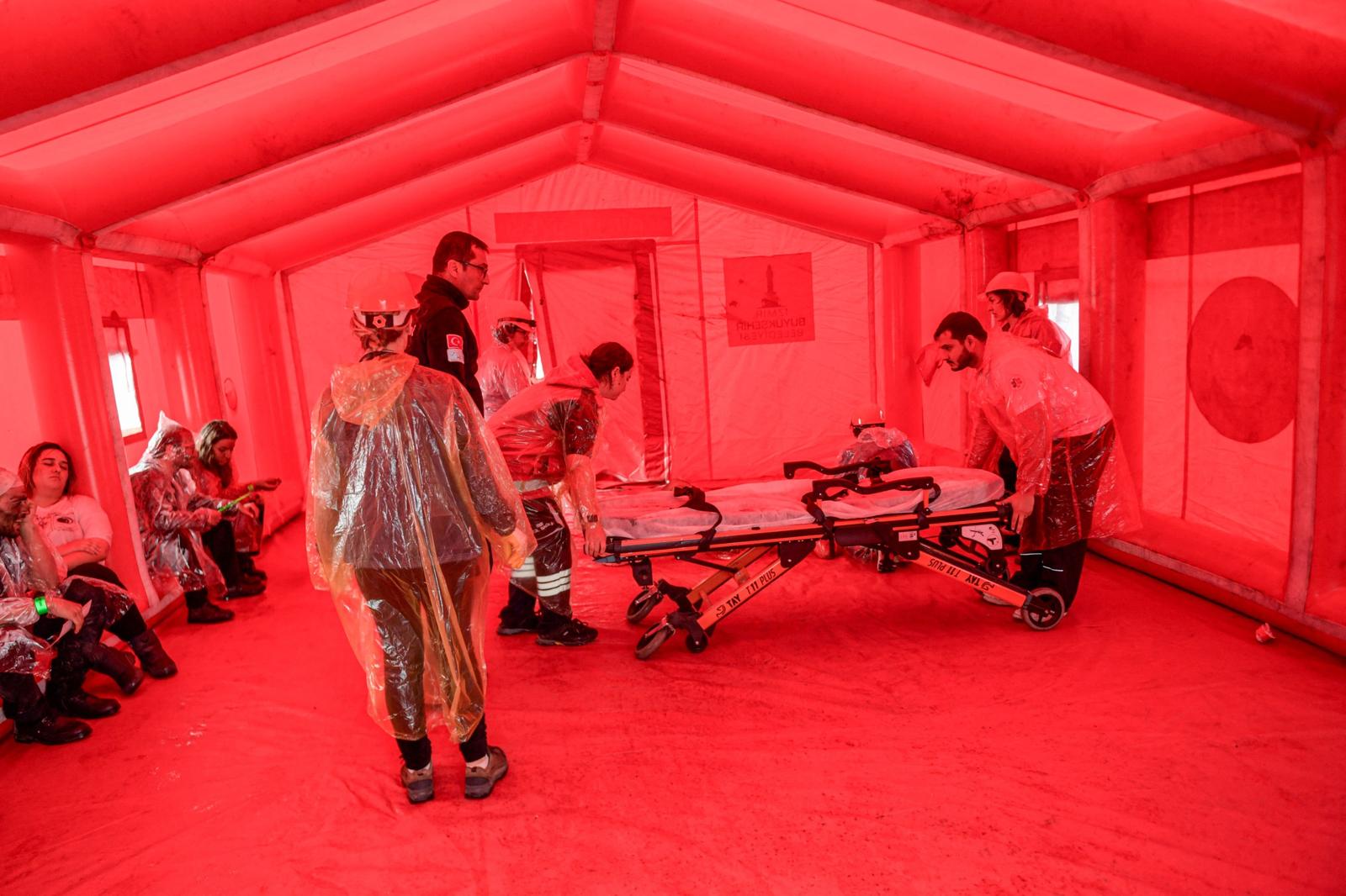 Kentsel arama kurtarma enkaz eğitim simülasyonunda da gerçeği aratmayan bir uygulama yapıldı. Yoğun yağmur altında düzenlenen tatbikatta, deprem anında enkaz altında kalanların kurtarılma anı canlandırıldı. Yaralıların yardım çığlıkları, gerçeğinden farksız değildi. Kurtarılan yaralılar, ambulanslarla Eşrefpaşa Hastanesi’nin mobil hastanesine taşınarak buradaki sağlık ekiplerine teslim edildi.