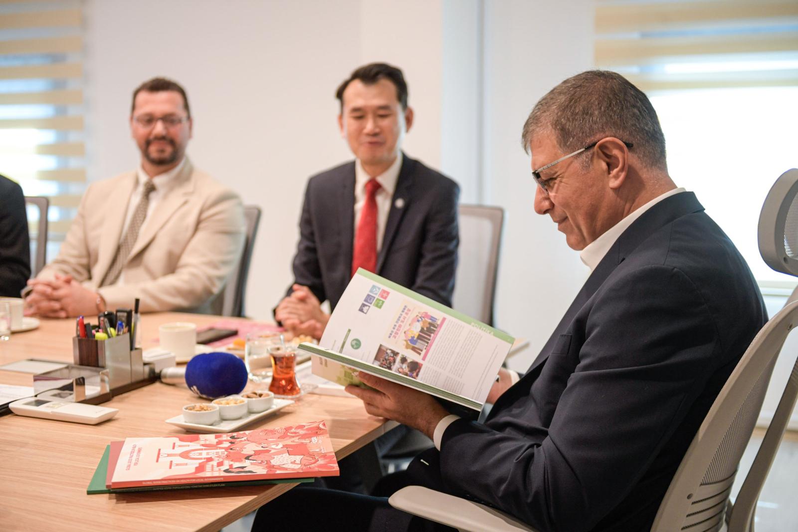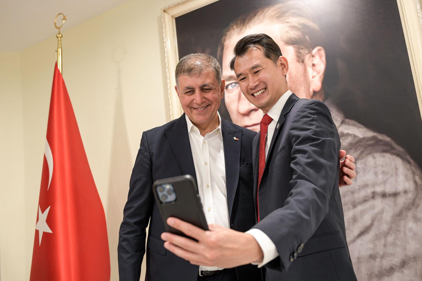 Ziyaretin sonunda Dünya Sağlık Örgütü Avrupa Bölgesi Yaşlanma Ve Sağlık Teknik Sorumlusu Dr. Yongjie Yon, İzmir Büyükşehir Belediye Başkanı Dr. Cemil Tugay ile özçekim yaptı.