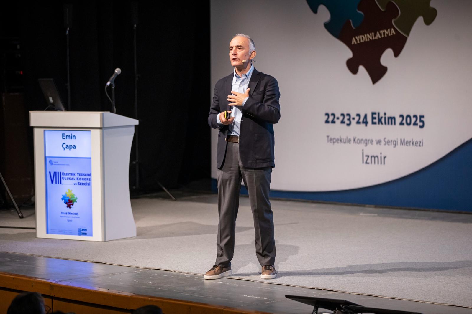 İzmir Büyükşehir Belediye Başkanı Dr. Cemil Tugay, Türk Mühendis ve Mimar Odaları Birliği (TMMOB) Elektrik Mühendisleri Odası (EMO) İzmir Şubesi tarafından bu yıl 8’inci kez organize edilen Elektrik Tesisleri Ulusal Kongre ve Sergisi’nin açılış törenine katıldı. İzmir Tepekule Kongre ve Sergi Merkezi’ndeki etkinlik 22-23-24 Ekim 2025 tarihlerinde bilim insanları, üreticiler, tasarımcılar, uygulayıcılar ile kamu ve özel sektör temsilcilerini bir araya getirecek. Kongrenin açılış törenine Başkan Dr. Cemil Tugay’ın yanı sıra TMMOB Yönetim Kurulu Üyesi Bahadır Acar, EMO Yönetim Kurulu Başkanı Mahir Ulutaş, Aydınlatma Türk Milli Komitesi Başkanı Prof. Dr. Rengin Ünver, EMO İzmir Şubesi Başkanı Gülhan Gürler, ekonomist-gazeteci Dr. Emin Çapa, akademisyenler, sivil toplum kuruluşu temsilcileri, sektör temsilcileri ve öğrenciler katıldı.