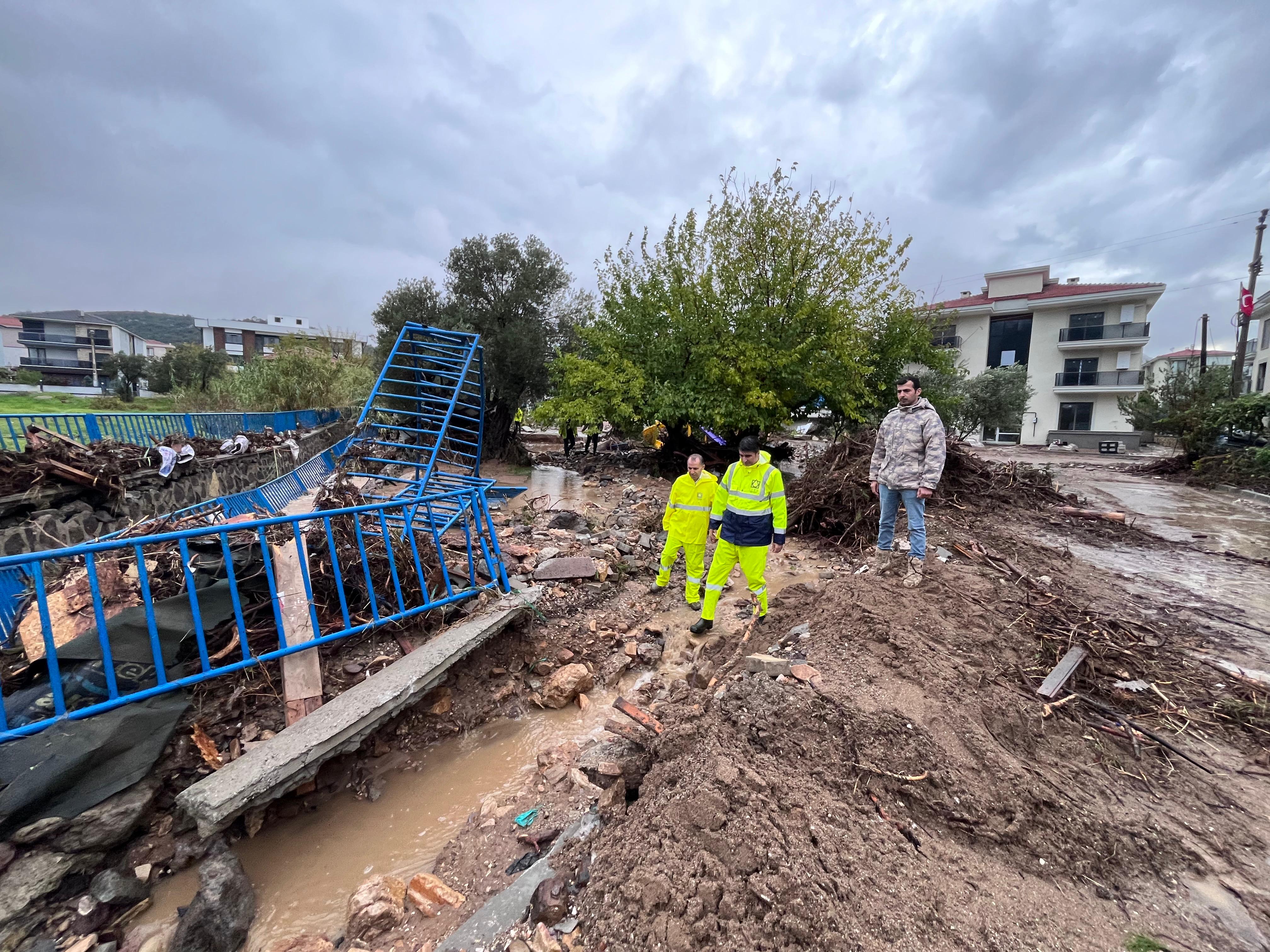 İzmir Büyükşehir Belediyesi İZSU ve itfaiye ekiplerinin yanı sıra Afet İşleri Dairesi, İklim Değişikliği ve Sıfır Atık Dairesi, Sosyal Hizmetler Dairesi, Muhtarlık İşleri Dairesi, Fen İşleri ve Veteriner İşleri Dairesi Başkanlığı ekipleriyle ilçede yaşamı normale döndürmek için 197 araç ve 350 personelle bölgede su tahliye çalışmalarını yürütürken, vatandaşların da ihtiyaçlarını karşılamak için çalışıyor.