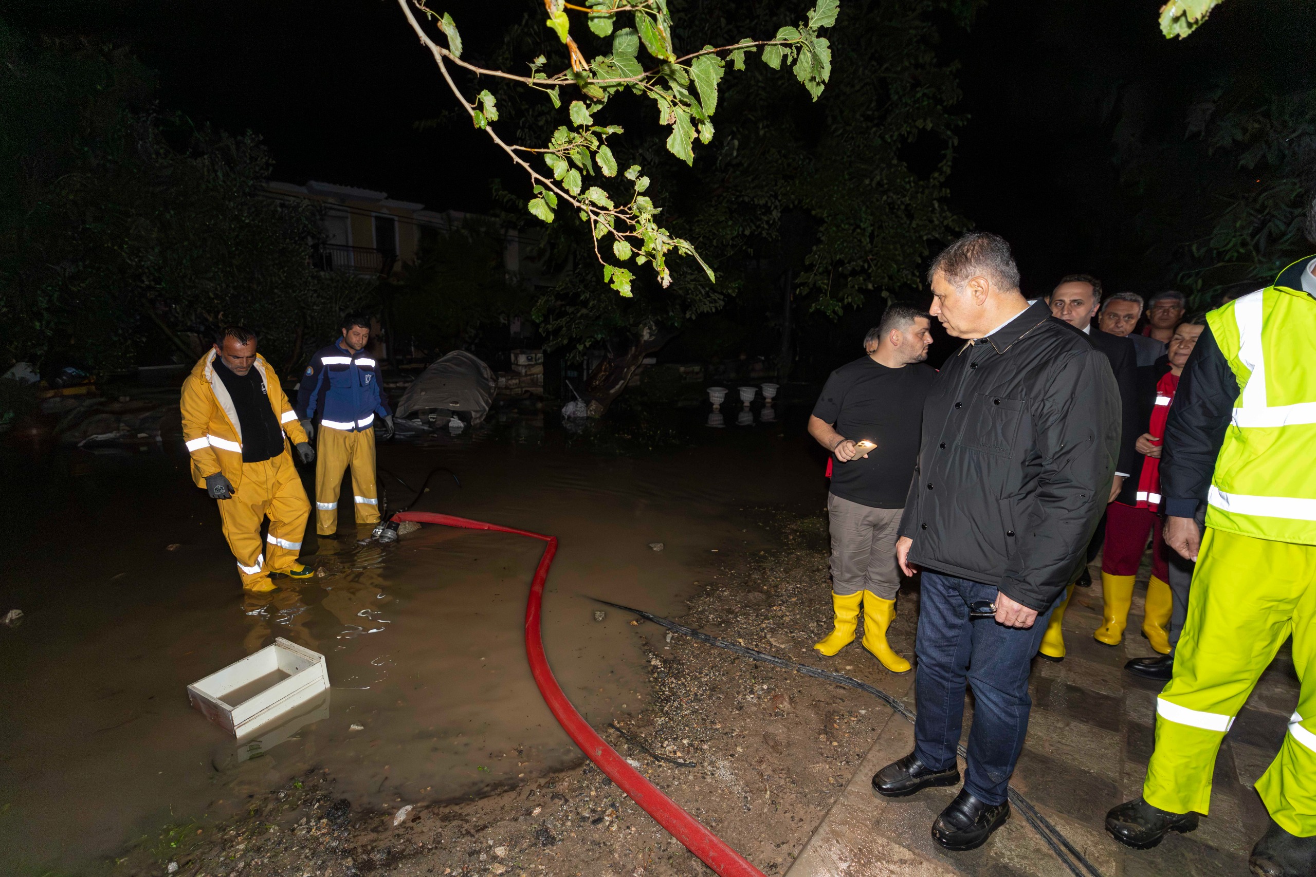 İzmir Büyükşehir Belediye Başkanı Dr. Cemil Tugay, sağanak yağışın yaşamı olumsuz etkilediği Foça’da İZSU ve itfaiye ekipleri başta olmak üzere İzmir Büyükşehir Belediyesi birimlerinin çalışmalarını inceledi. Başkan Tugay, mağduriyet yaşayan esnaf ve yurttaşları ziyaret ederek eksikliklerin giderilmesi için talimat verdi. Büyükşehir ekipleri, ilçede 197 araç ve 350 personelle yaşamı normale döndürmek için var gücüyle çalışıyor.