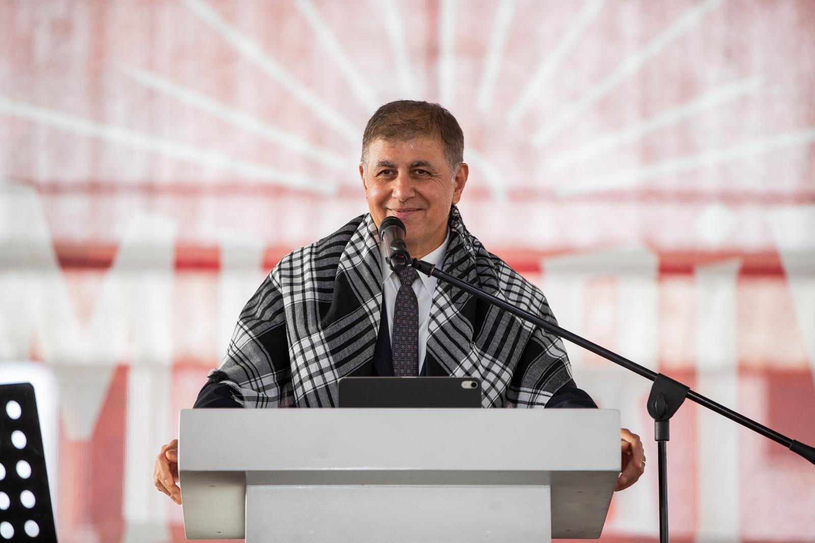 İzmir Büyükşehir Belediye Başkanı Dr. Cemil Tugay, "Bugün burada olmanın mutluluğunu ve gururunu yaşıyoruz. 29 Ekim'de aynı anda her yerde olalım istiyoruz ama imkansız. O yüzden 29 Ekim'i, bir hafta gibi kutluyoruz. Cumhuriyet gerçekten her yerde. Bizler Cumhuriyet'in kurulmasından sonraki yıllarda doğmuş insanlarız. Bizden önceki nesiller bambaşka bir ülkeye doğdular. Cumhuriyet'in olmadığı, demokrasinin olmadığı, vatandaşlık diye bir kavramın olmadığı bir ortama doğdular. Doğdukları zaman hakları yoktu. Öylesine sahipsizdiler. Ne ülkelerinin güvencesi altındaydılar ne de ülkelerinde söz sahibi olabiliyorlardı. Demokrasinin olmadığı, insanların vatandaş olmadığı bir ülkede maalesef kimse kıymet görmüyordu. Tam o günlerde ülkenin içinde bulunduğu ekonomik sıkıntıları da fırsat bilenler bize ait olan bu toprakları dört koldan işgal ettiler. Ama biz bu milletin mensupları olarak biliyoruz ki; ne zaman birisi özgürlüğümüze, bağımsızlığımıza, onurumuza, vicdanımıza ve ahlakımıza saldırsa onun karşısında bir ve bütün oluruz. Ülkemizi ve insanlarımızı savunmak için ne gerekiyorsa yaparız. İşte o asil millet, bir de kendine dünyada eşi zor bulunur bir lider buldu. Bir kahraman çıktı bu milletin bağrından; Gazi Mustafa Kemal Atatürk...” dedi.